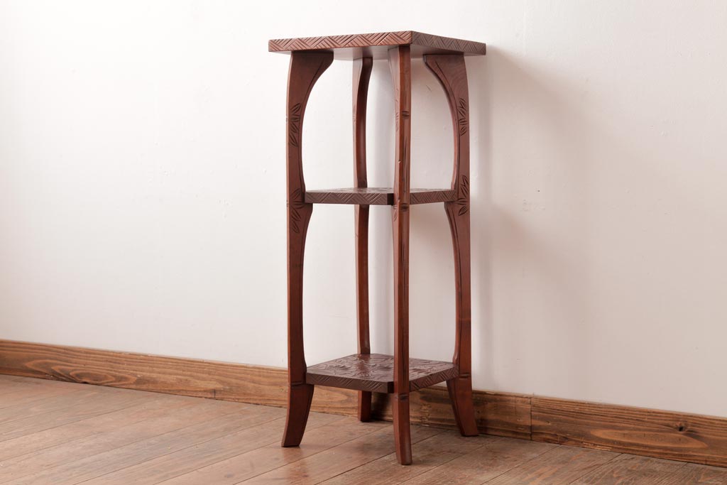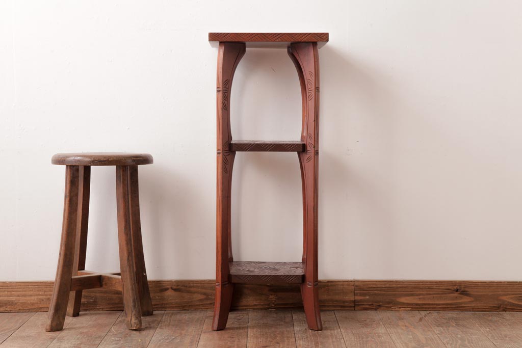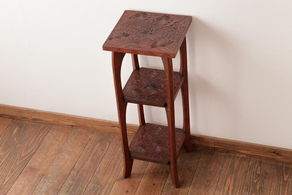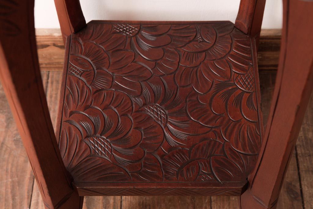 花台・飾り台 > アンティーク雑貨 中古 伝統工芸 日光彫り 大胆な花の彫りが魅力的な飾り棚(花台)(1)