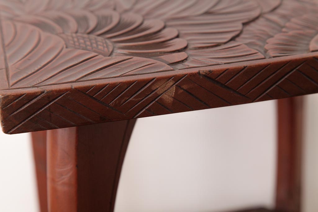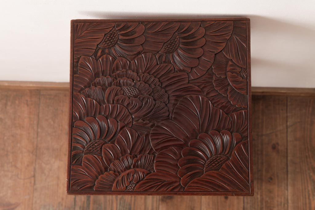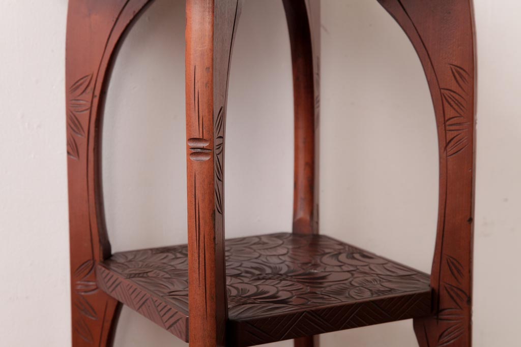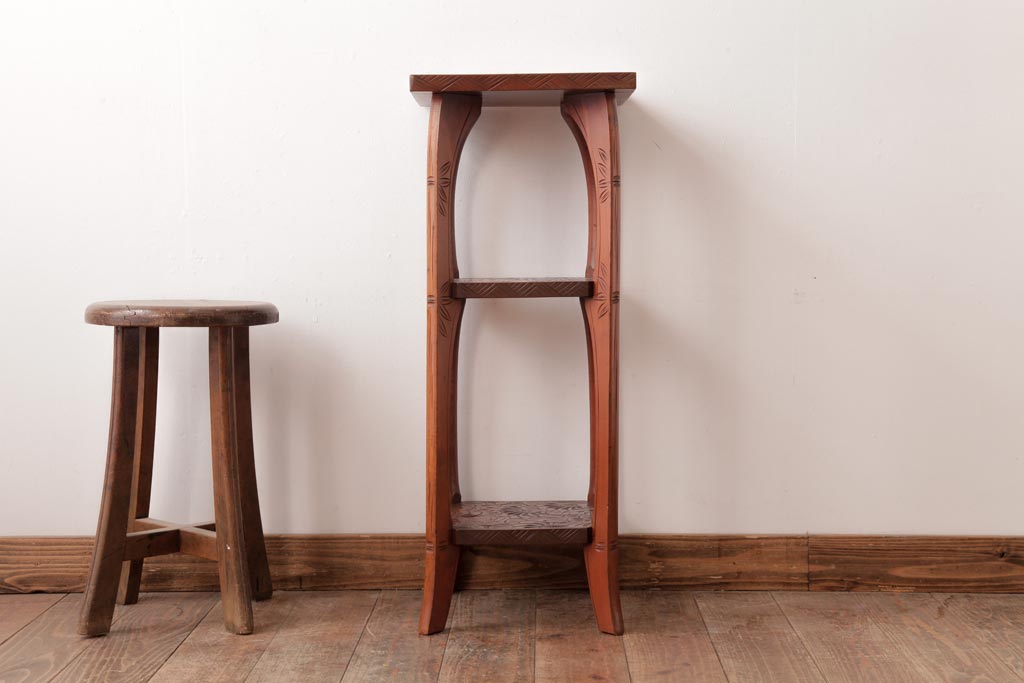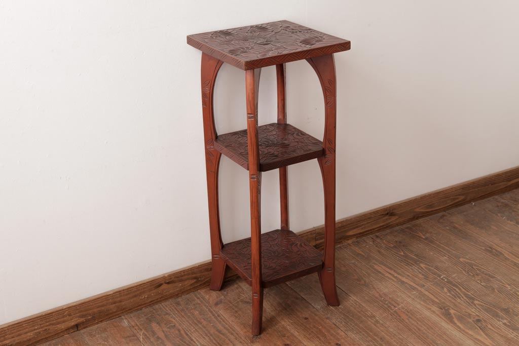 花台・飾り台 > アンティーク雑貨 中古 伝統工芸 日光彫り 大胆な花の彫りが魅力的な飾り棚(花台)(1)
