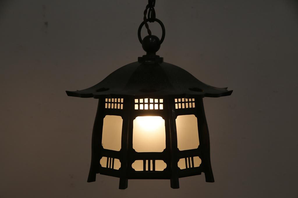 昭和期 格式のある銅製の珍しい灯籠(灯篭、吊り下げ照明、天井照明)