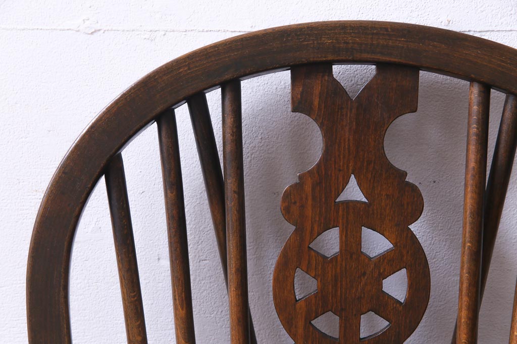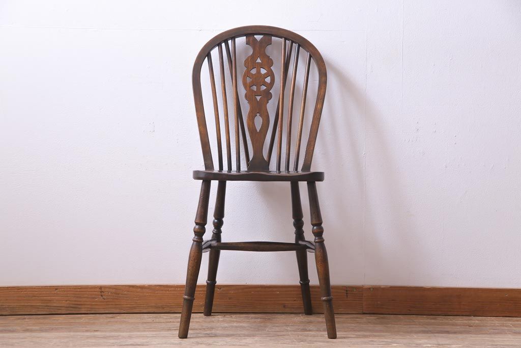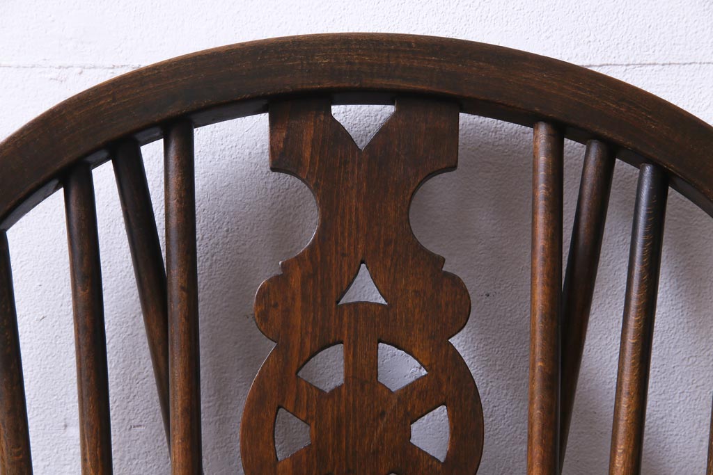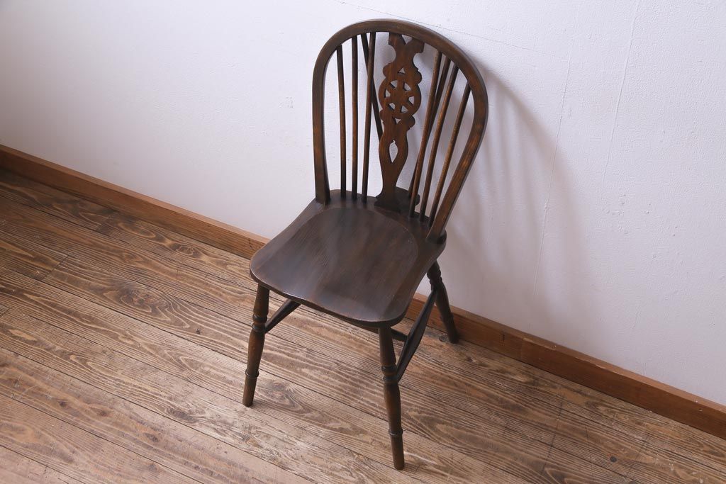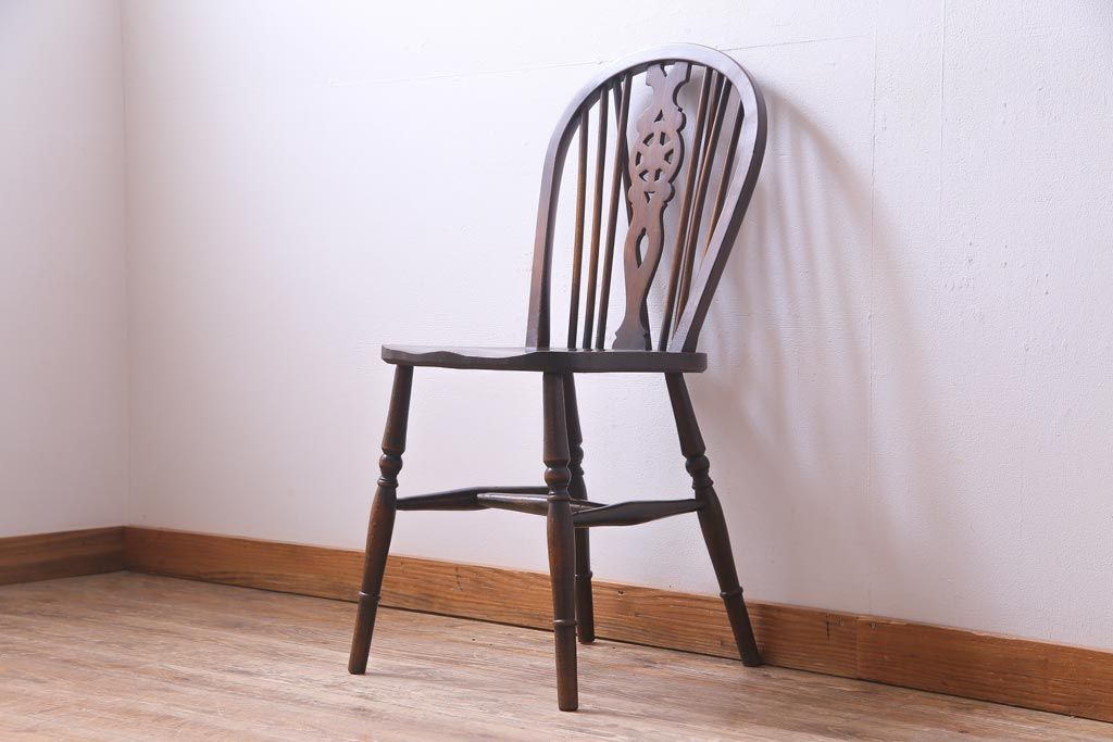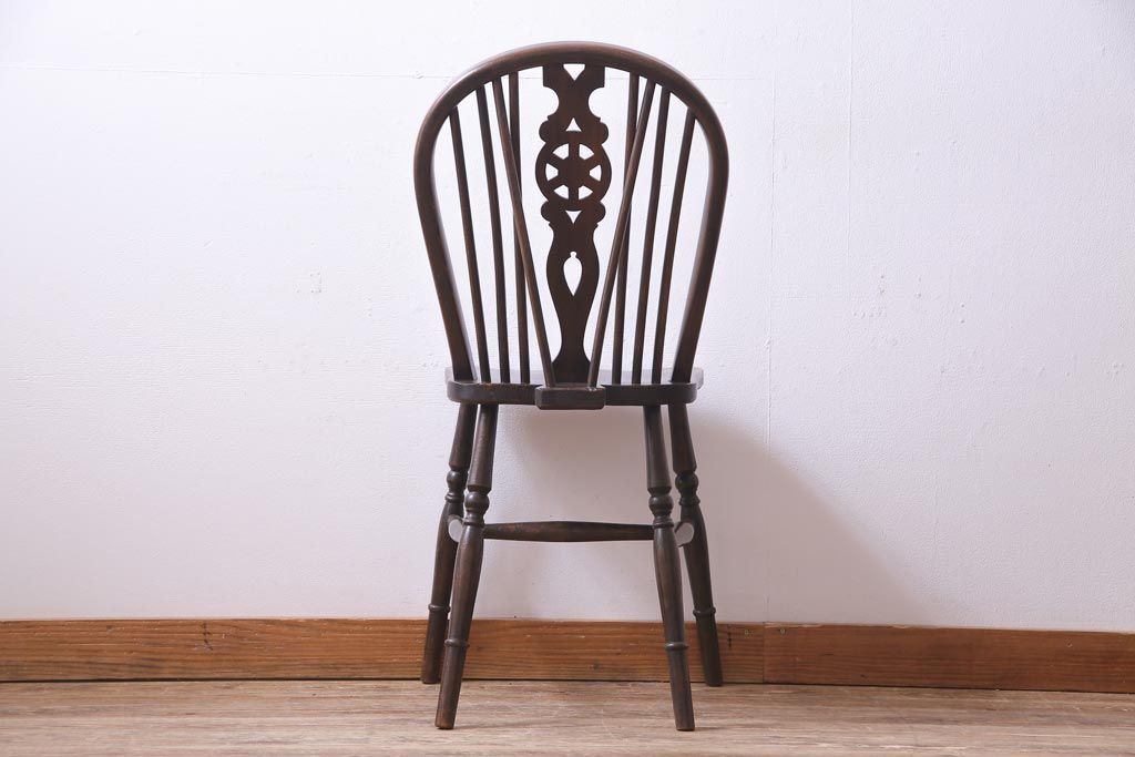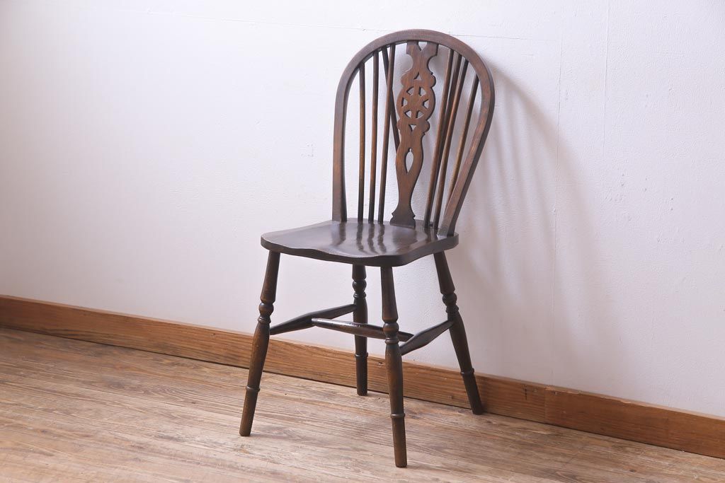 ヴィンテージ家具 イギリスビンテージ 背もたれの透かし彫りがお洒落なホイールバックチェア(板座チェア、ダイニングチェア)