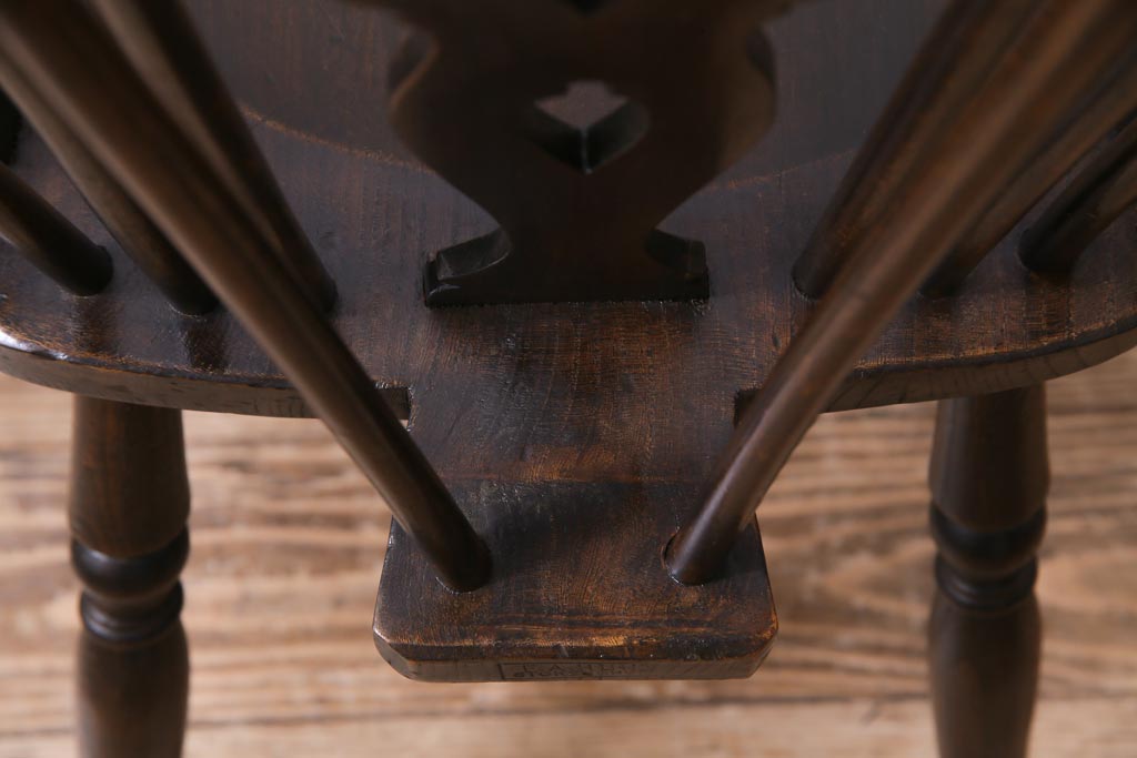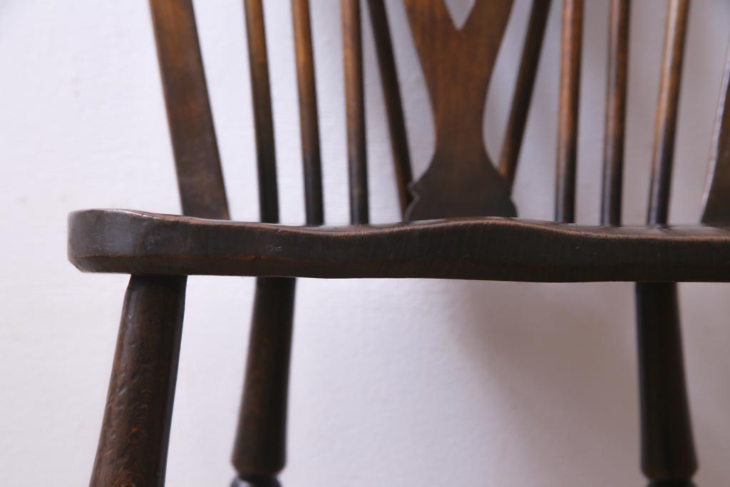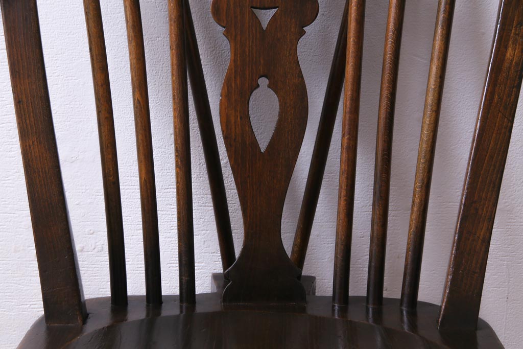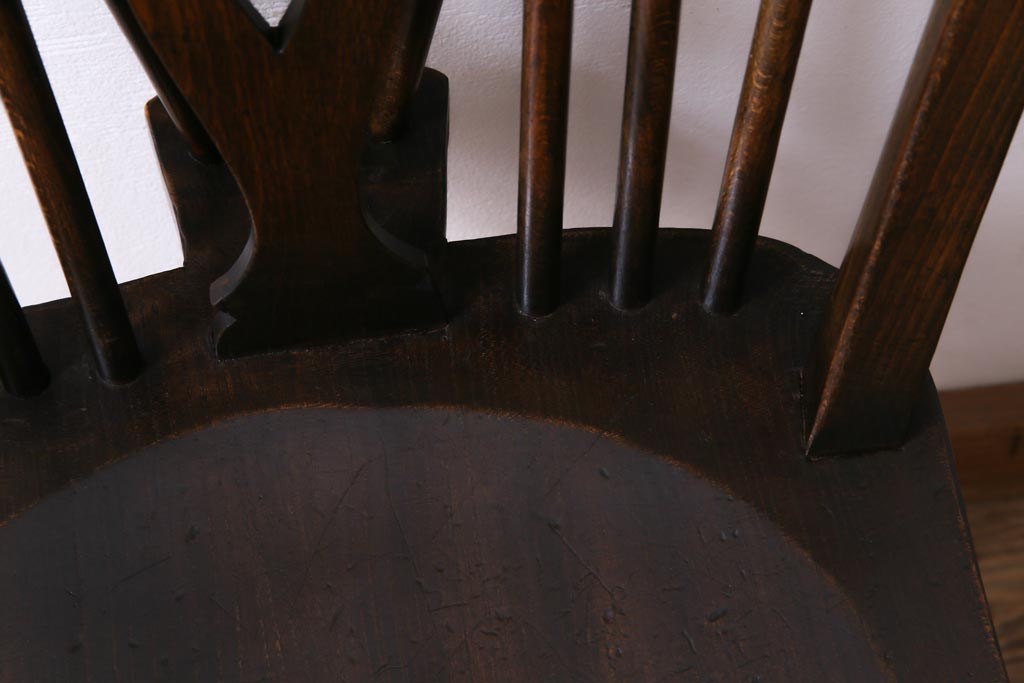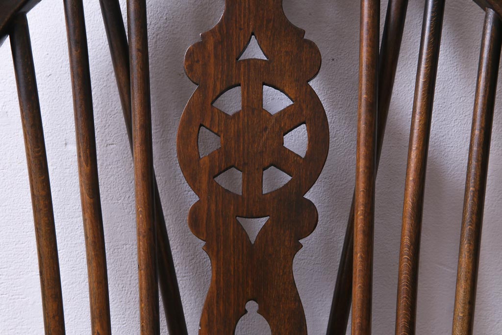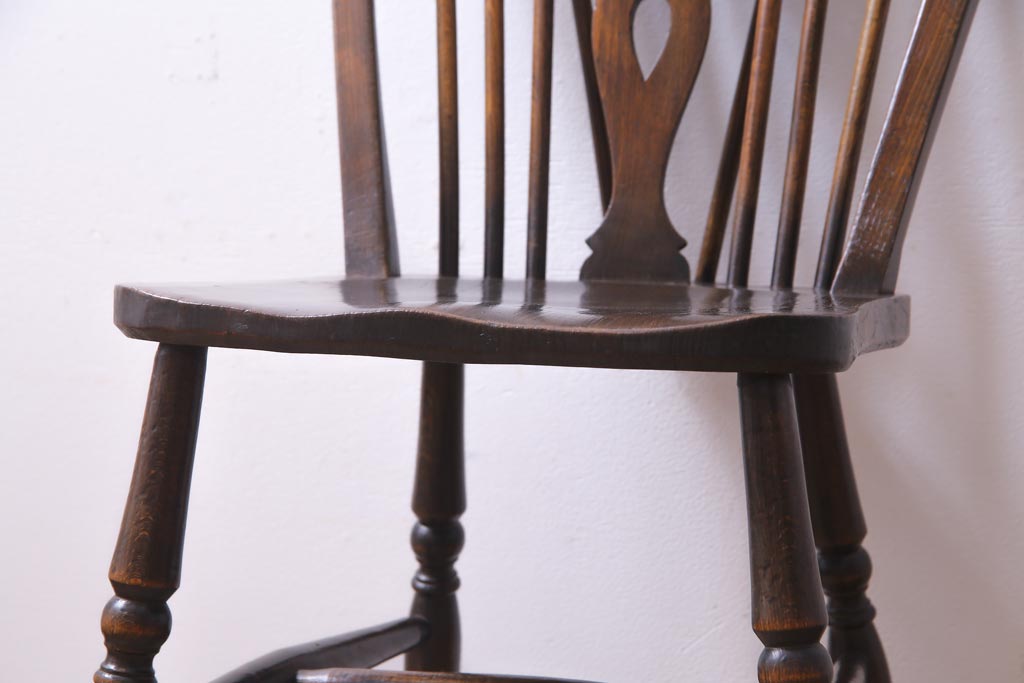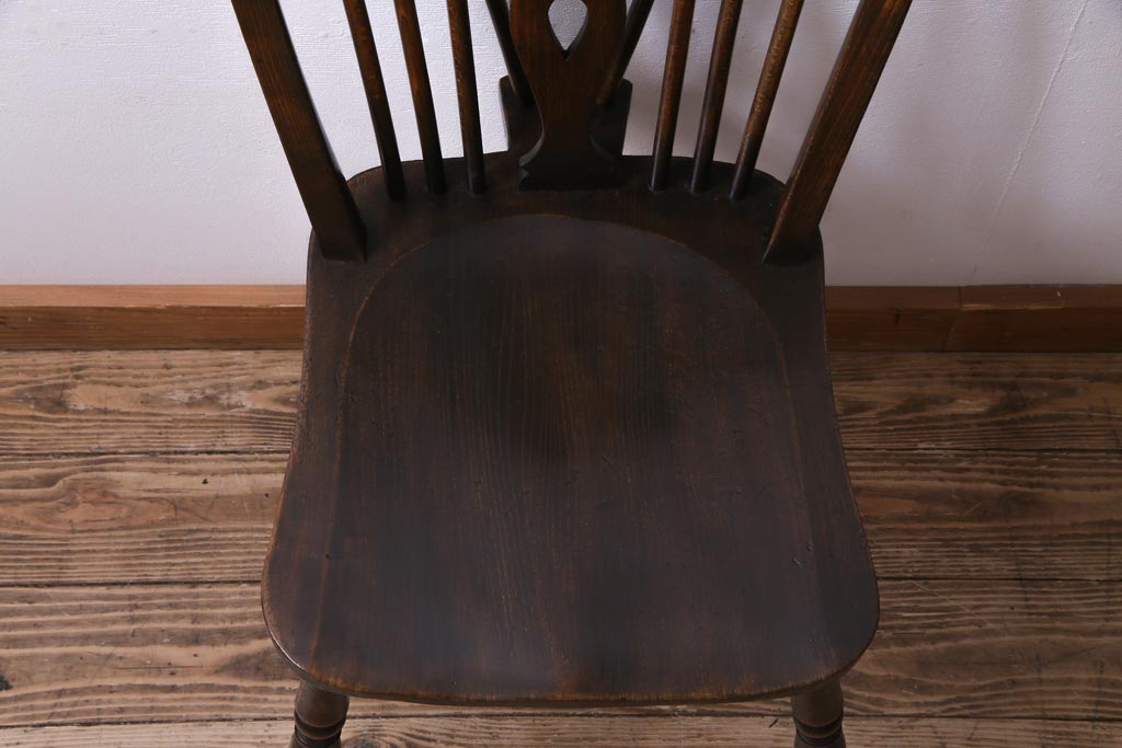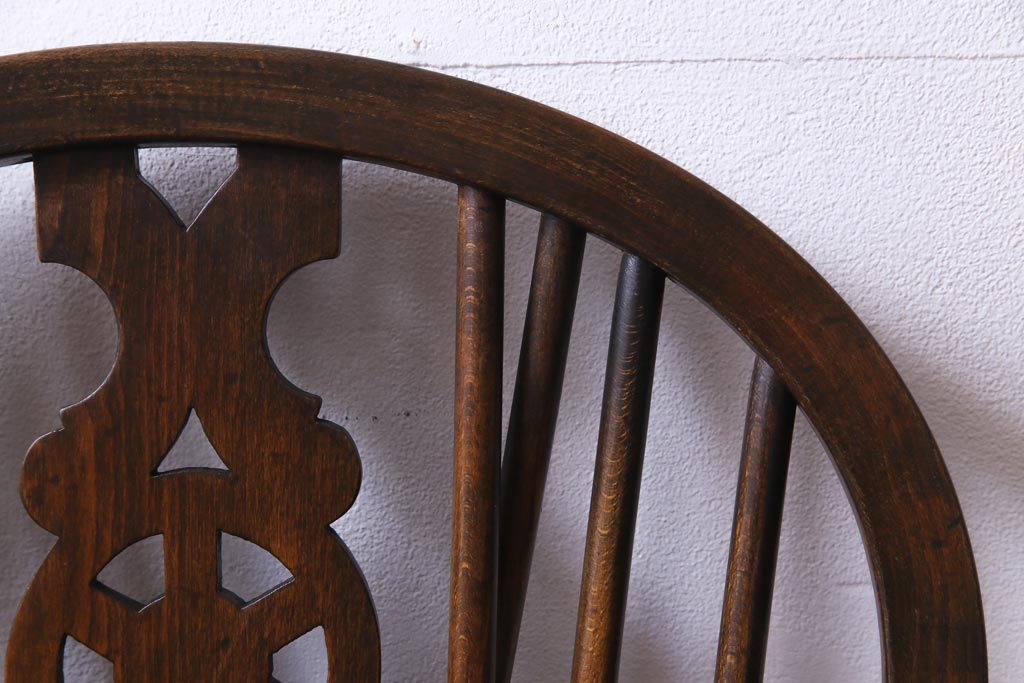ヴィンテージ家具 イギリスビンテージ 背もたれの透かし彫りがお洒落なホイールバックチェア(板座チェア、ダイニングチェア)