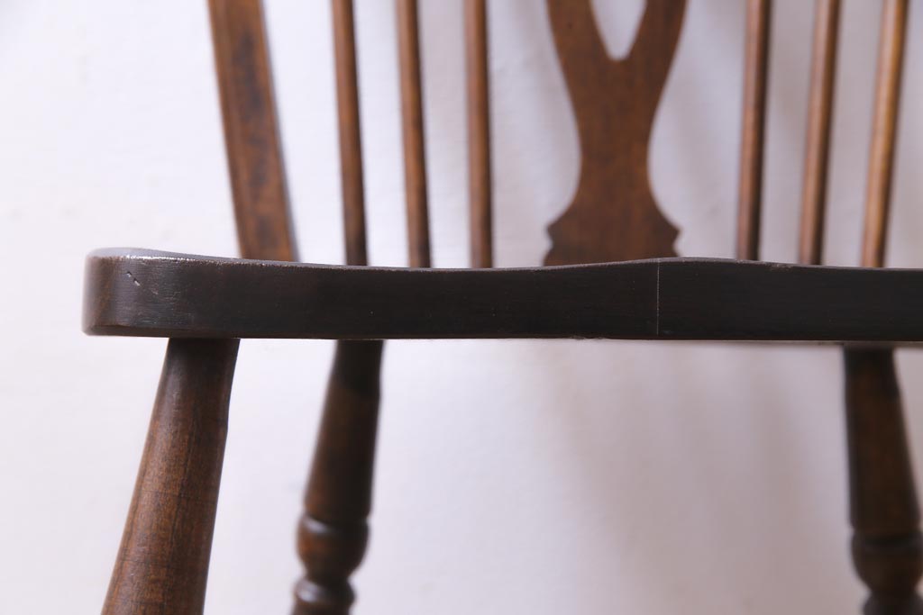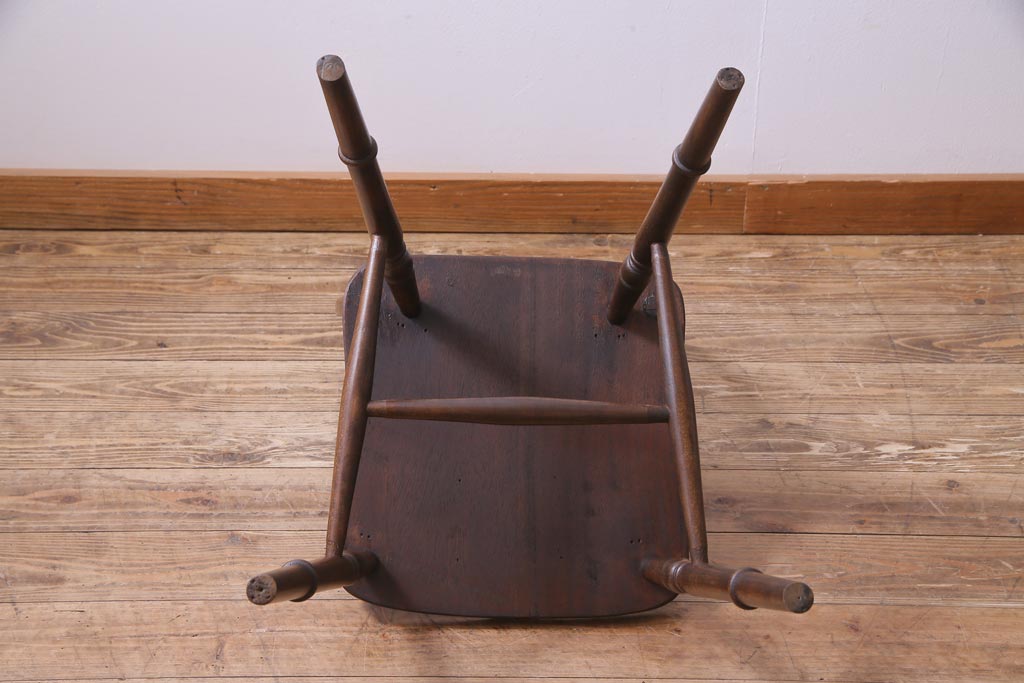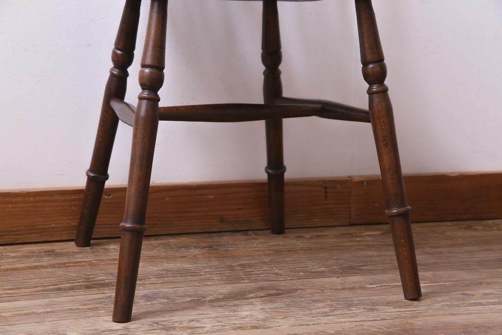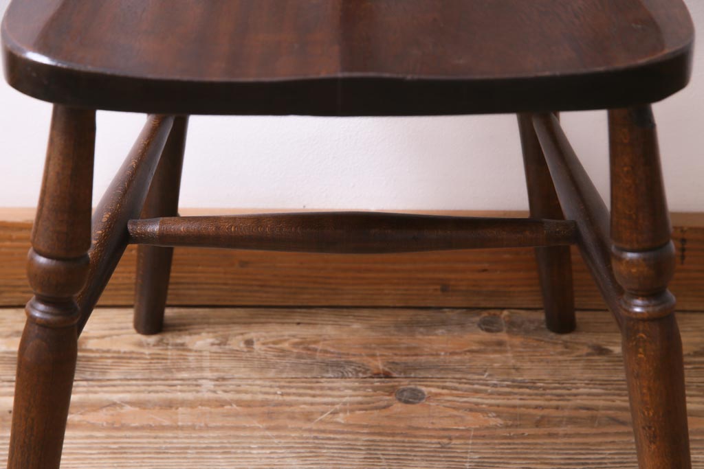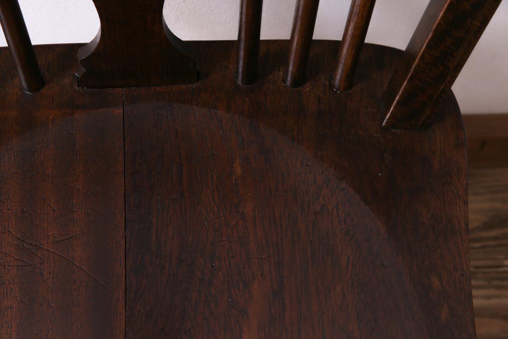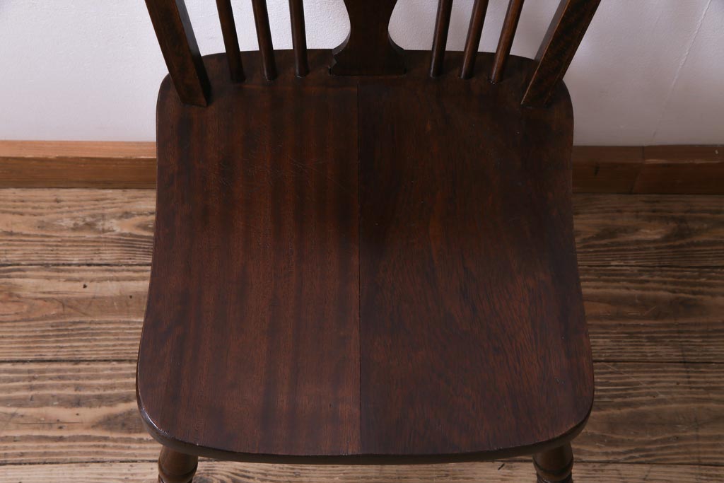 ヴィンテージ家具 イギリスビンテージ 背もたれの透かし彫りがお洒落なホイールバックチェア(板座チェア、ダイニングチェア)(1)