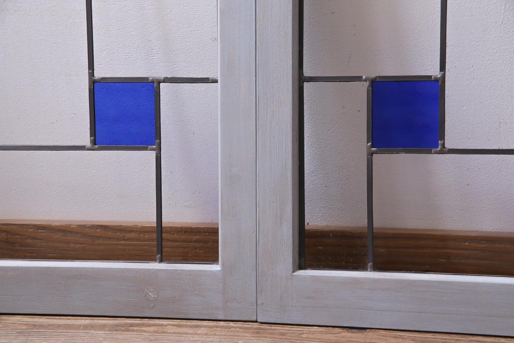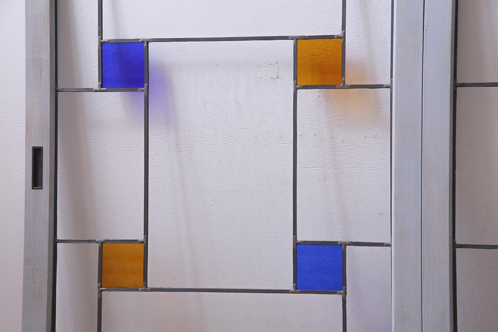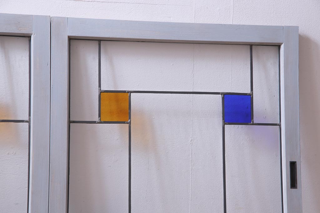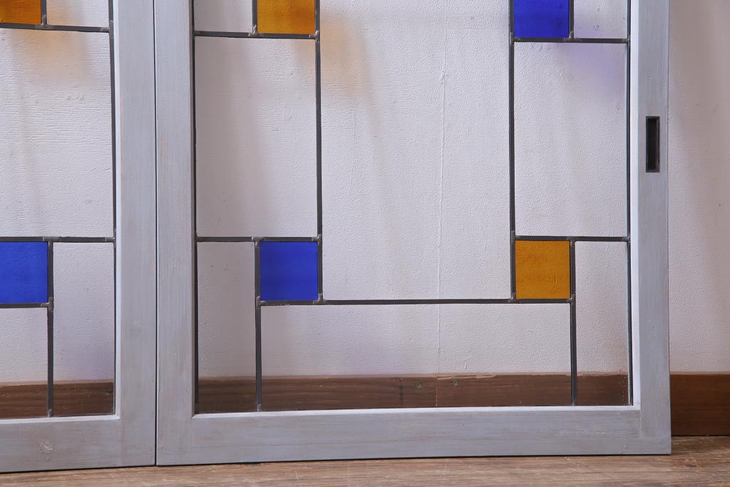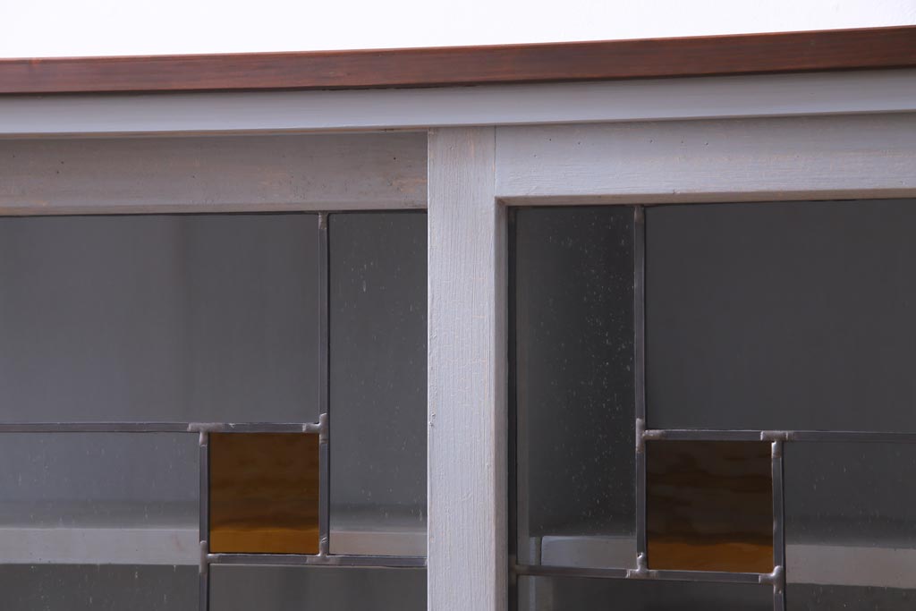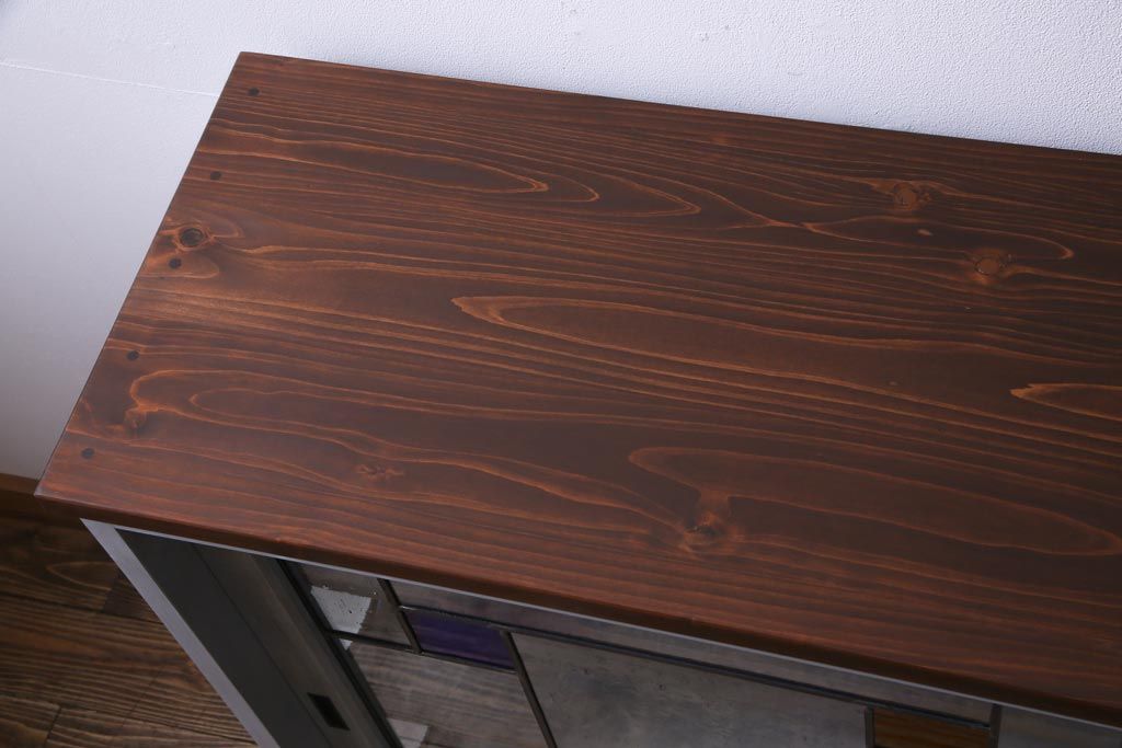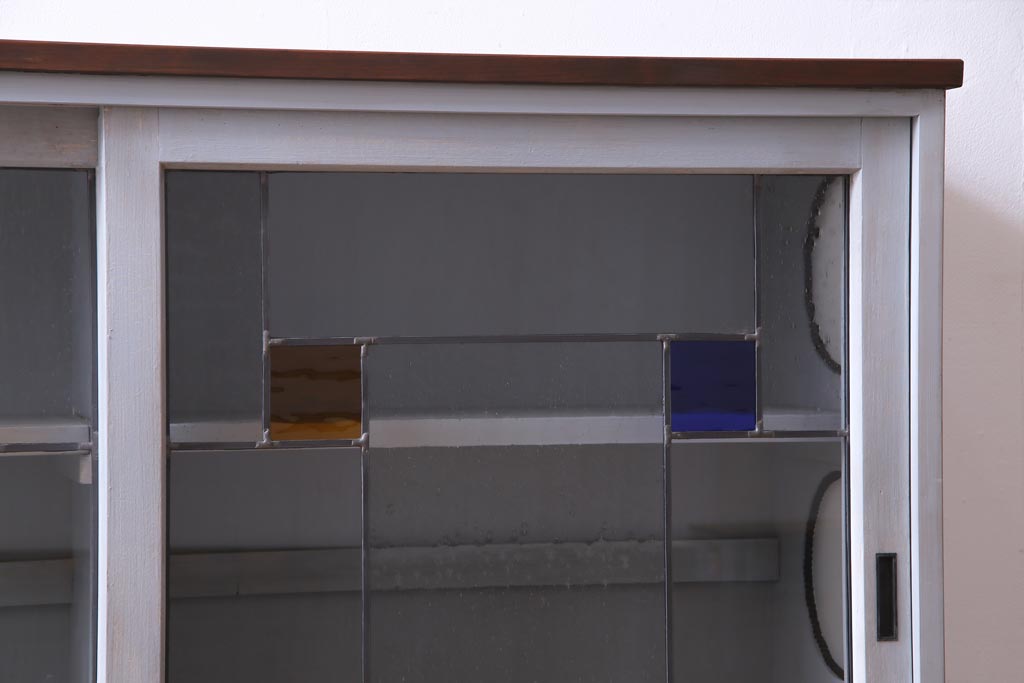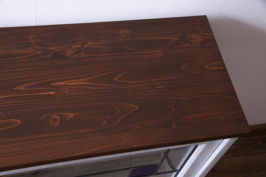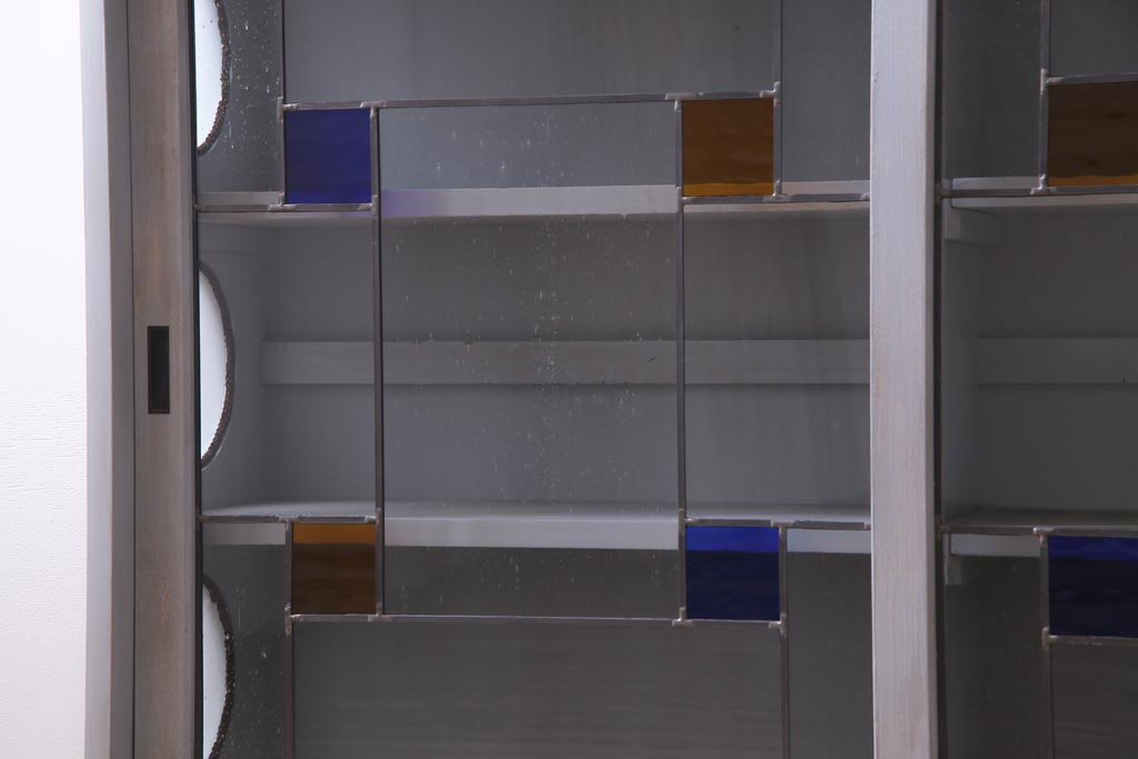 ラフジュ工房オリジナル 古建具リメイク おしゃれなステンドグラス入り戸棚(収納棚、サイドボード)