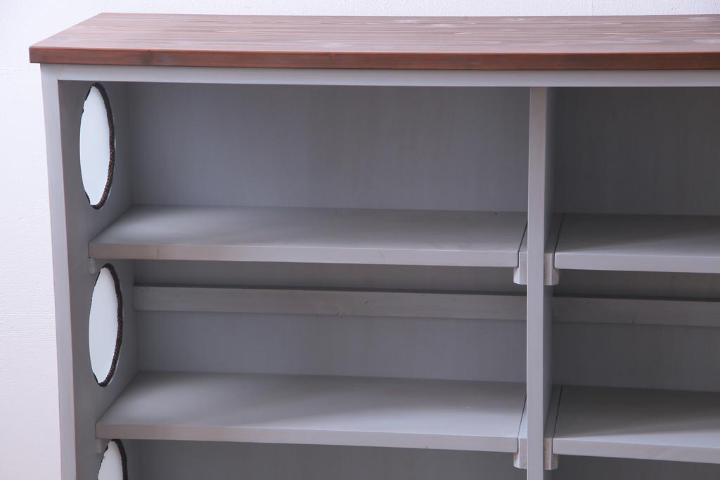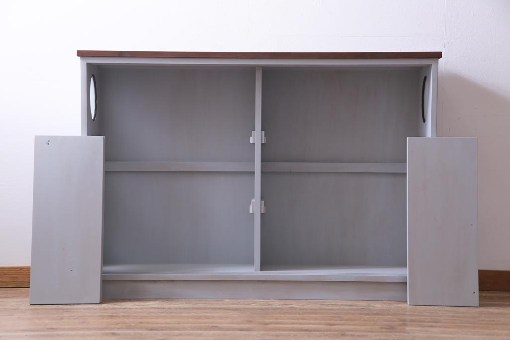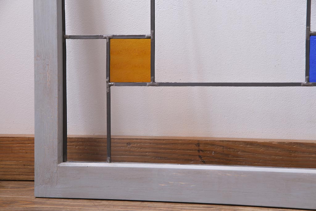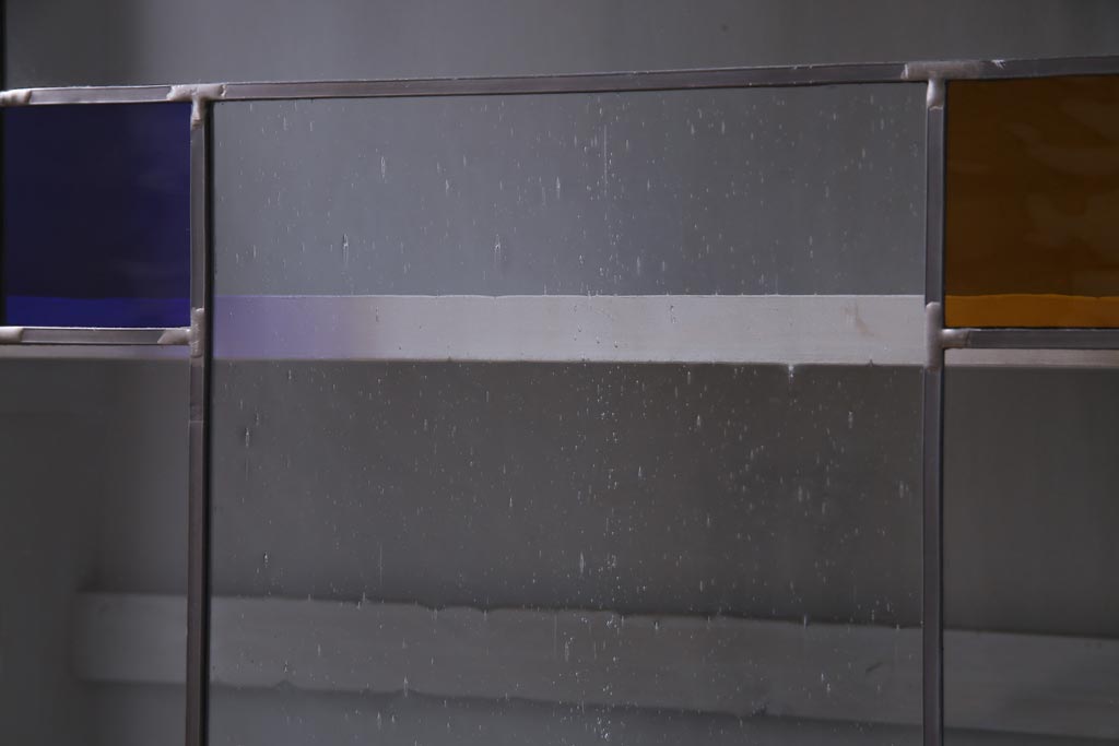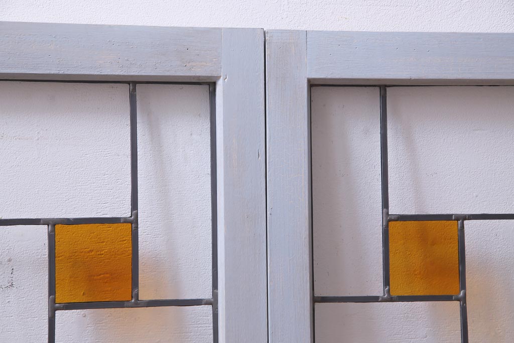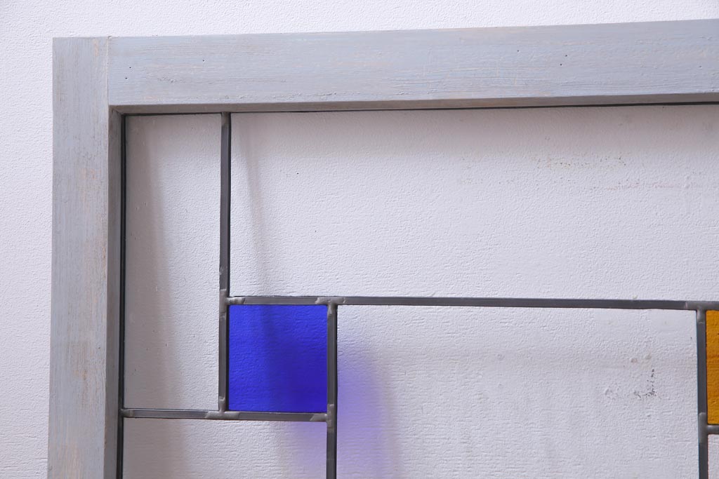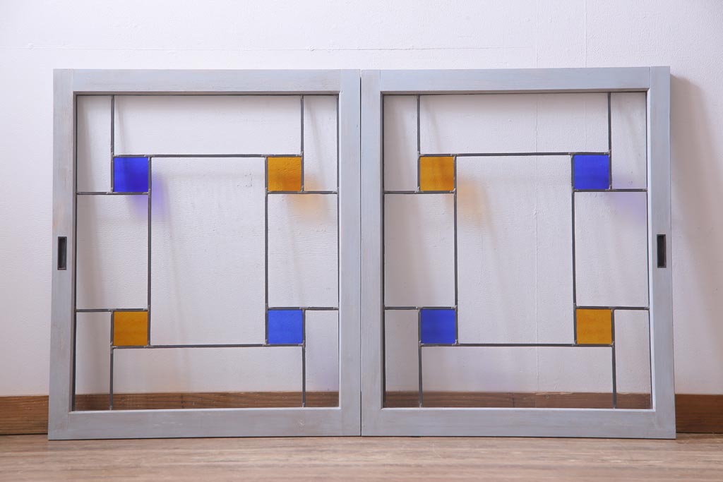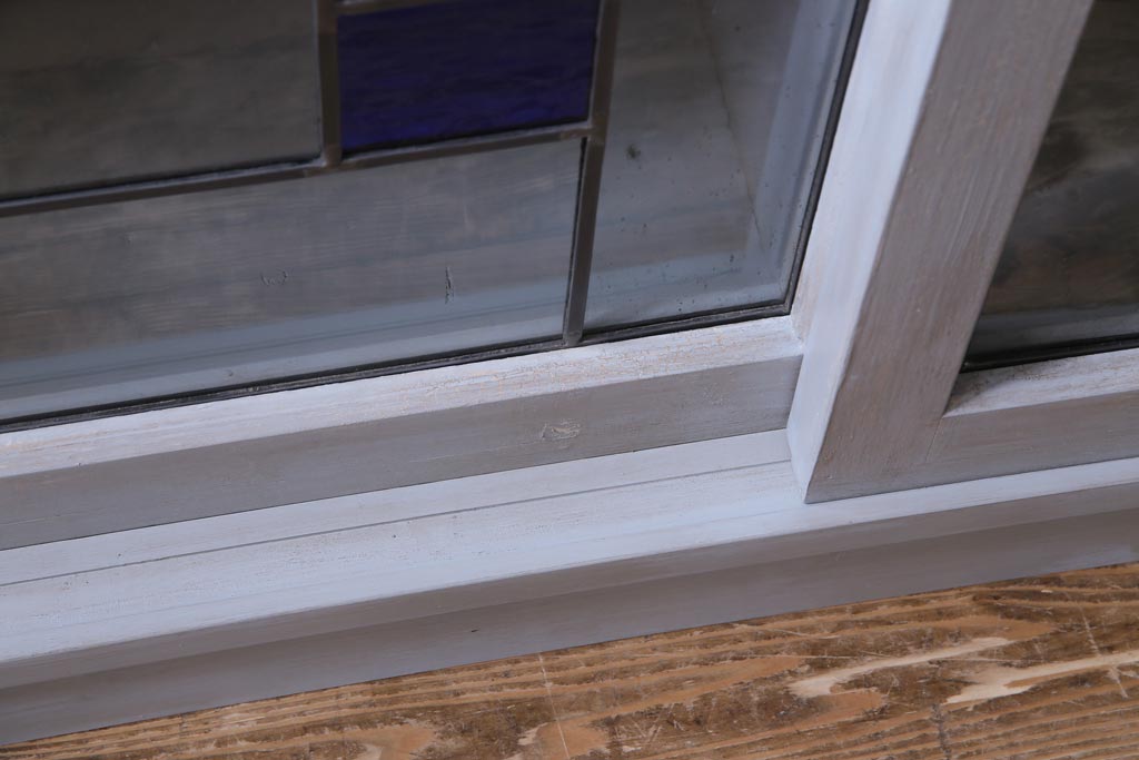 ラフジュ工房オリジナル 古建具リメイク おしゃれなステンドグラス入り戸棚(収納棚、サイドボード)