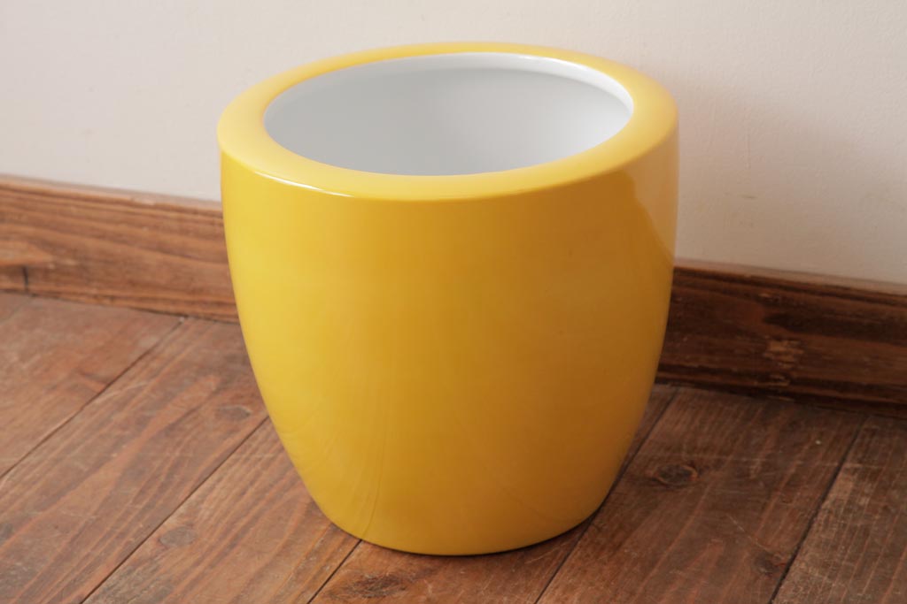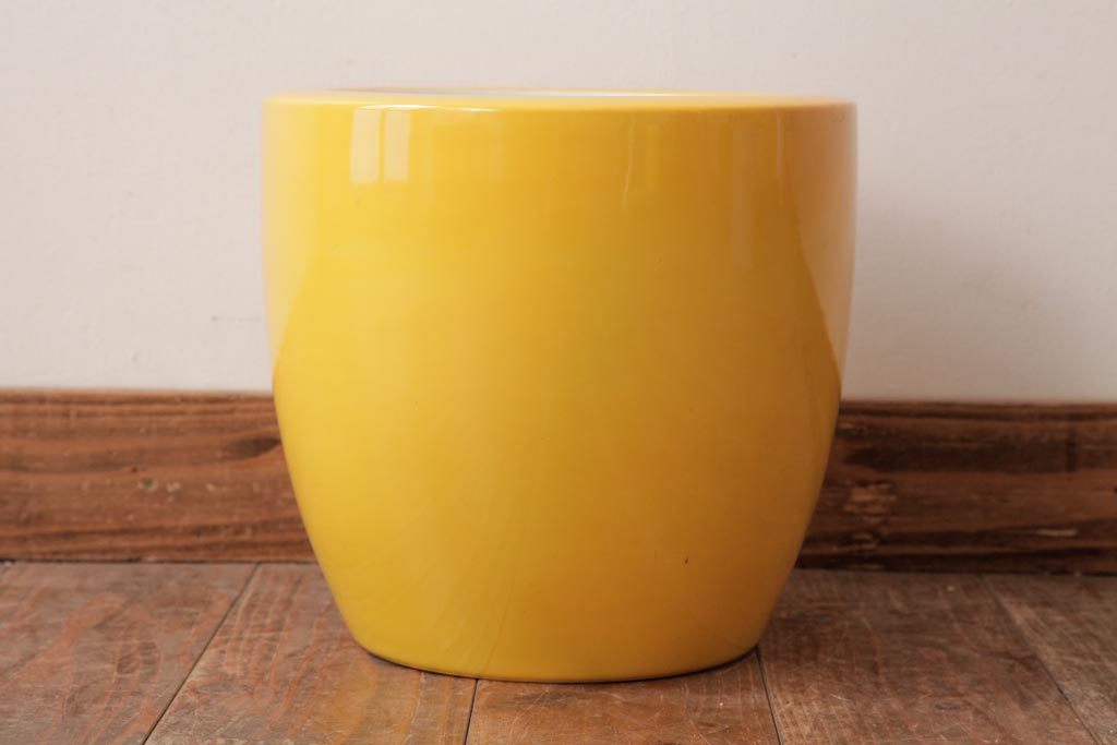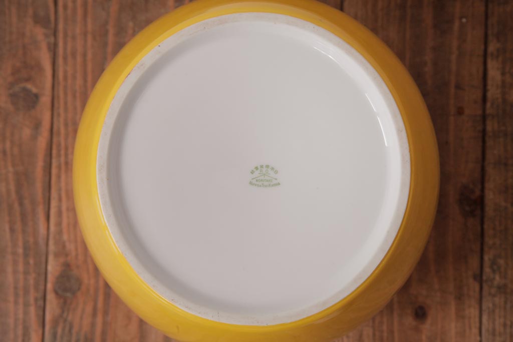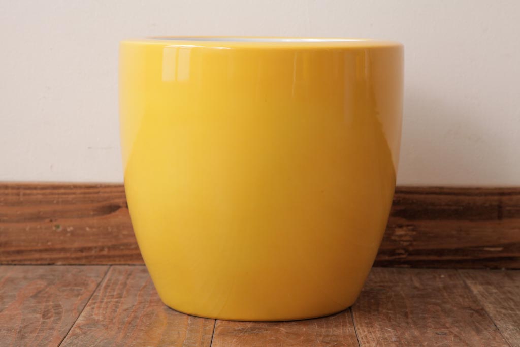 火鉢> 瀬戸火鉢 > アンティーク雑貨 オールドノリタケ(日陶・則武) 黄色地 無紋様で取り入れやすい火鉢(手あぶり、鉢カバー)