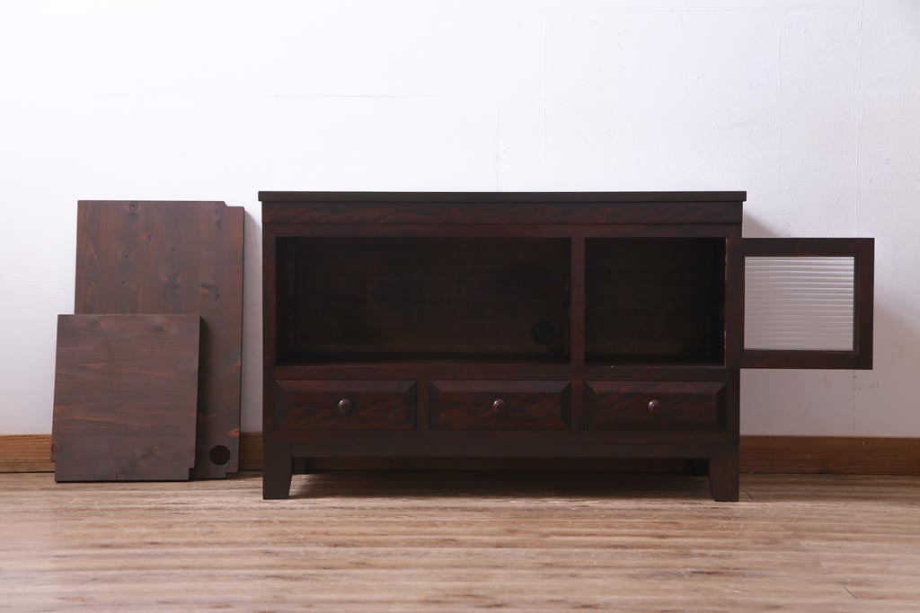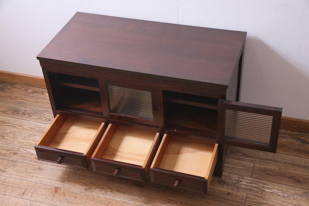 民芸家具 > リメイク家具 松本民芸 シックな佇まいが魅力的な脚付きローボード(テレビボード、リビングボード)