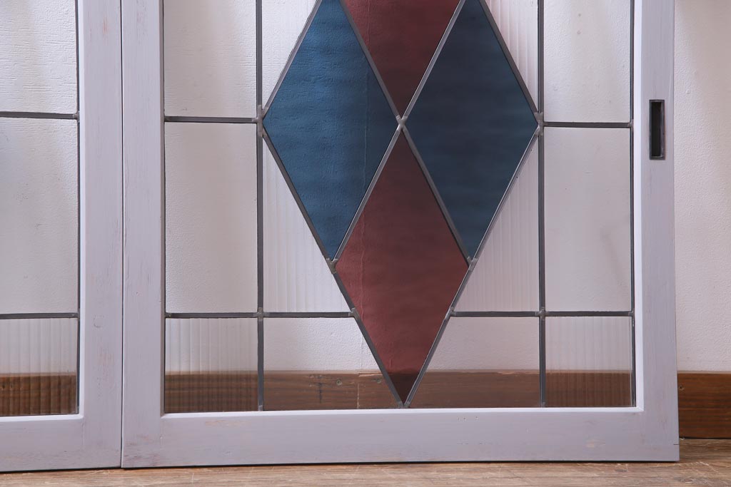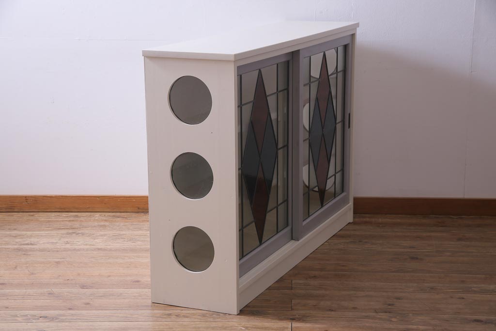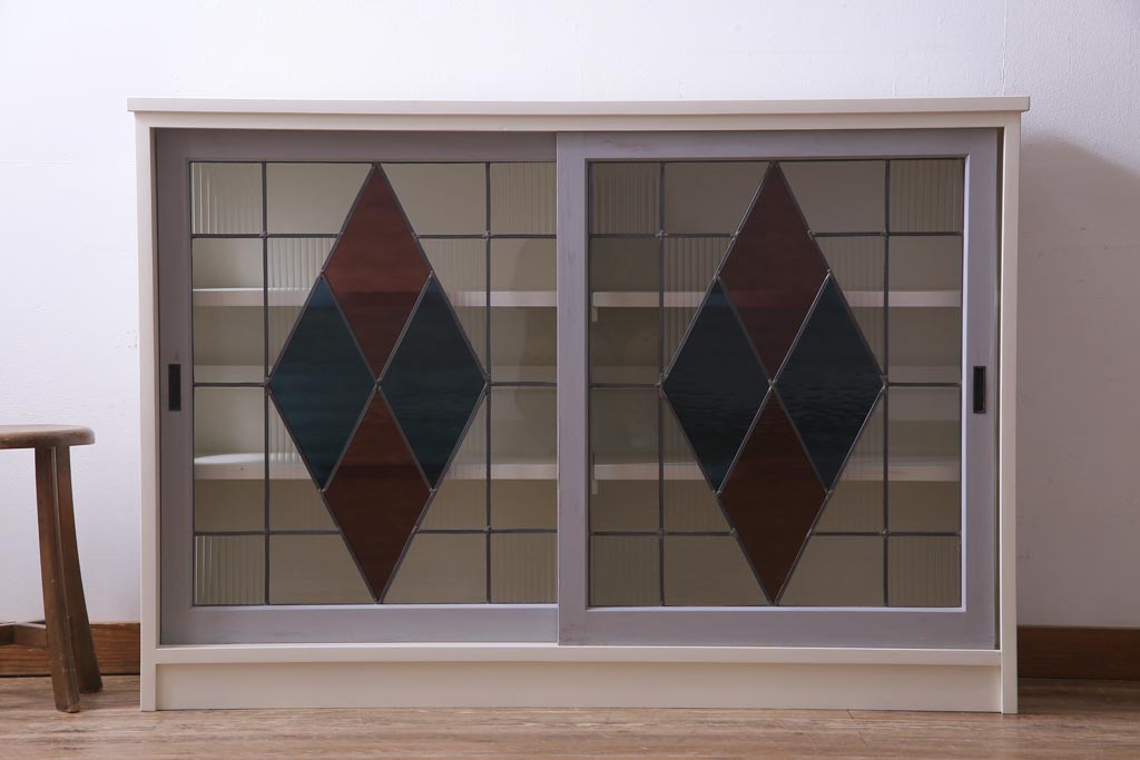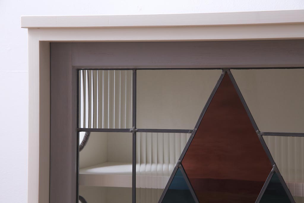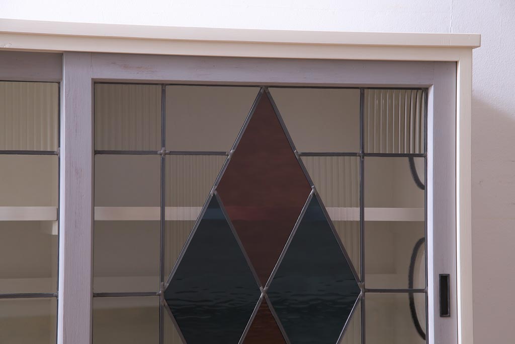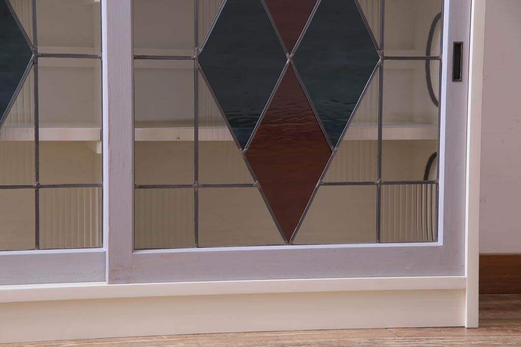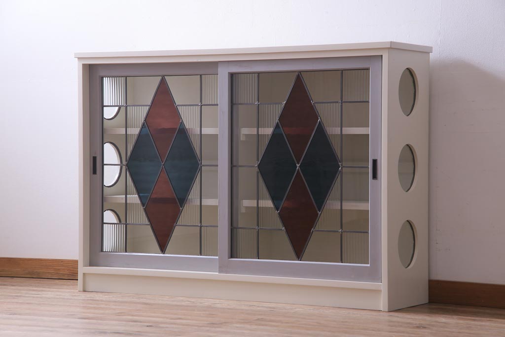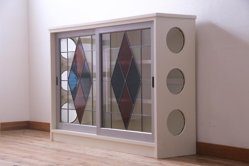 ラフジュ工房オリジナル 古建具リメイク ノスタルジックなステンドグラス入り戸棚(収納棚、サイドボード、キャビネット)