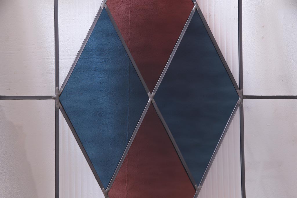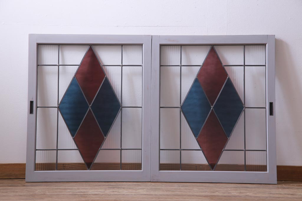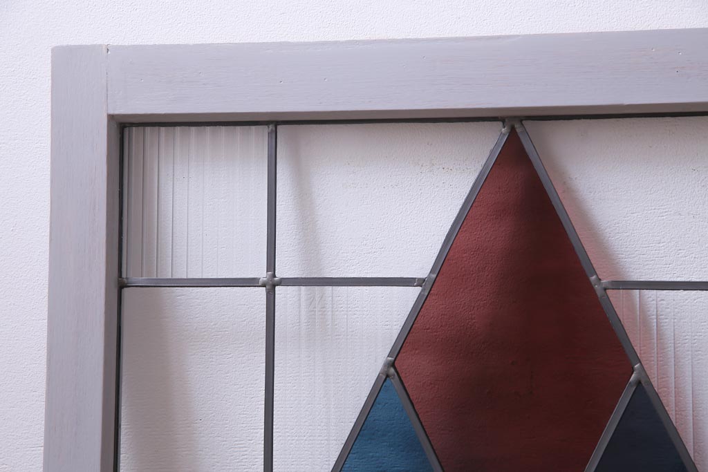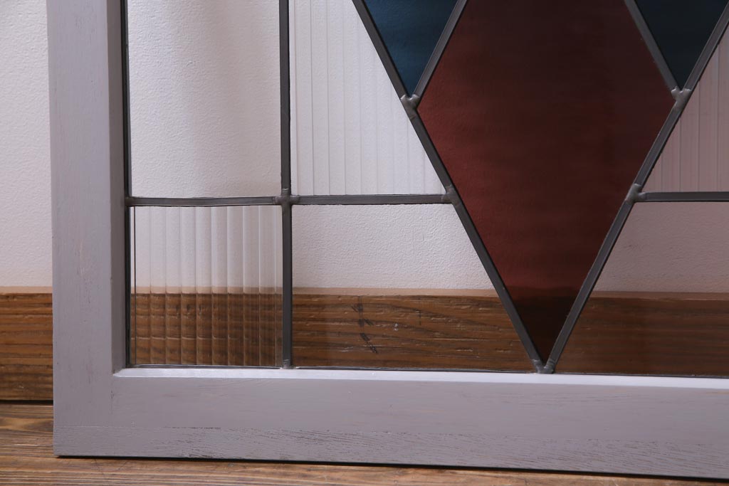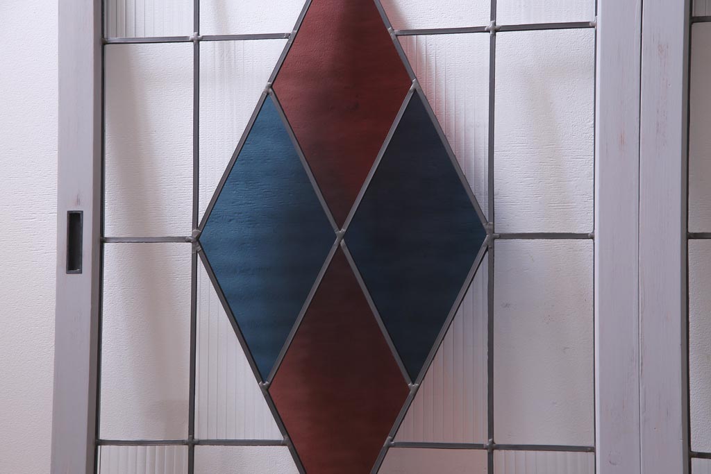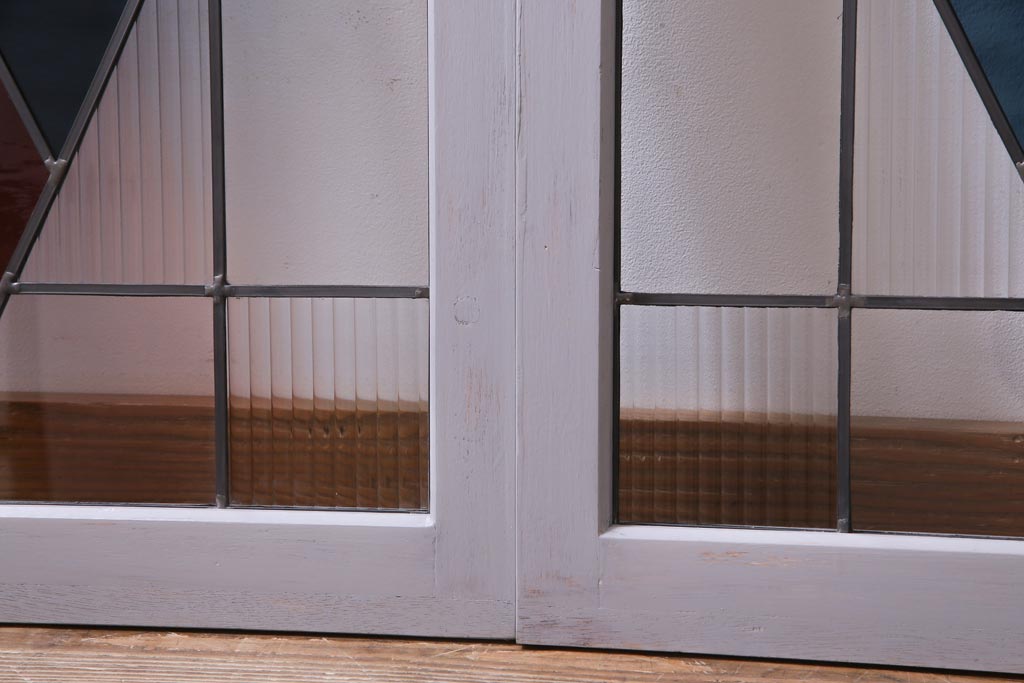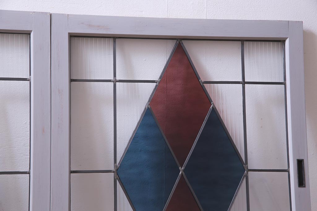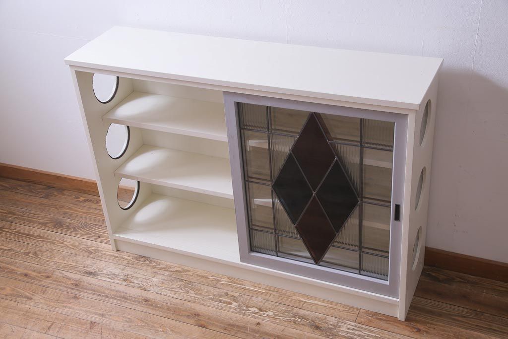 ラフジュ工房オリジナル 古建具リメイク ノスタルジックなステンドグラス入り戸棚(収納棚、サイドボード、キャビネット)