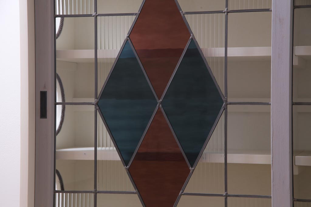 ラフジュ工房> キャビネット・戸棚> サイドキャビネット > ラフジュ工房オリジナル 古建具リメイク ノスタルジックなステンドグラス入り戸棚(収納棚、サイドボード、キャビネット)