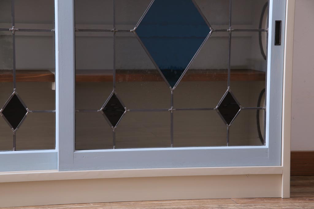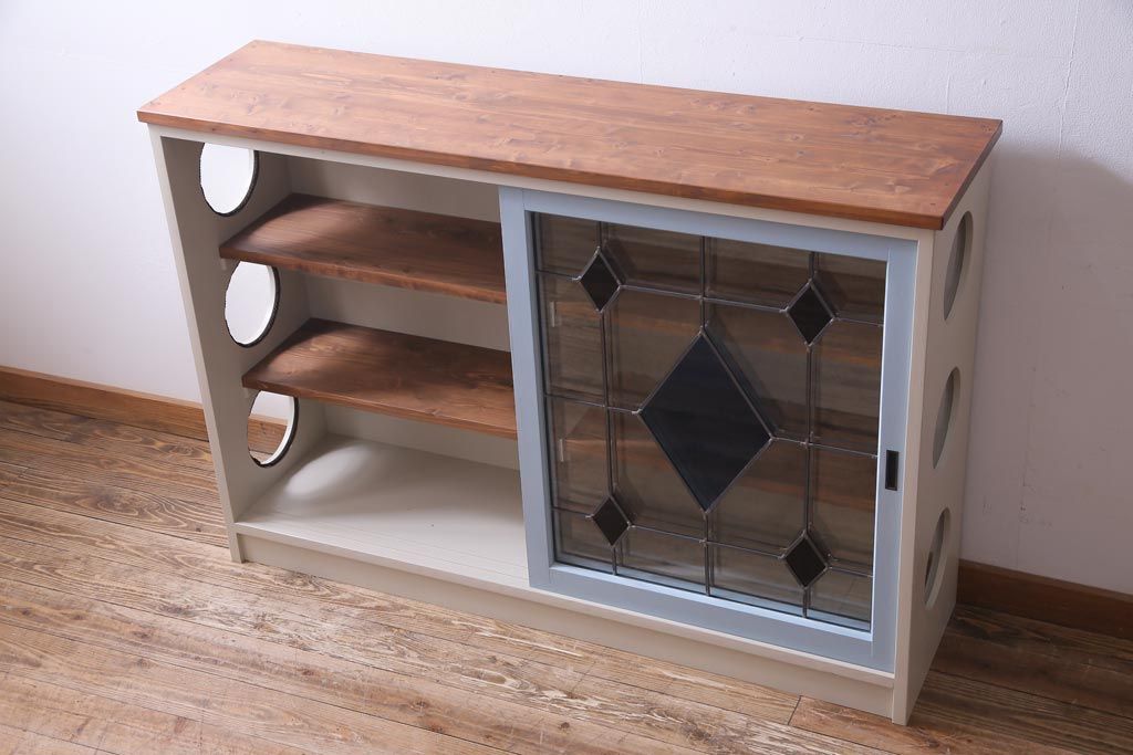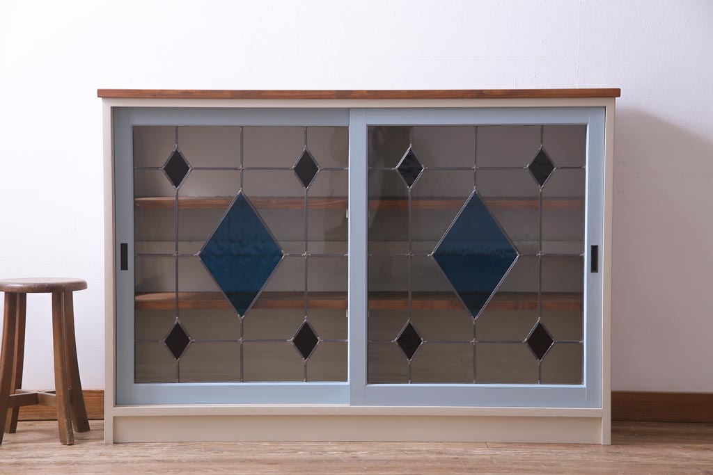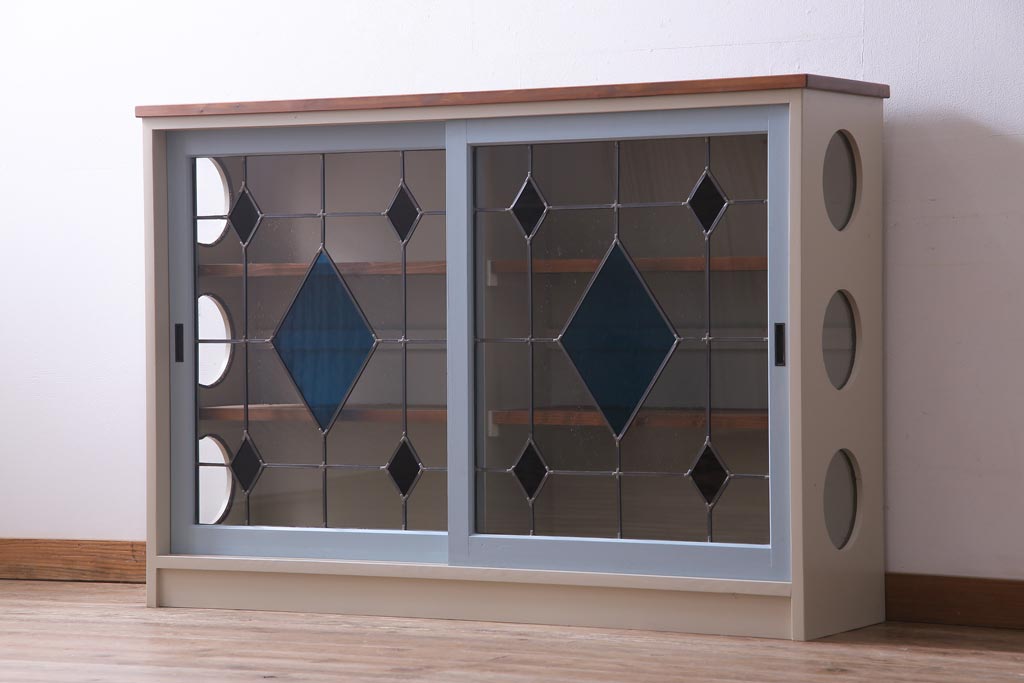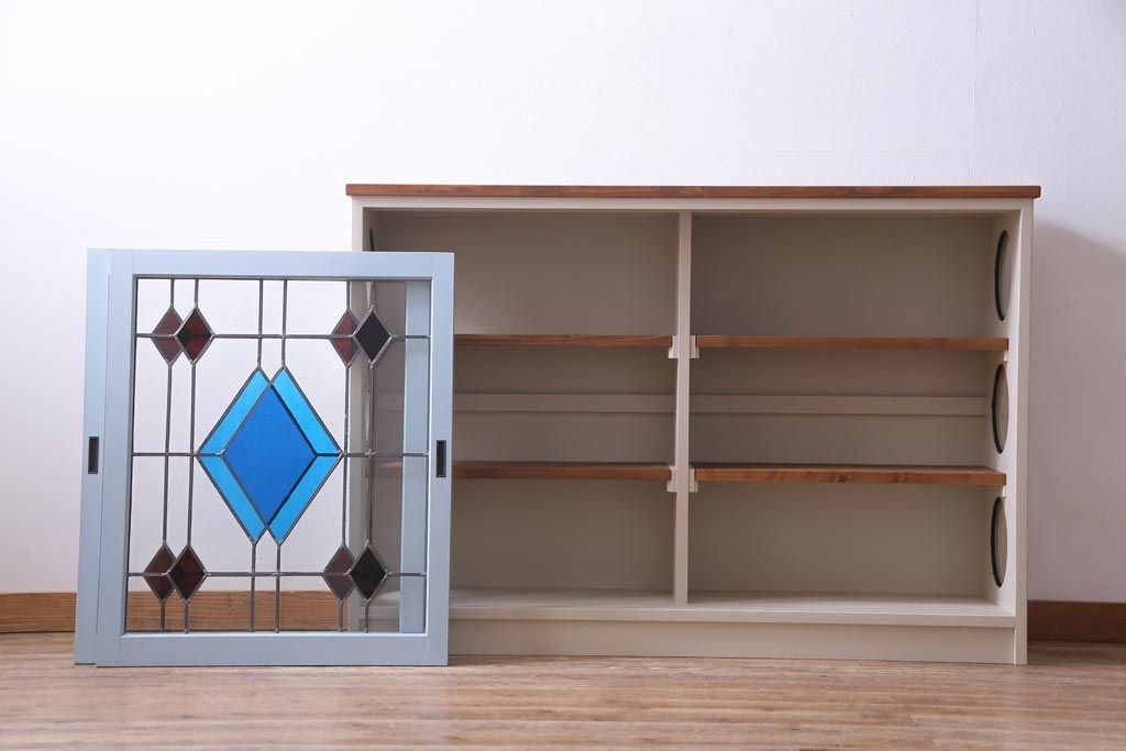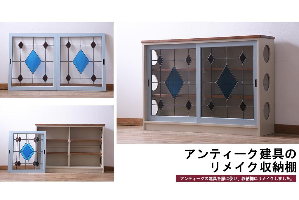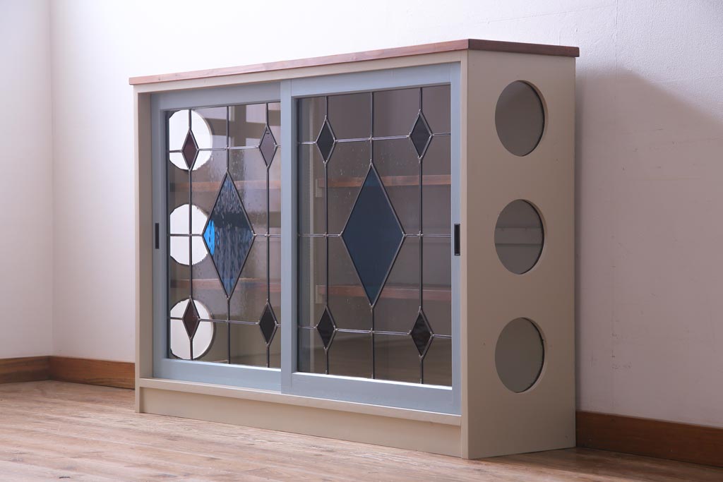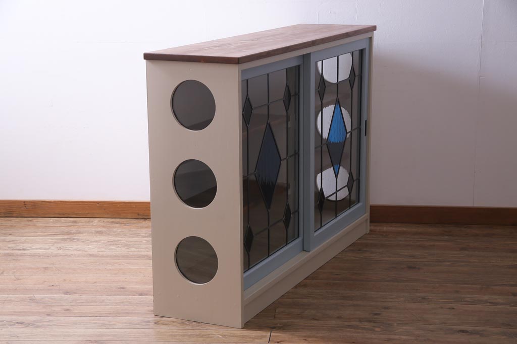 ラフジュ工房オリジナル 古建具リメイク ステンドグラスがおしゃれな戸棚(収納棚、サイドボード)