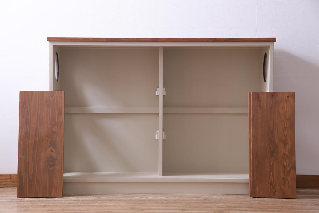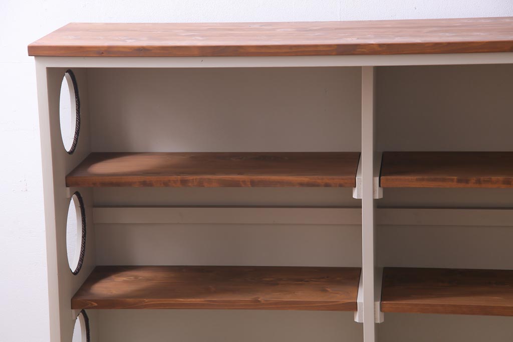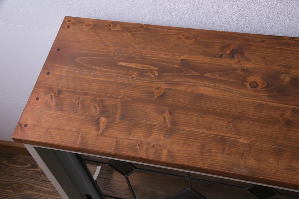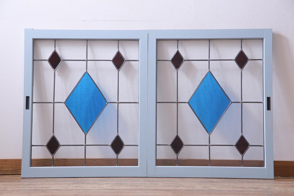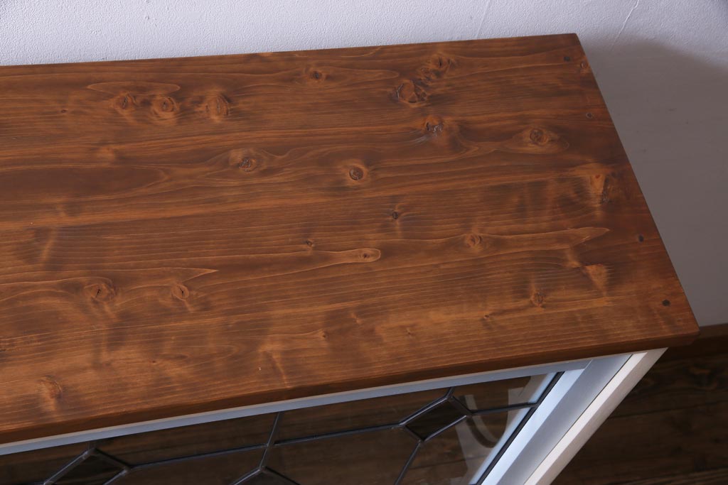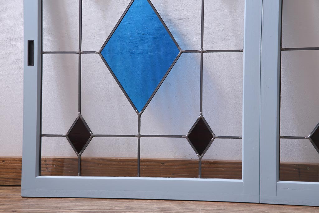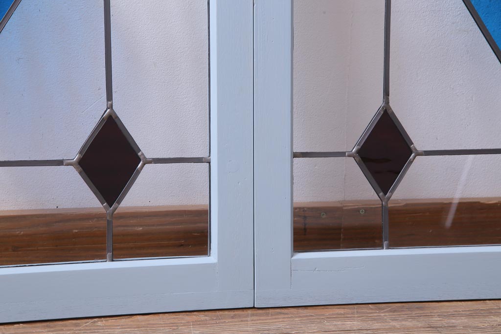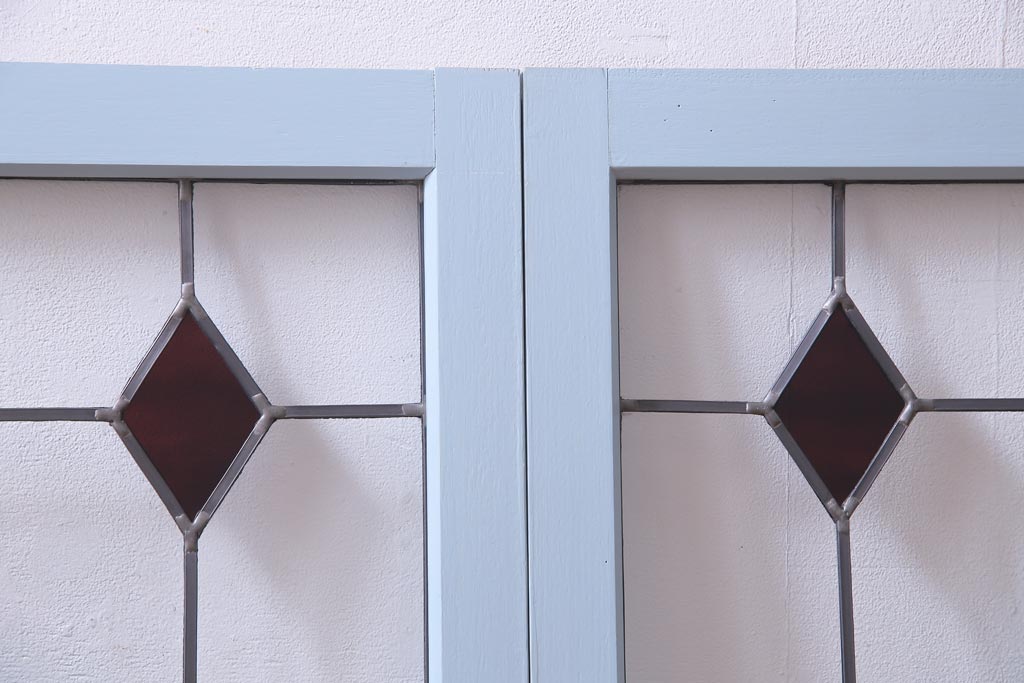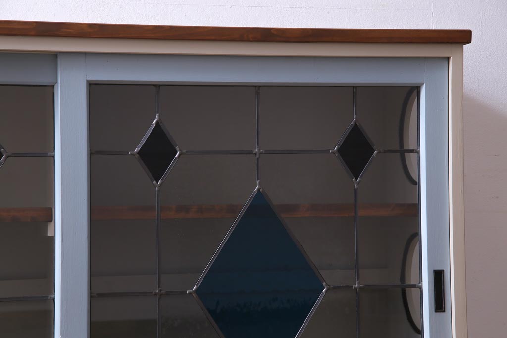 ラフジュ工房オリジナル 古建具リメイク ステンドグラスがおしゃれな戸棚(収納棚、サイドボード)