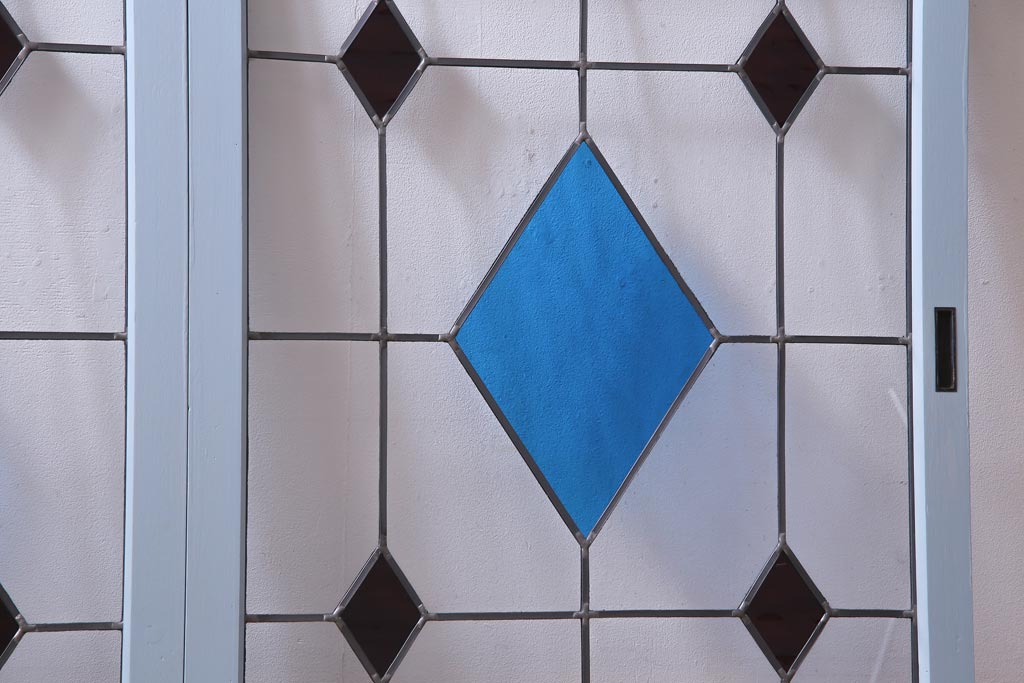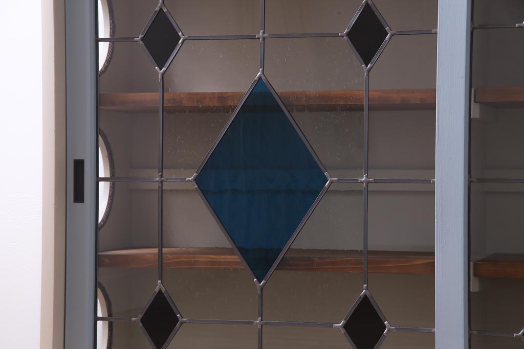 ラフジュ工房> ステンドグラス > ラフジュ工房オリジナル 古建具リメイク ステンドグラスがおしゃれな戸棚(収納棚、サイドボード)