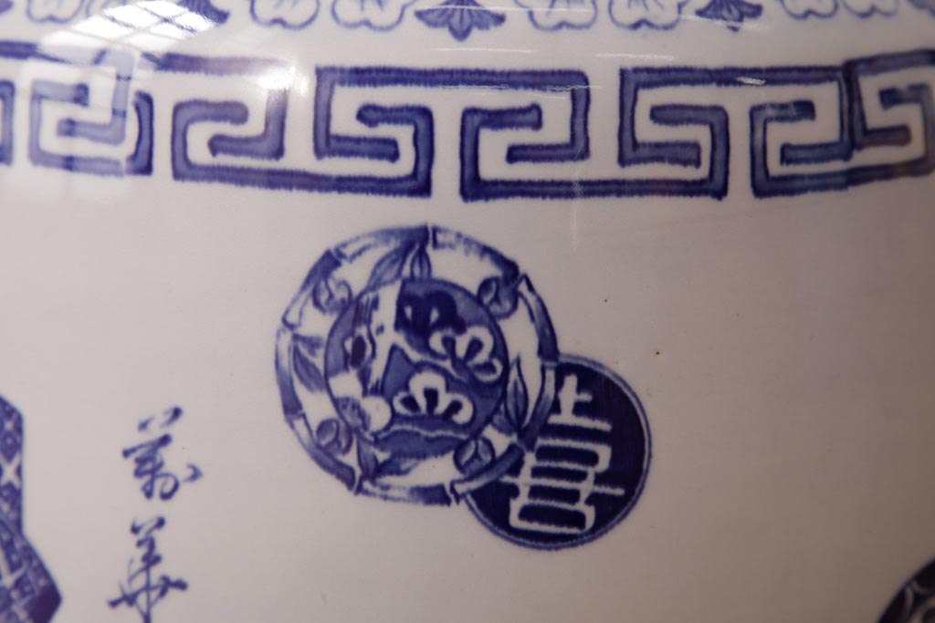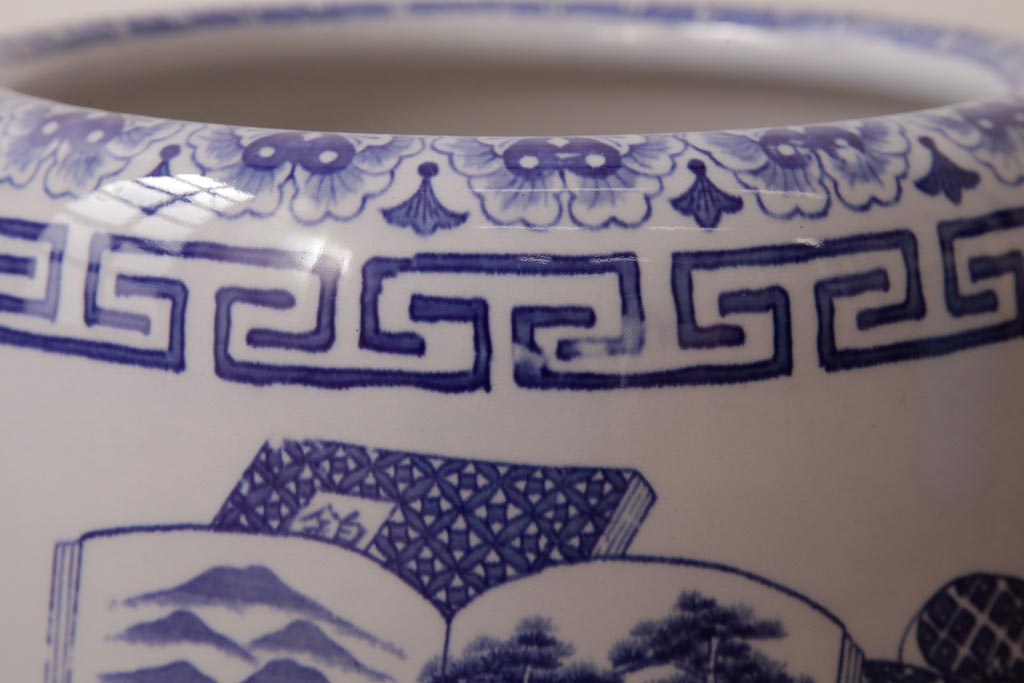 骨董・美術品 > アンティーク雑貨 古民具・骨董 銘入り 窓絵に描かれた山水図が風情溢れる瀬戸火鉢(鉢カバー、手あぶり)