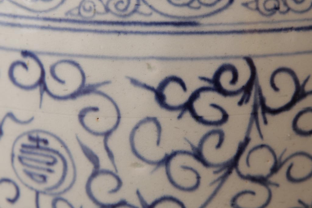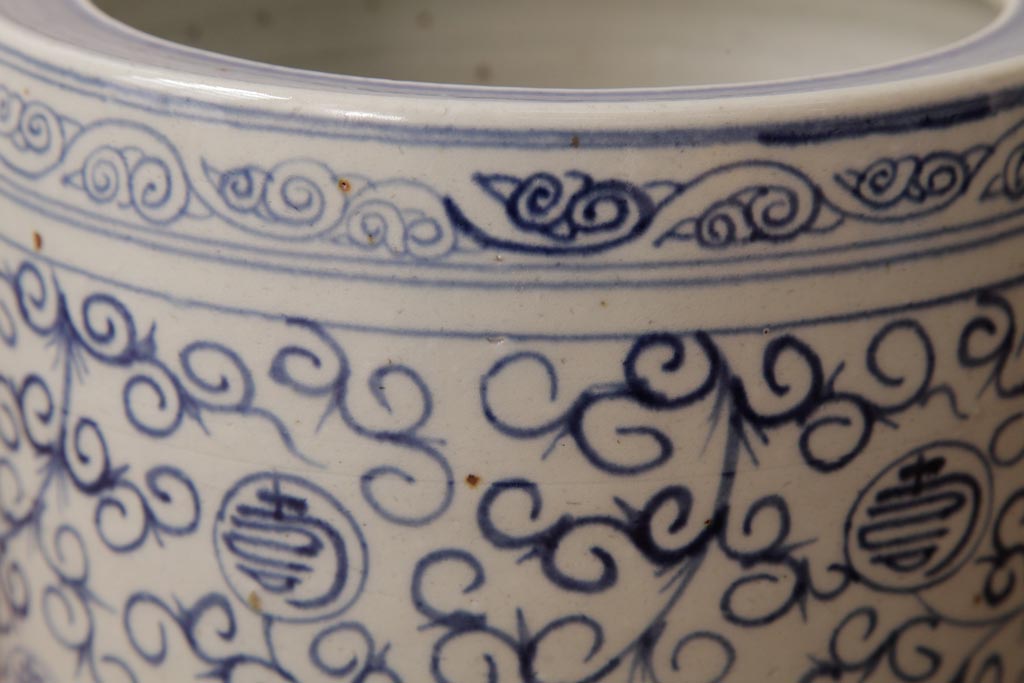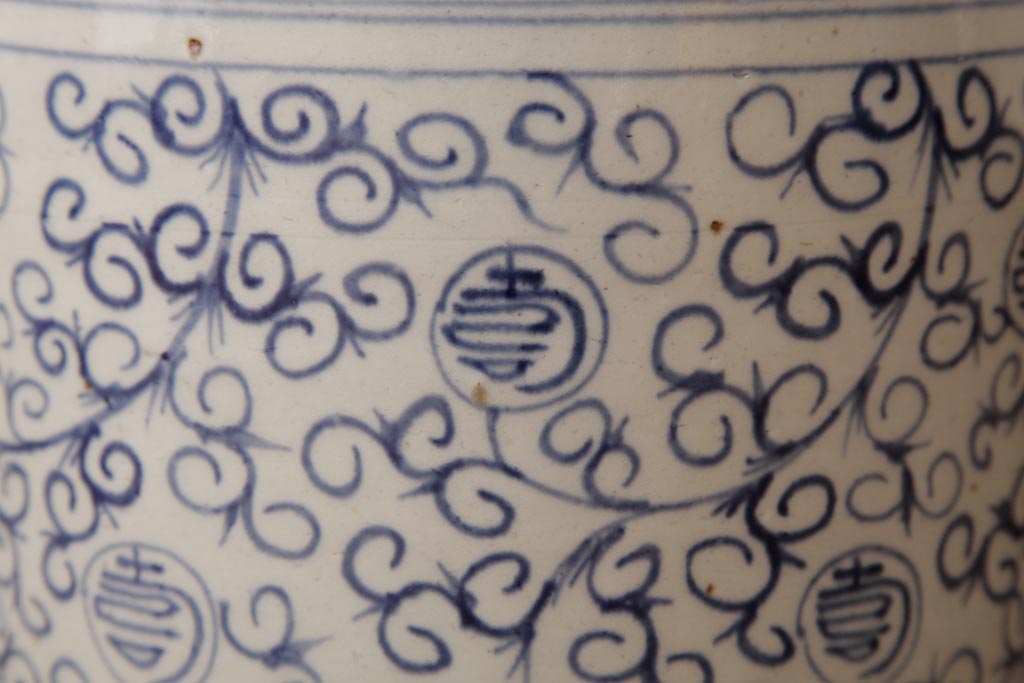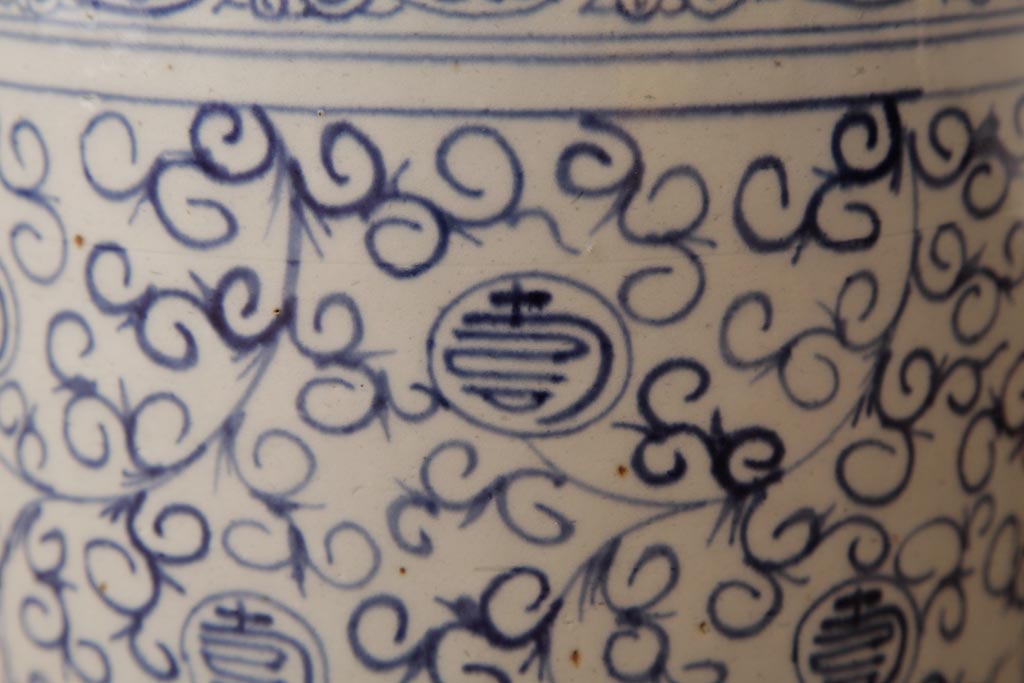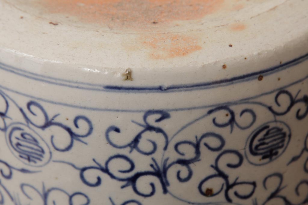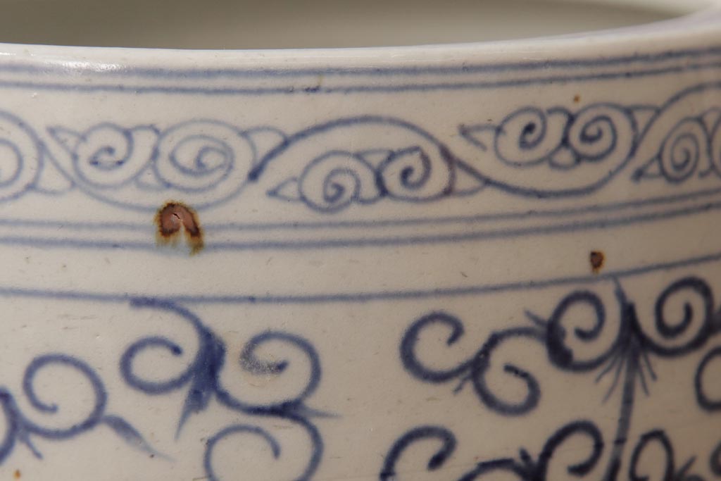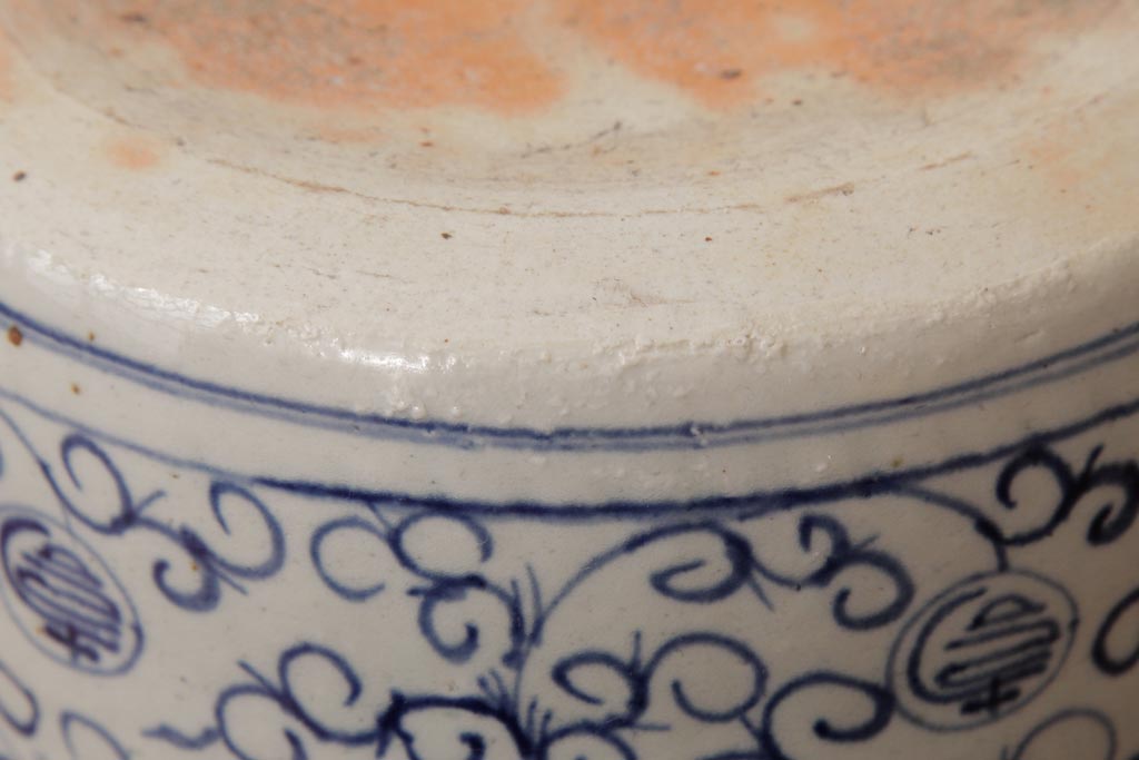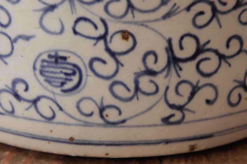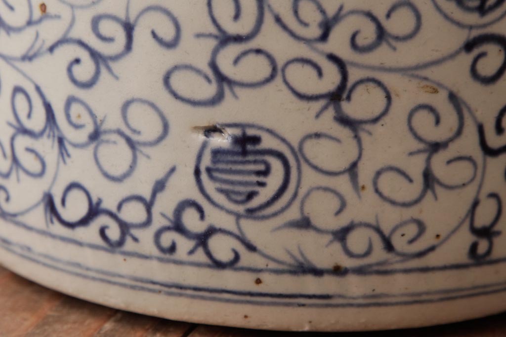 火鉢> 瀬戸火鉢 > アンティーク雑貨 和製アンティーク 小振り 唐草と寿文様が描かれた珍しい図柄の火鉢(手あぶり)
