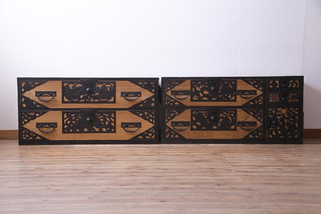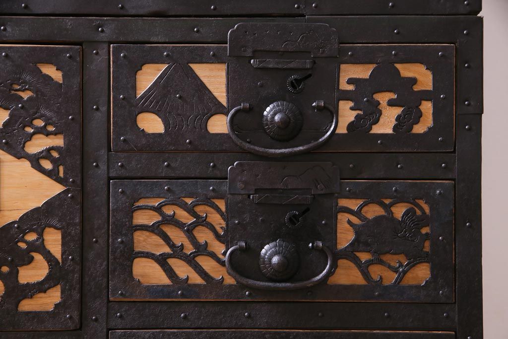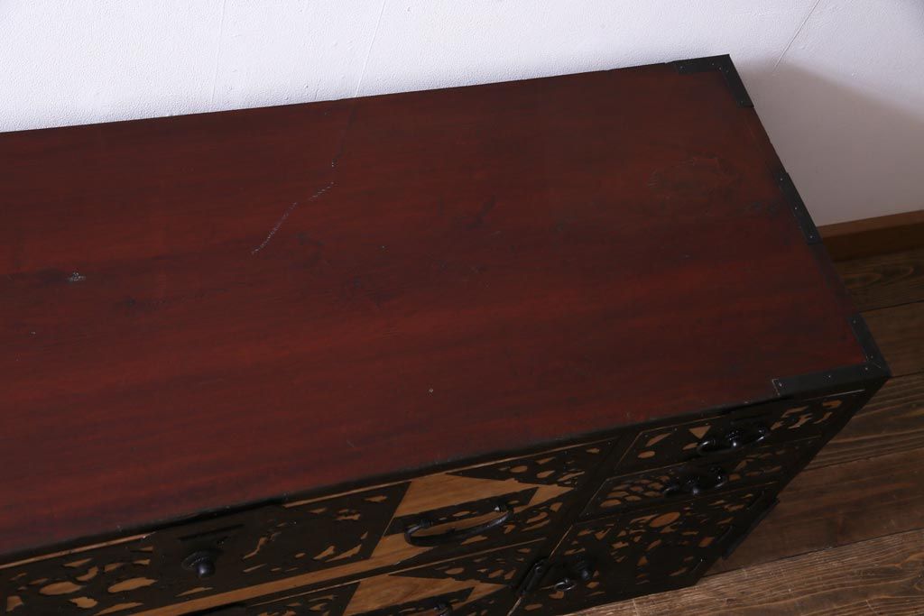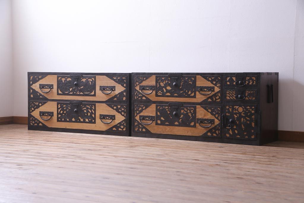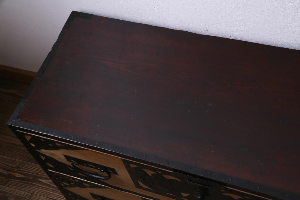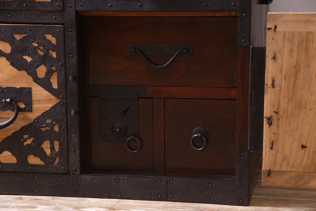 アンティーク家具 古民具 明治期 前面桐材 ローボードとしても使える風格のある佇まいの佐渡箪笥(八幡箪笥、桐箪笥、桐たんす)
