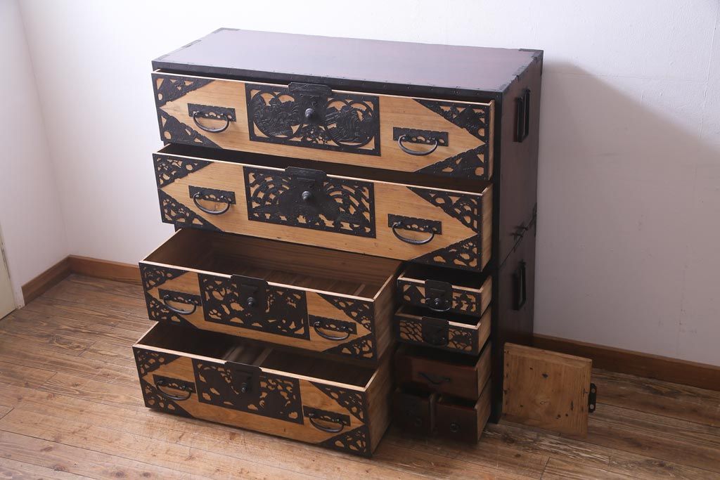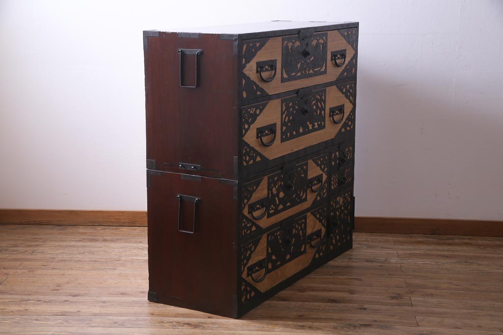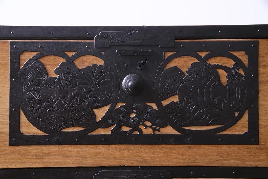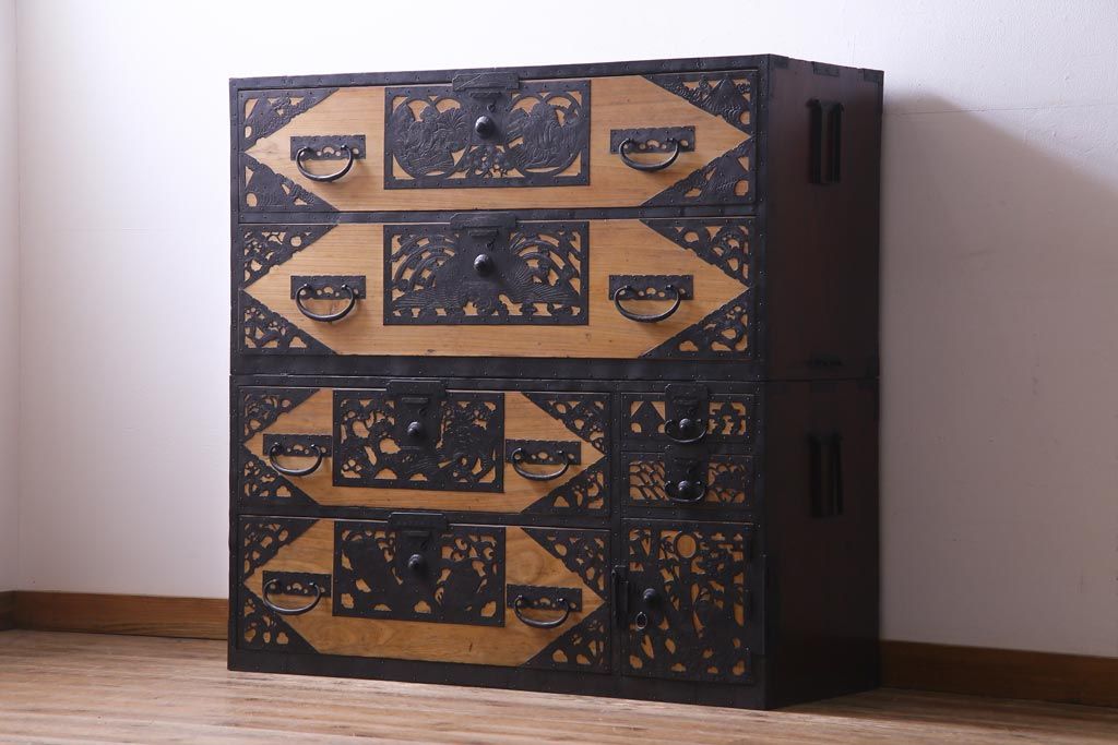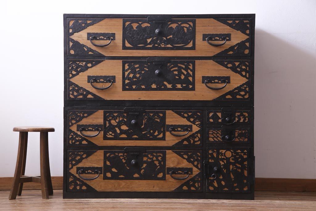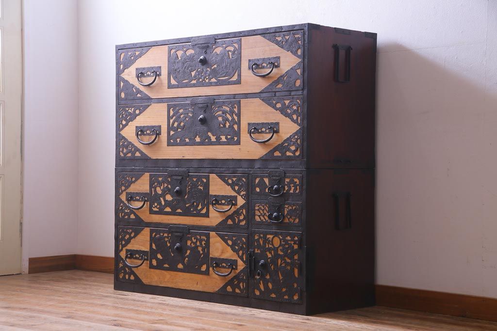 アンティーク家具 古民具 明治期 前面桐材 ローボードとしても使える風格のある佇まいの佐渡箪笥(八幡箪笥、桐箪笥、桐たんす)