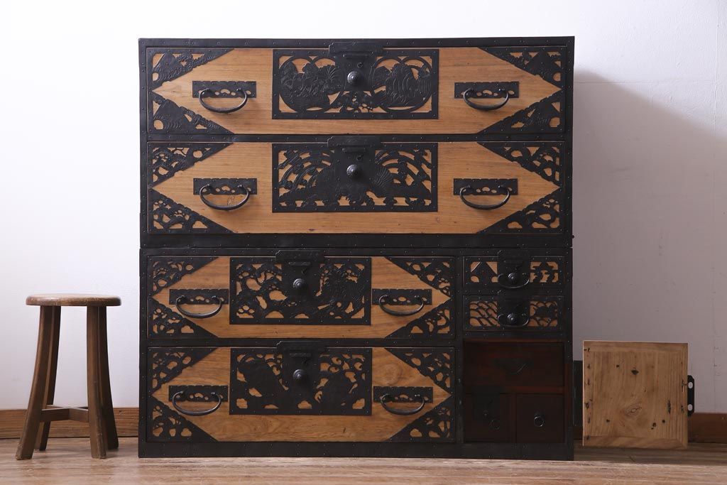 ラフジュ工房> 和箪笥> 衣装箪笥 > アンティーク家具 古民具 明治期 前面桐材 ローボードとしても使える風格のある佇まいの佐渡箪笥(八幡箪笥、桐箪笥、桐たんす)