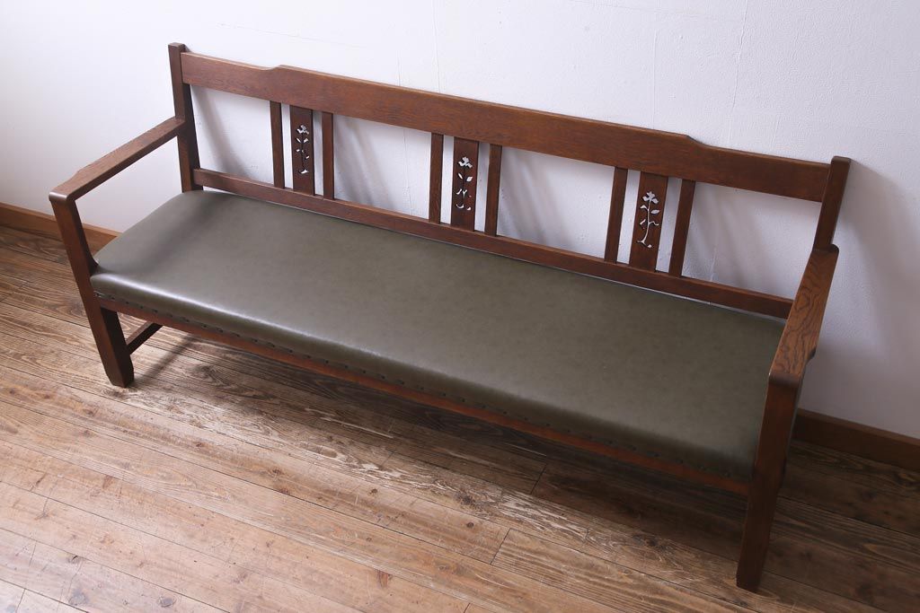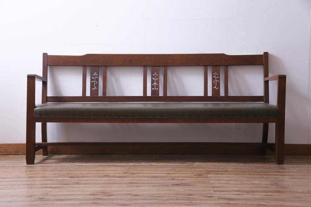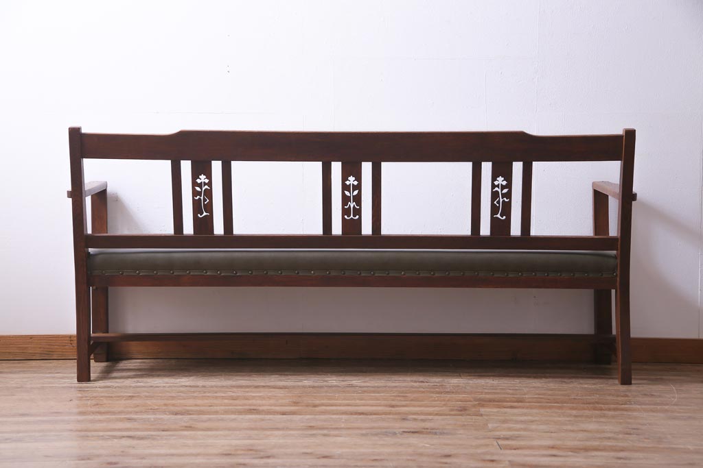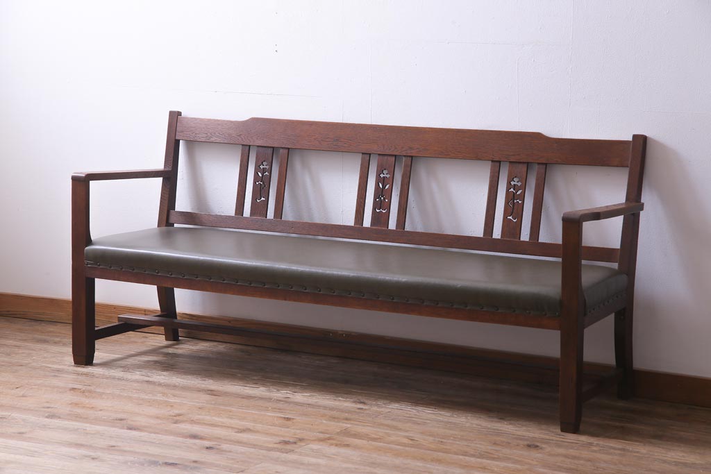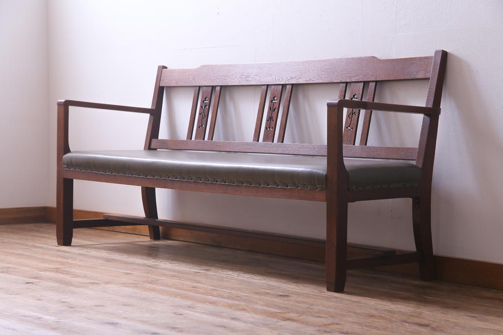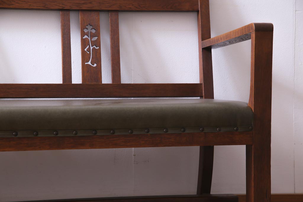 アンティーク家具 和製アンティーク 昭和初期 ナラ材 大正ロマン香る佇まいが魅力的なソファベンチ(長椅子)
