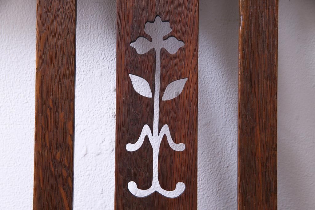 椅子・ベンチ> ベンチ > アンティーク家具 和製アンティーク 昭和初期 ナラ材 大正ロマン香る佇まいが魅力的なソファベンチ(長椅子)
