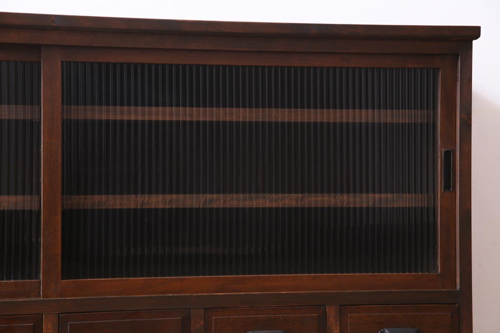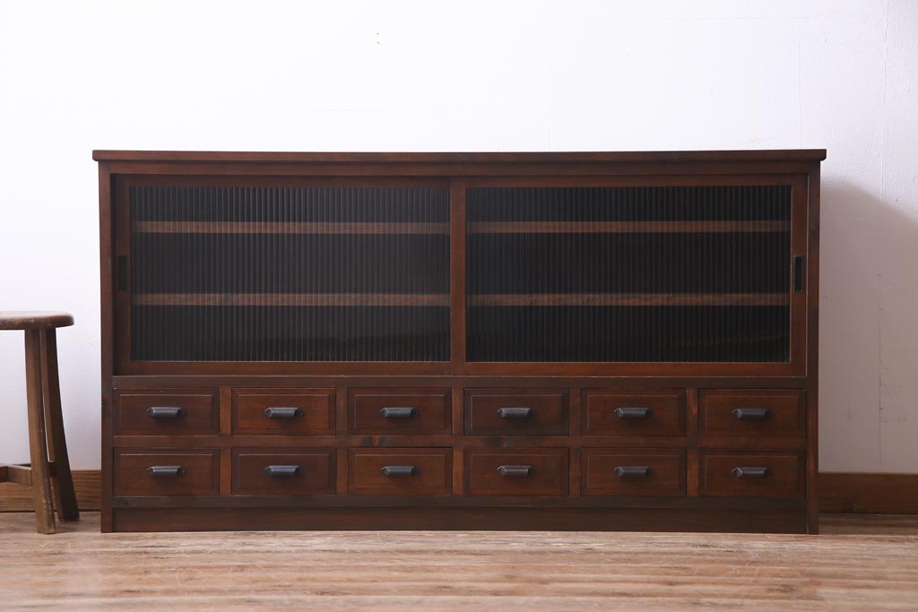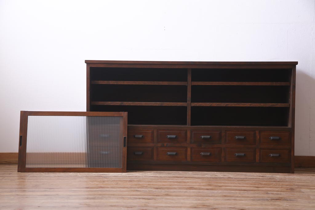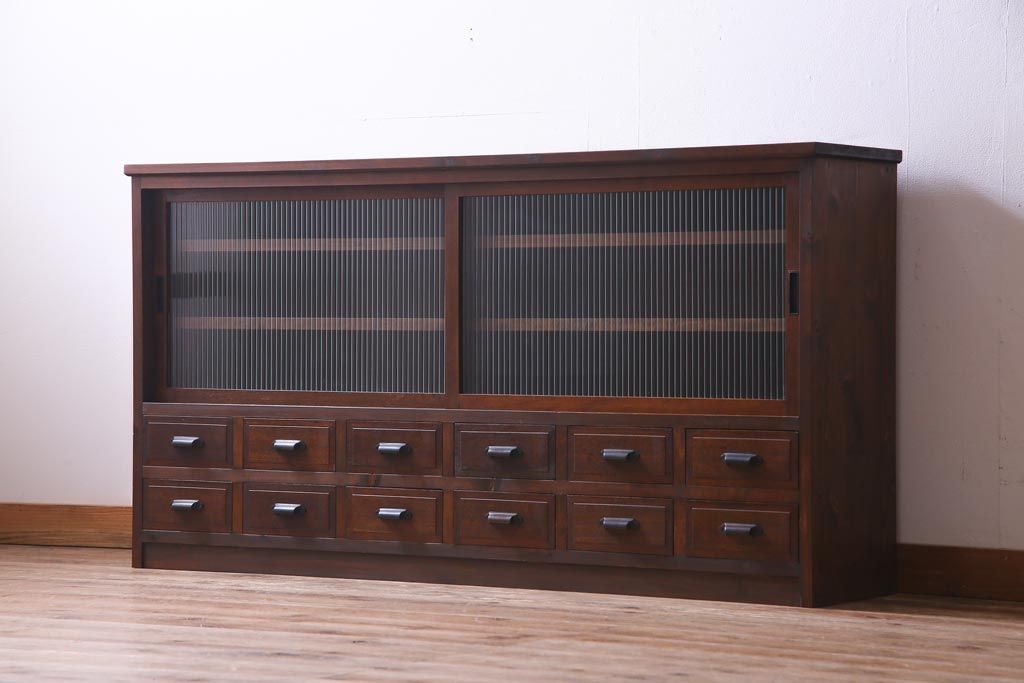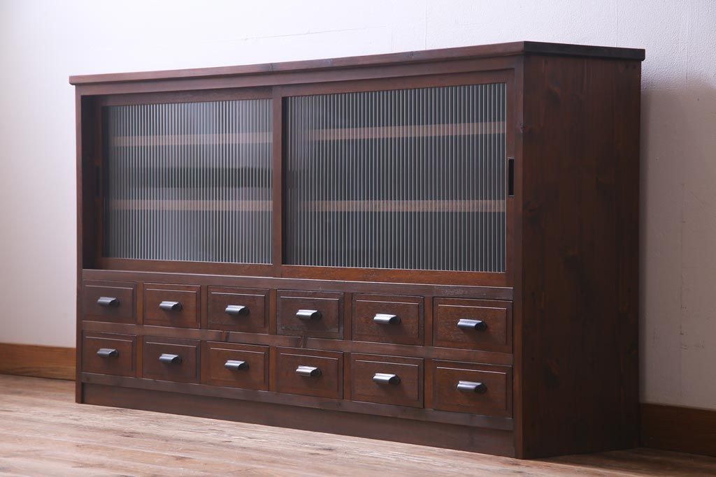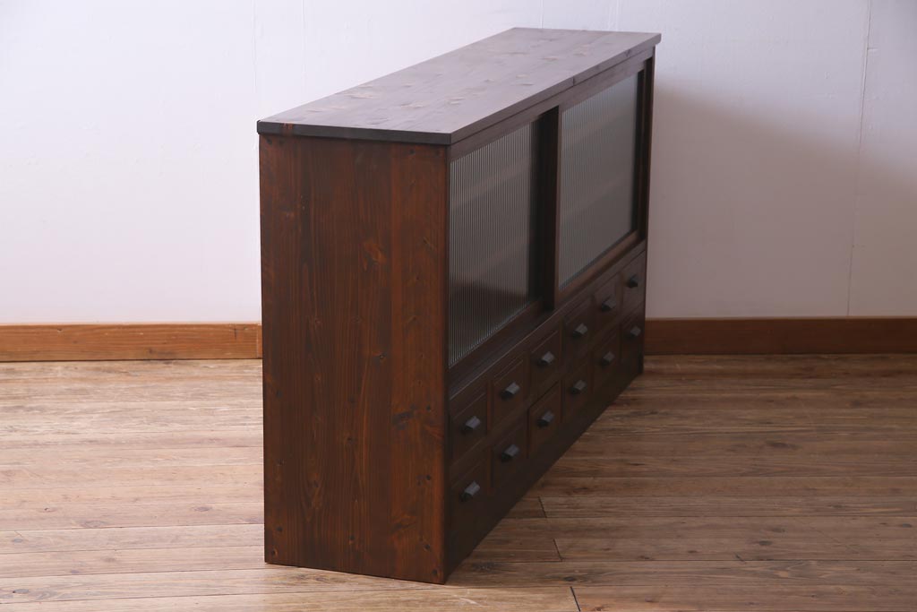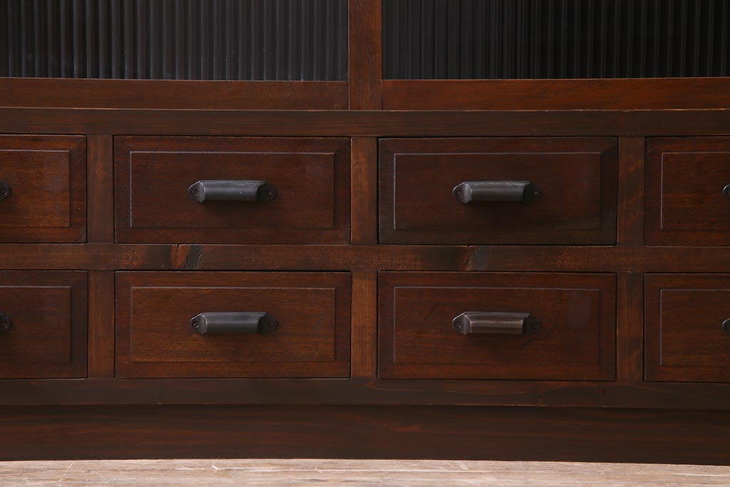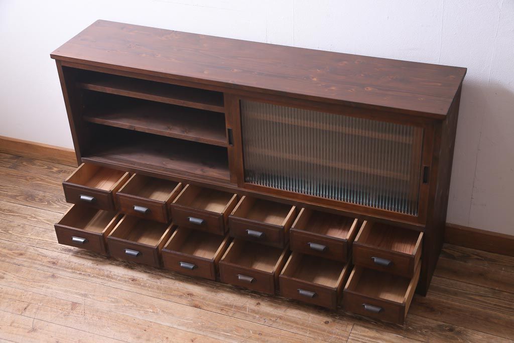 ラフジュ工房オリジナル リメイク家具 モールガラス入り 古い引き出しを使ったレトロな雰囲気の収納棚(リビングボード、食器棚)