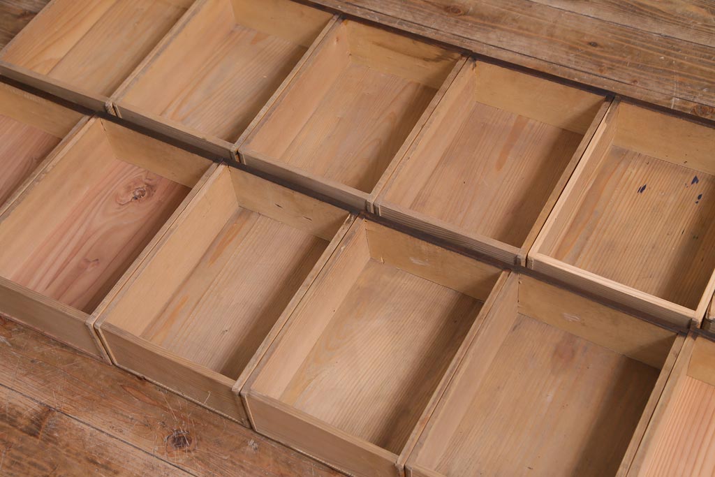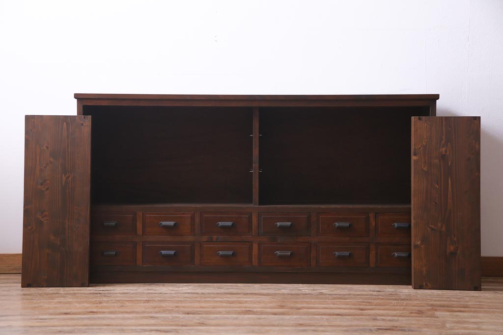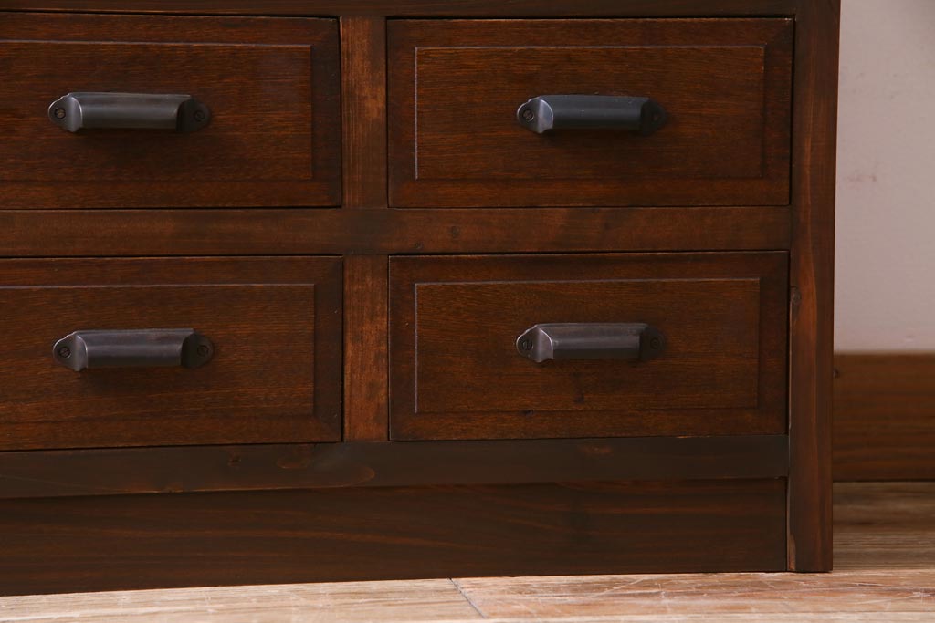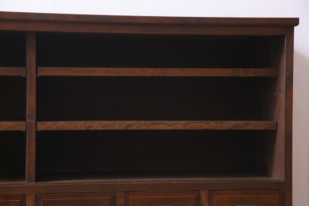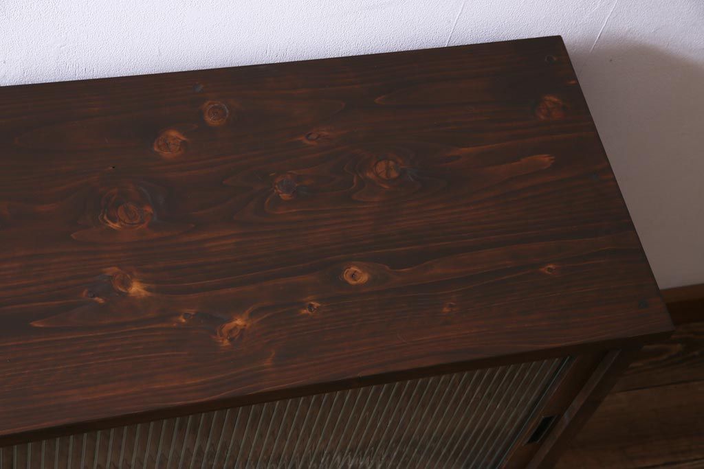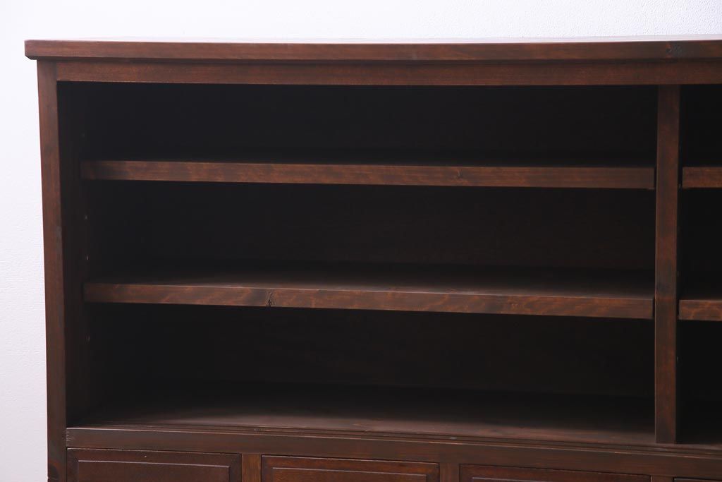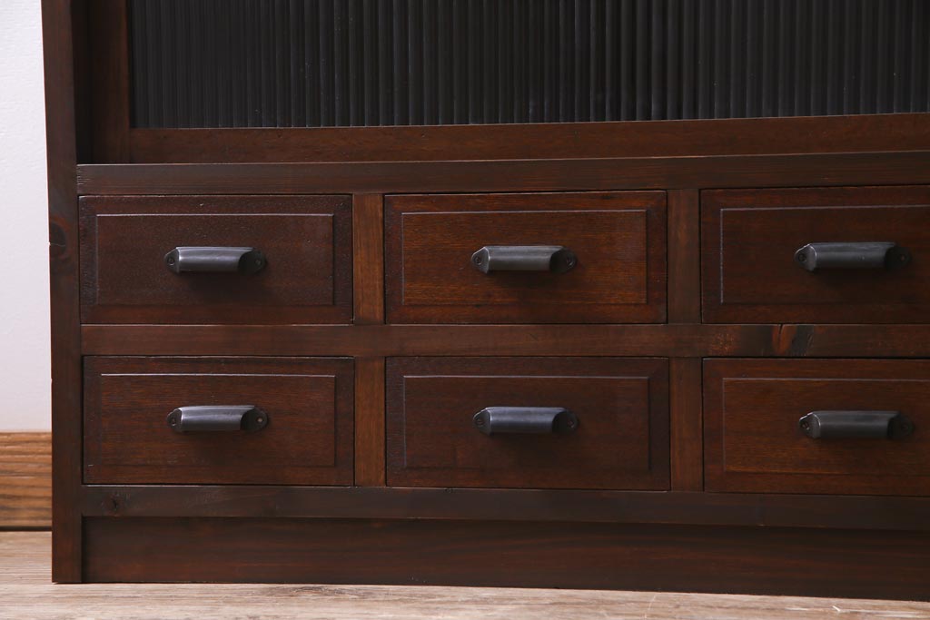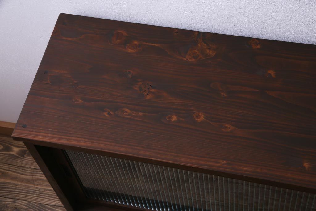ラフジュ工房オリジナル リメイク家具 モールガラス入り 古い引き出しを使ったレトロな雰囲気の収納棚(リビングボード、食器棚)