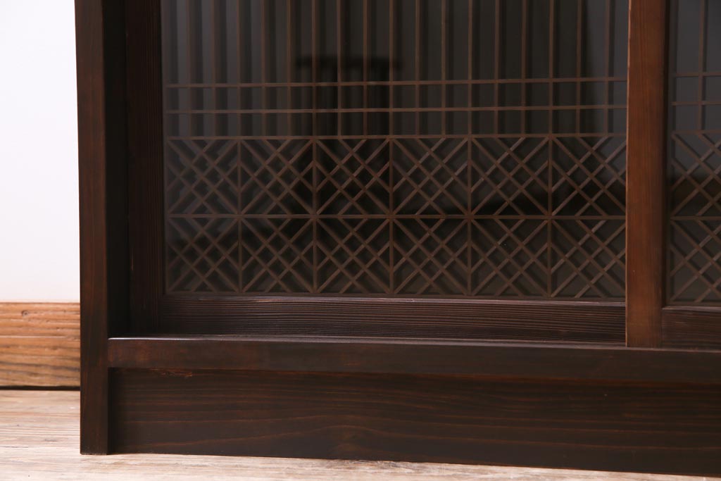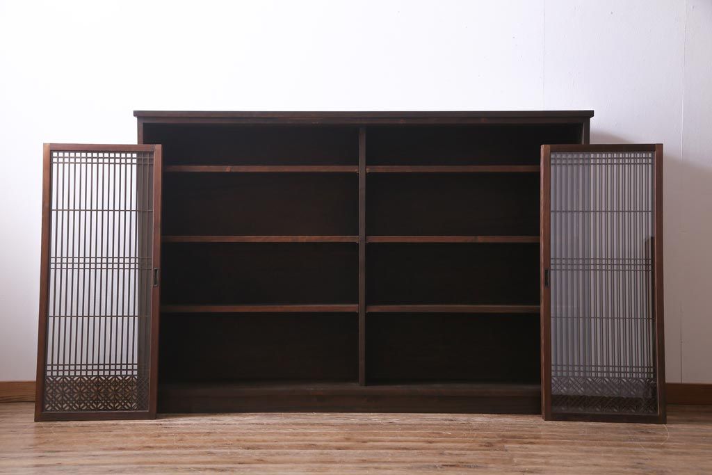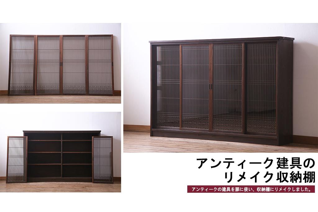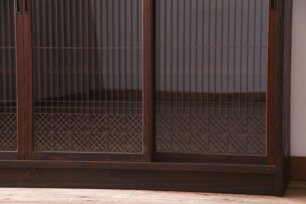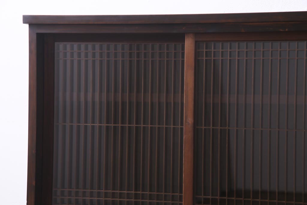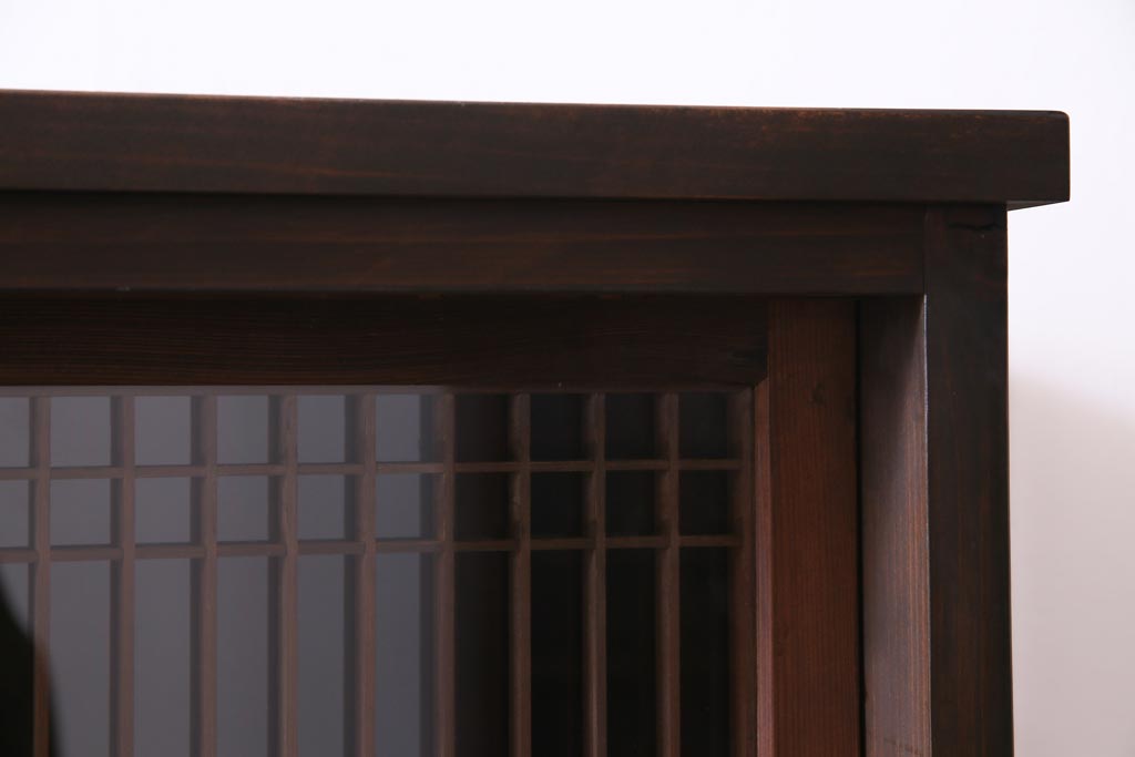 ラフジュ工房オリジナル リメイク 上品な佇まいが魅力的な書院戸を使ったガラス戸棚(収納棚、サイドボード)