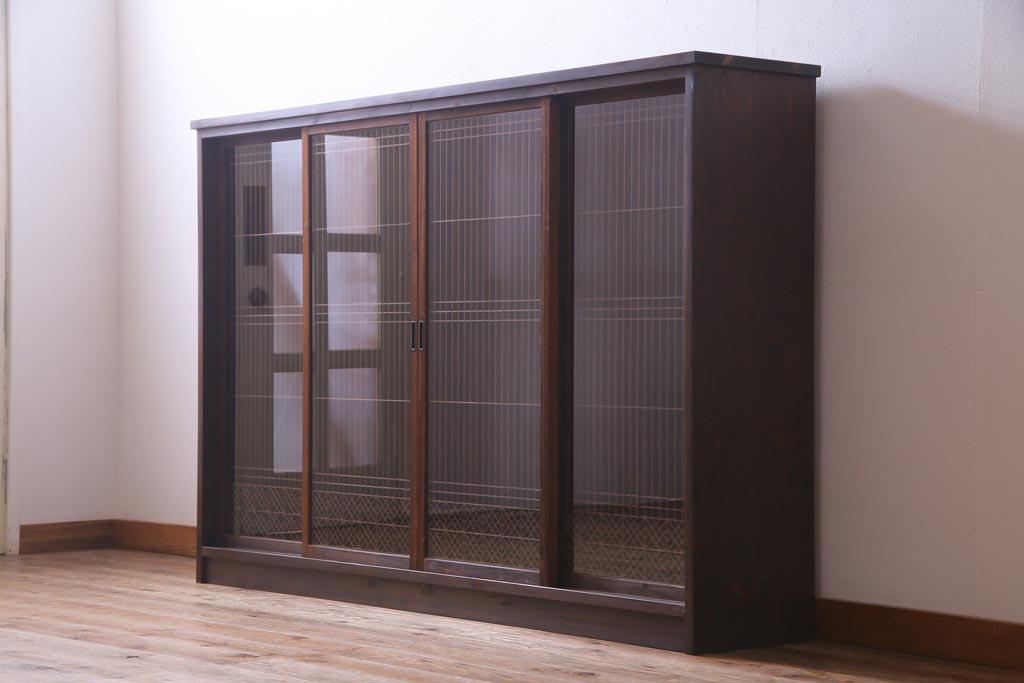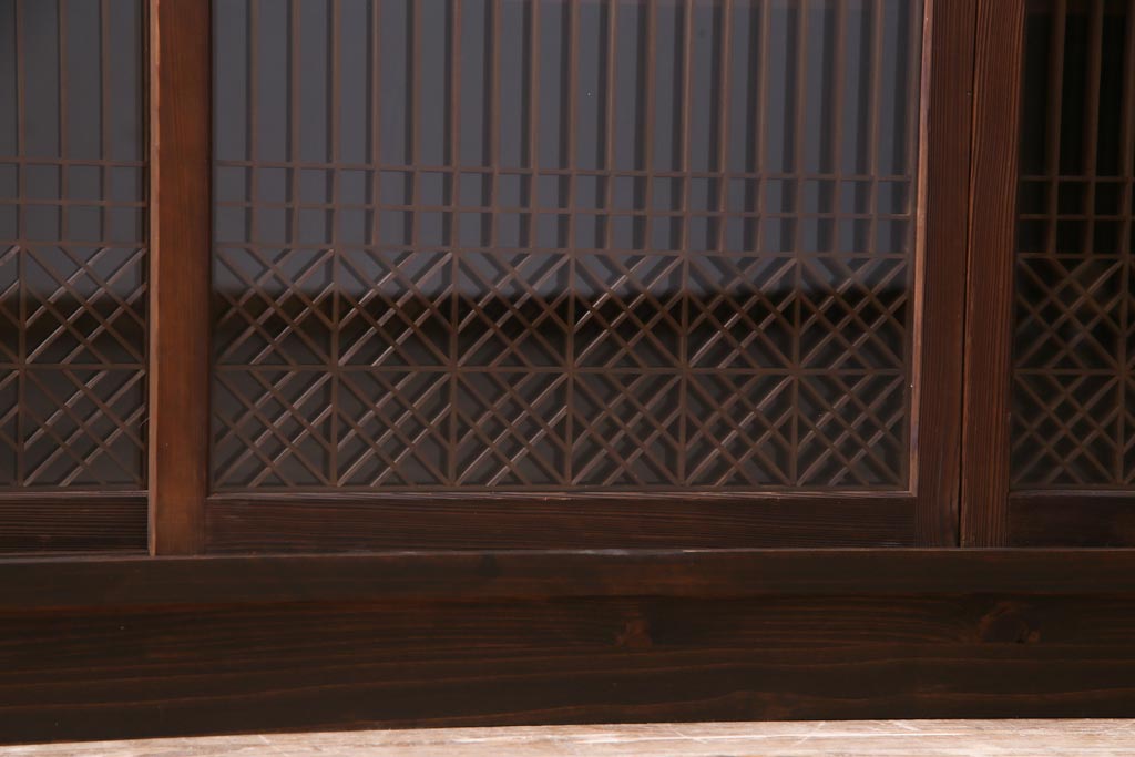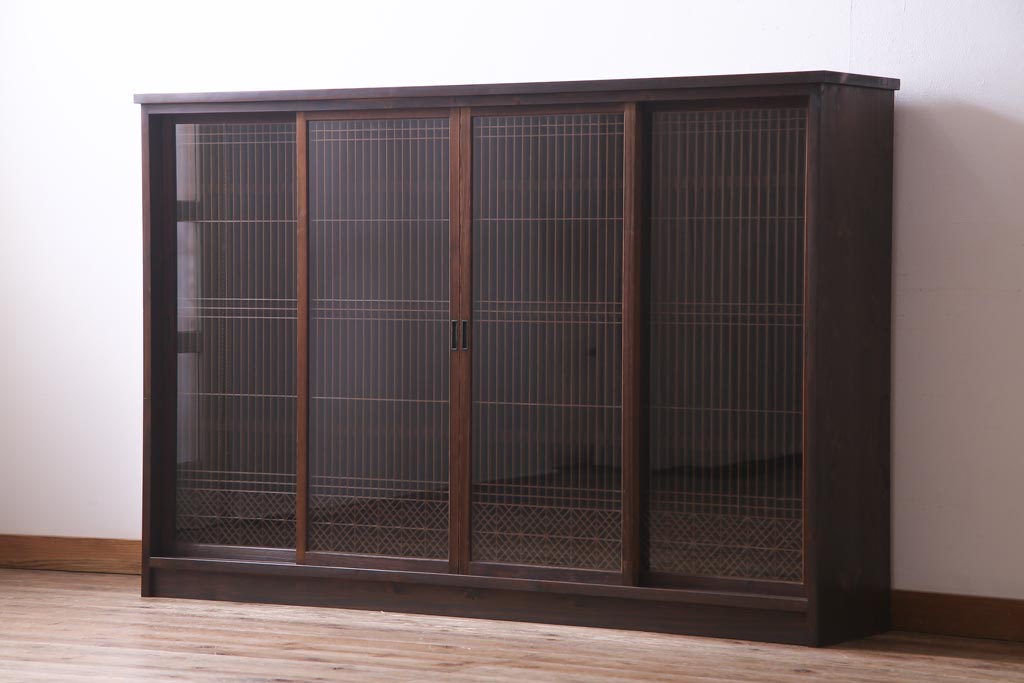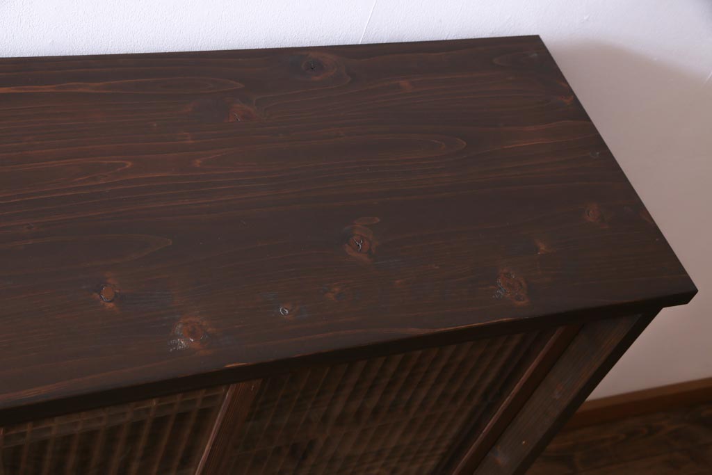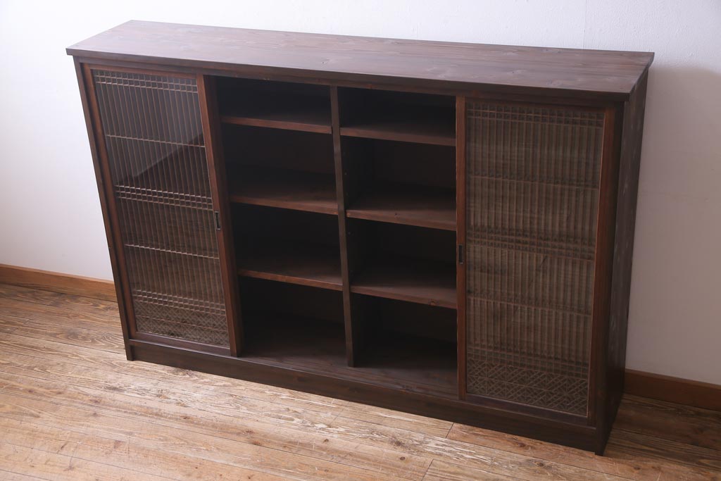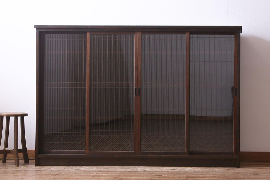 ラフジュ工房オリジナル リメイク 上品な佇まいが魅力的な書院戸を使ったガラス戸棚(収納棚、サイドボード)