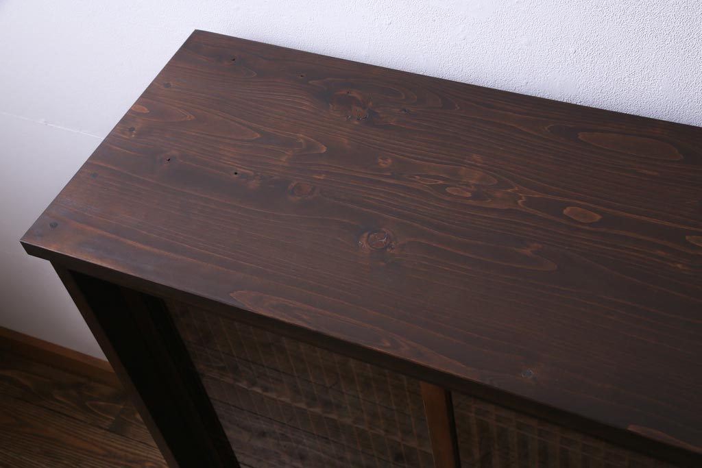 ラフジュ工房> キャビネット・戸棚> 下駄箱 > ラフジュ工房オリジナル リメイク 上品な佇まいが魅力的な書院戸を使ったガラス戸棚(収納棚、サイドボード)