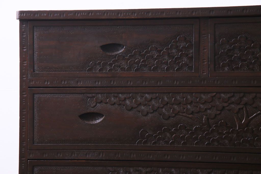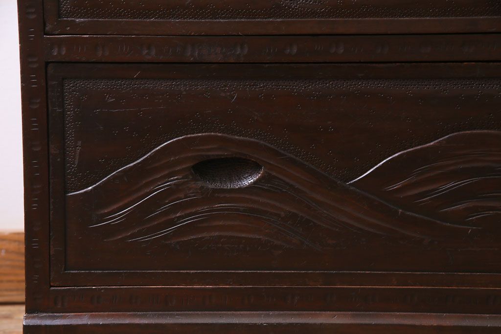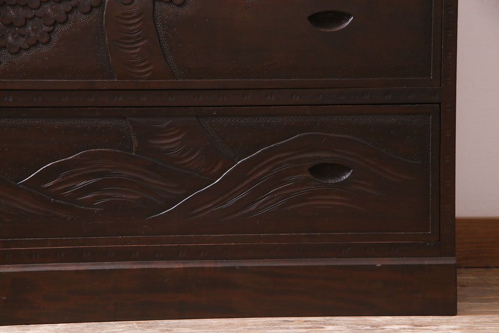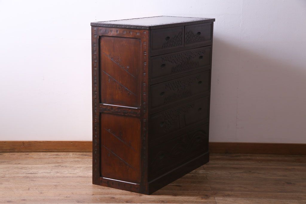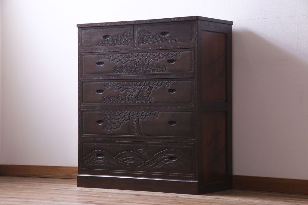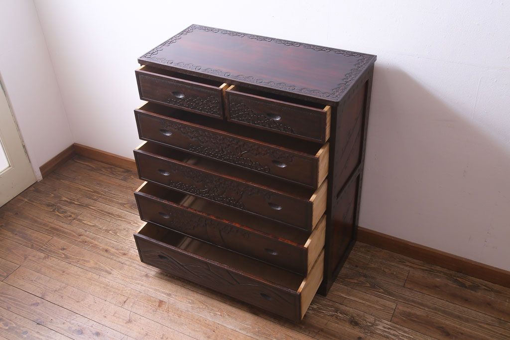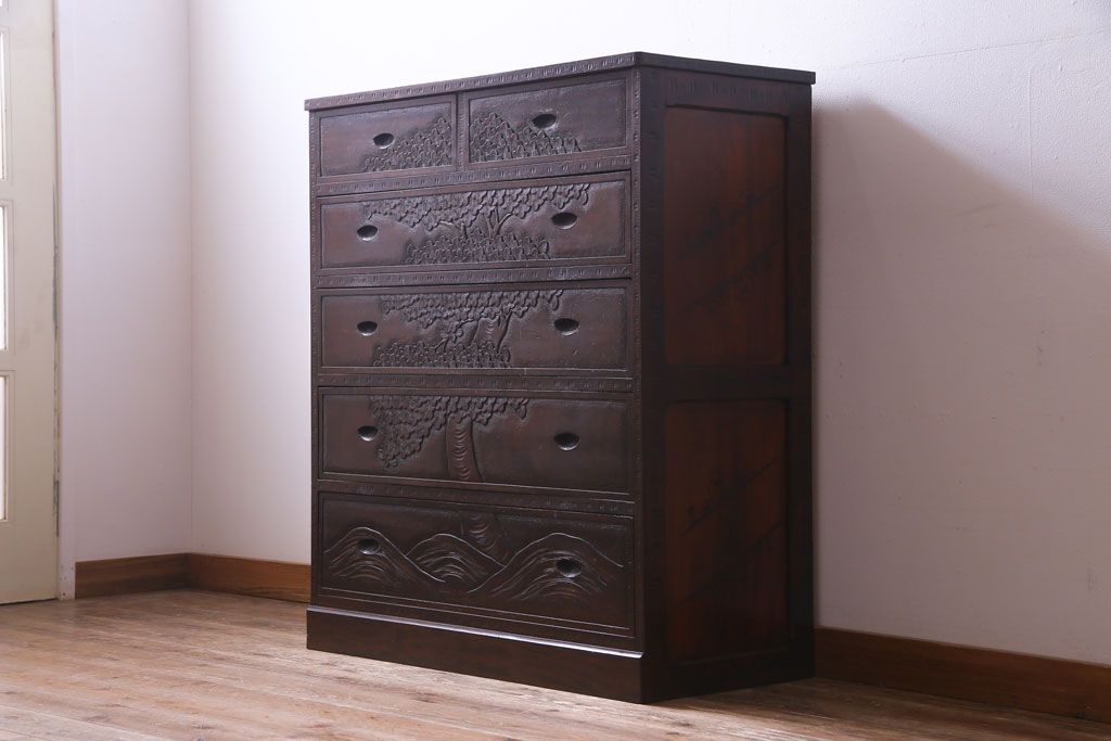 中古美品 伝統工芸 職人技が光る軽井沢彫りのチェスト(衣装箪笥、タンス)