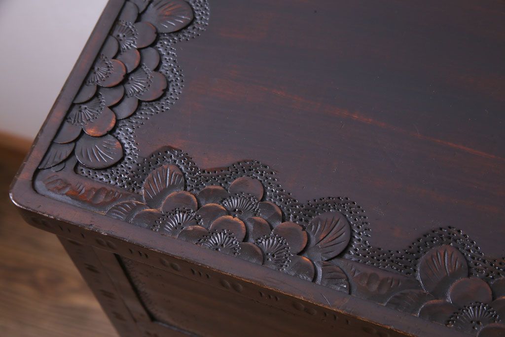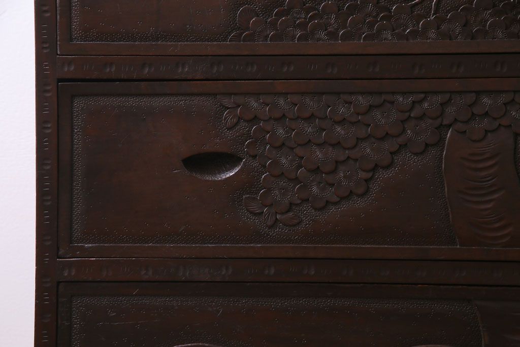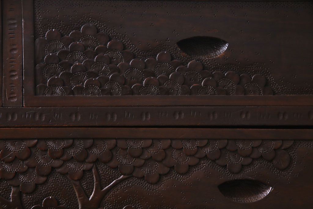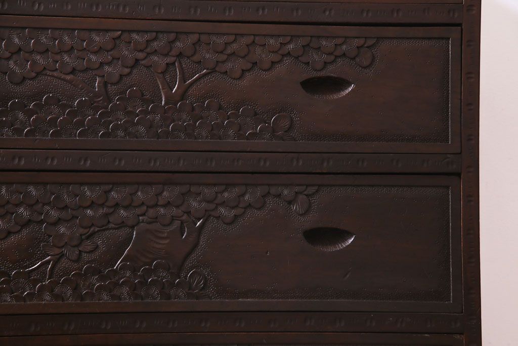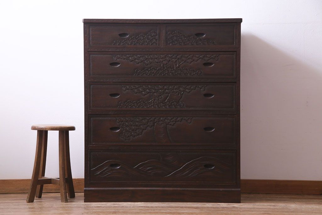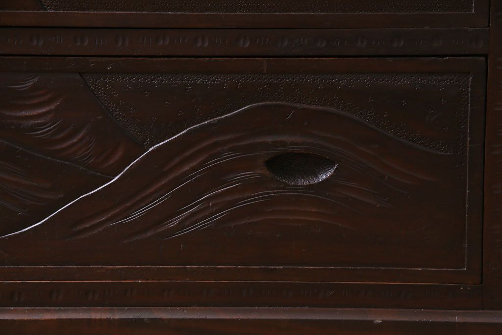 中古美品 伝統工芸 職人技が光る軽井沢彫りのチェスト(衣装箪笥、タンス)