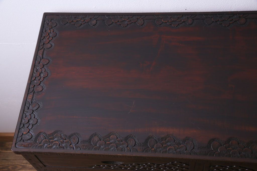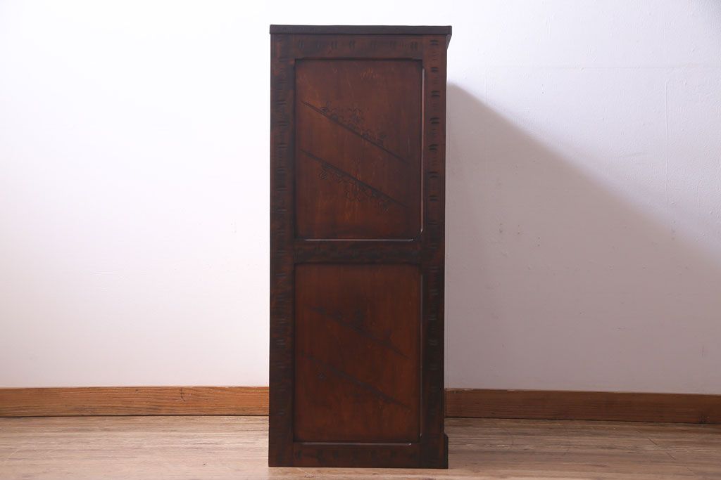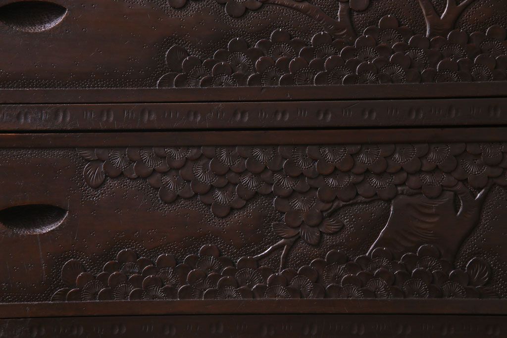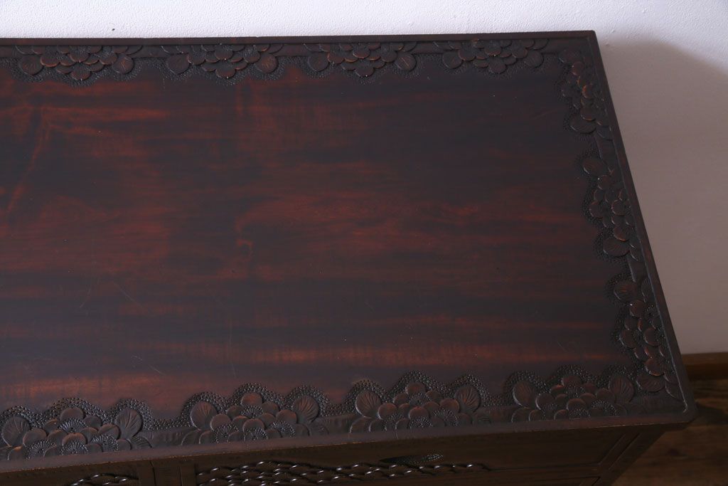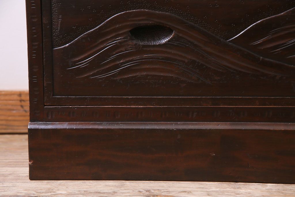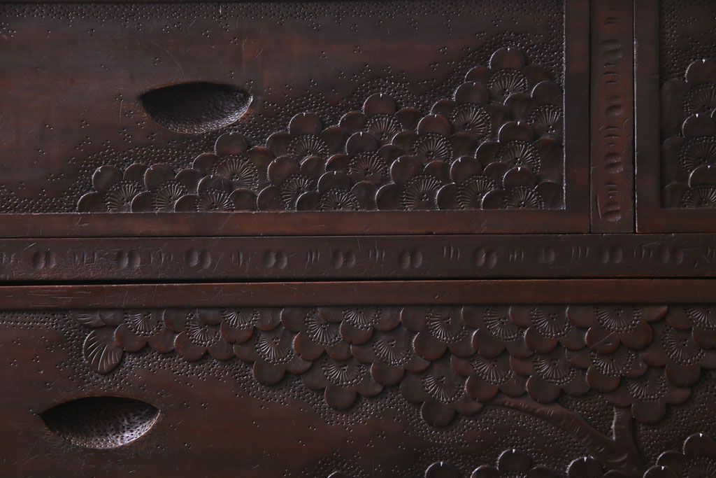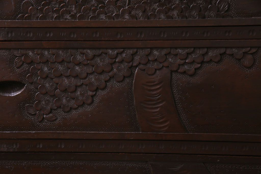 中古美品 伝統工芸 職人技が光る軽井沢彫りのチェスト(衣装箪笥、タンス)