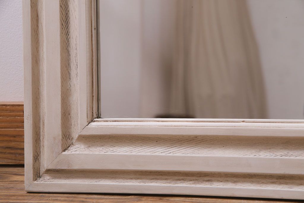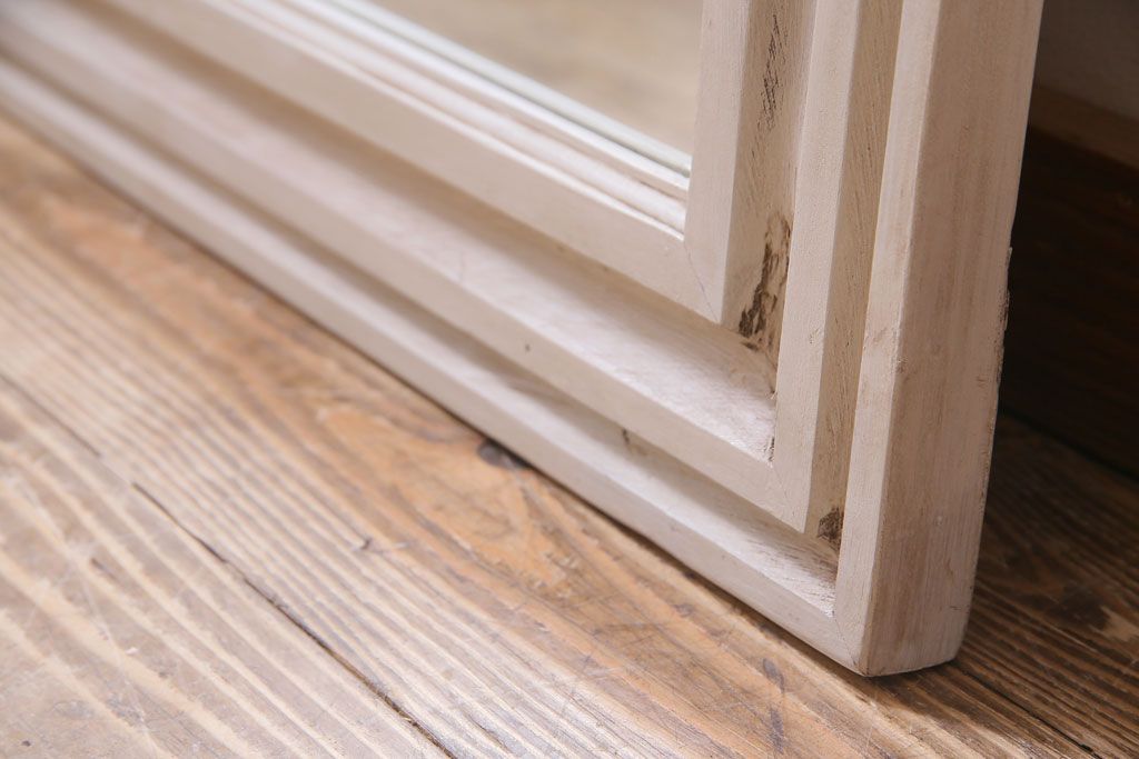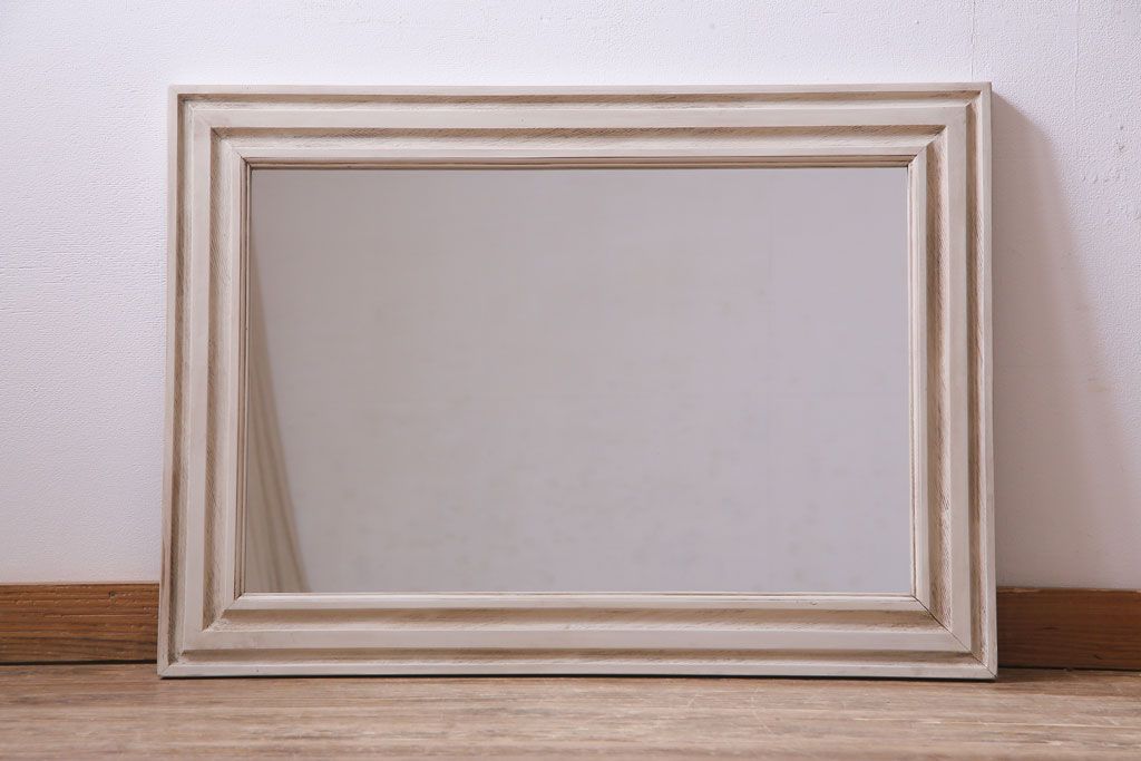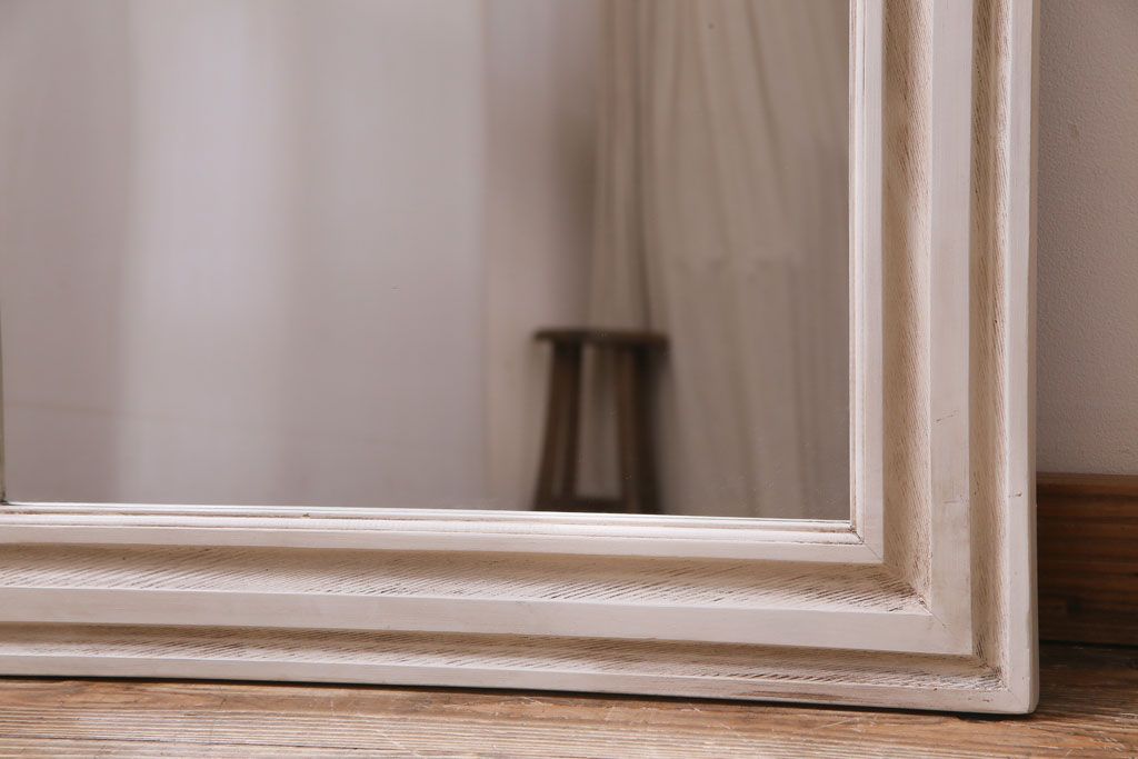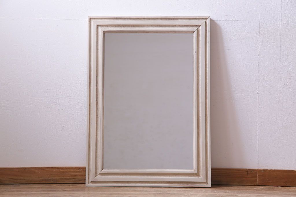 アンティーク雑貨 ラフジュ工房オリジナル 太めのフレームが目を惹くアンティークペイントのウォールミラー(鏡)