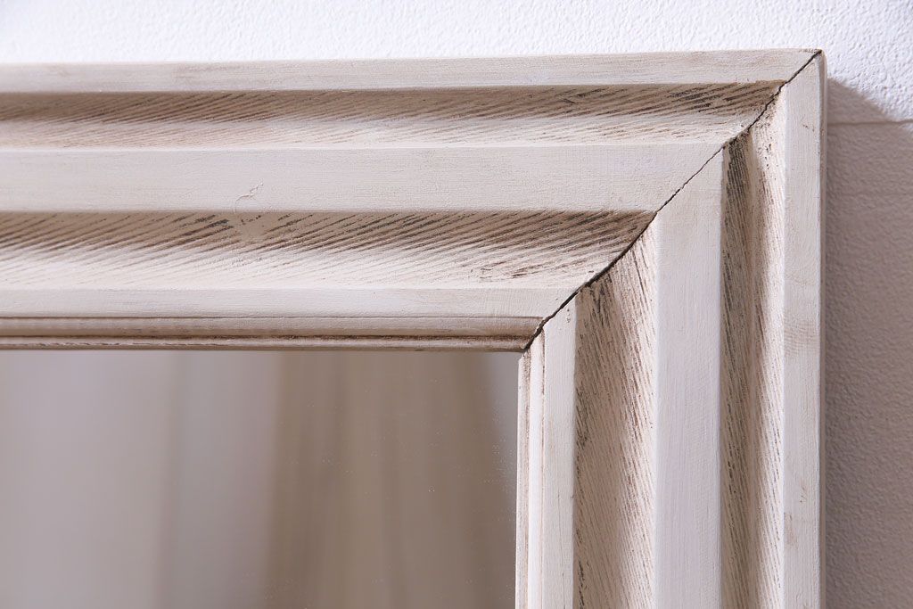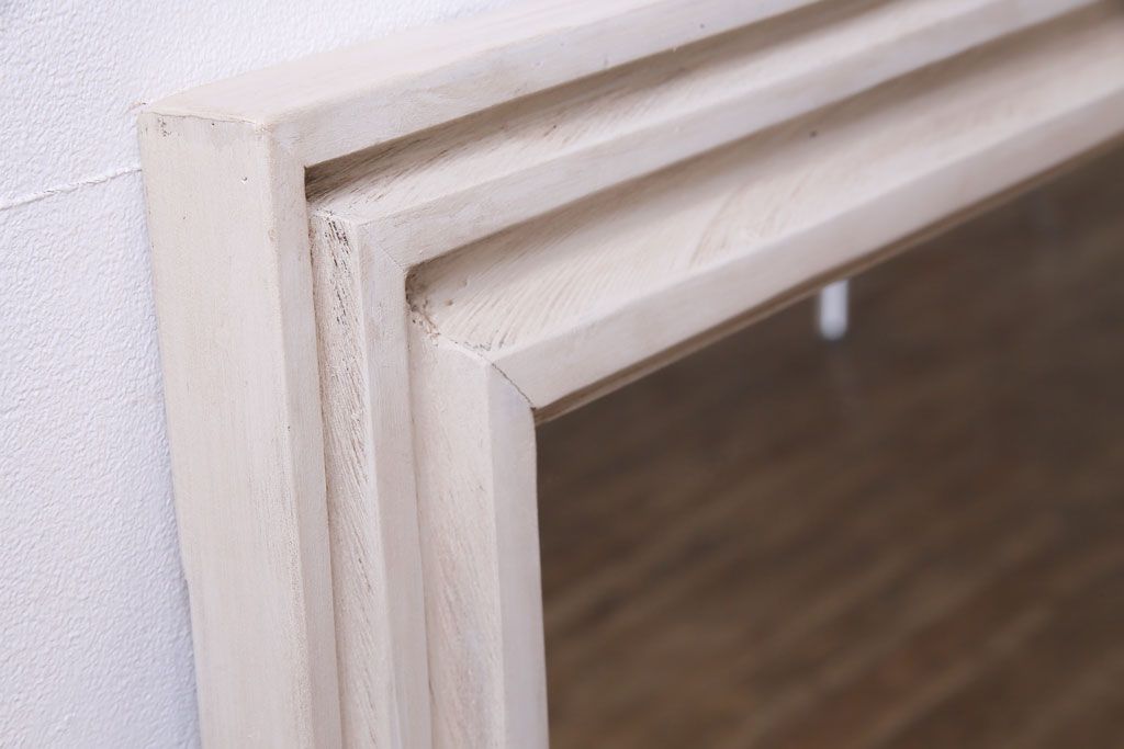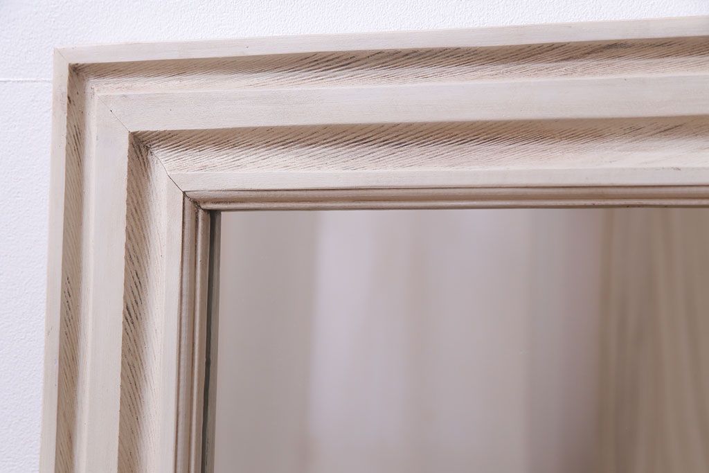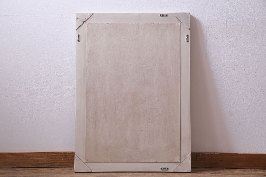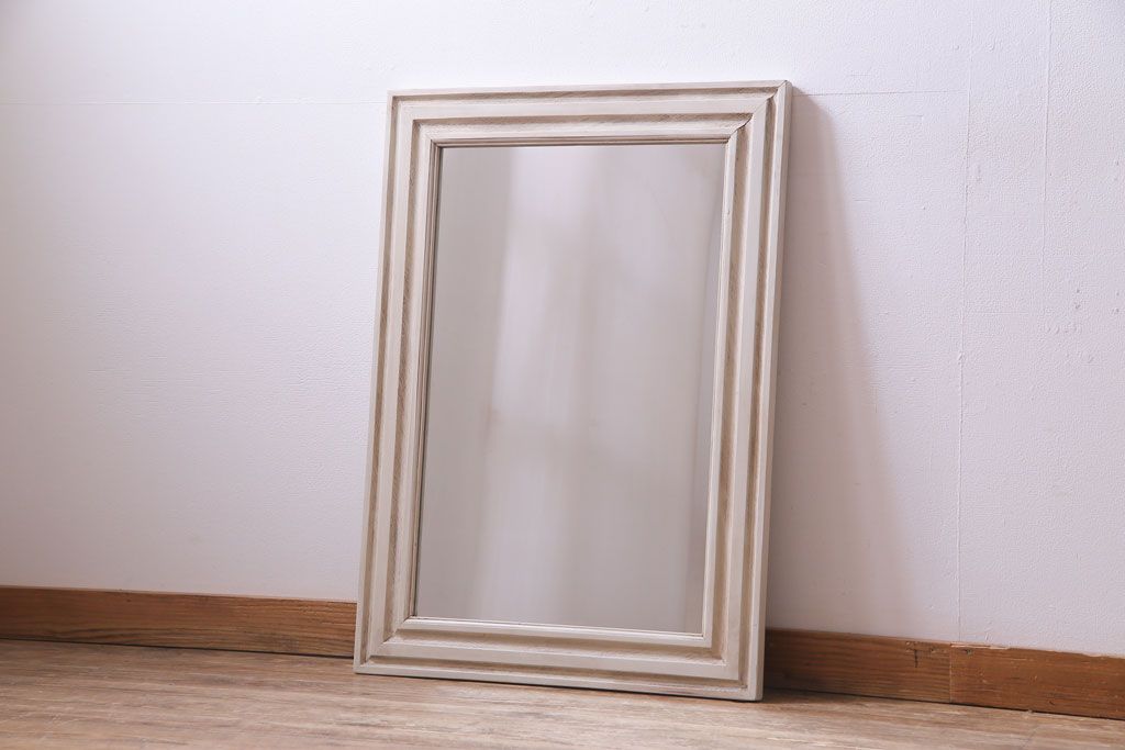 アンティーク雑貨 ラフジュ工房オリジナル 太めのフレームが目を惹くアンティークペイントのウォールミラー(鏡)