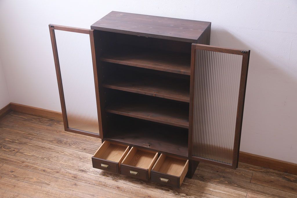 ラフジュ工房オリジナル 古いパーツを利用したレトロなブックケース(本箱、キャビネット、収納棚)
