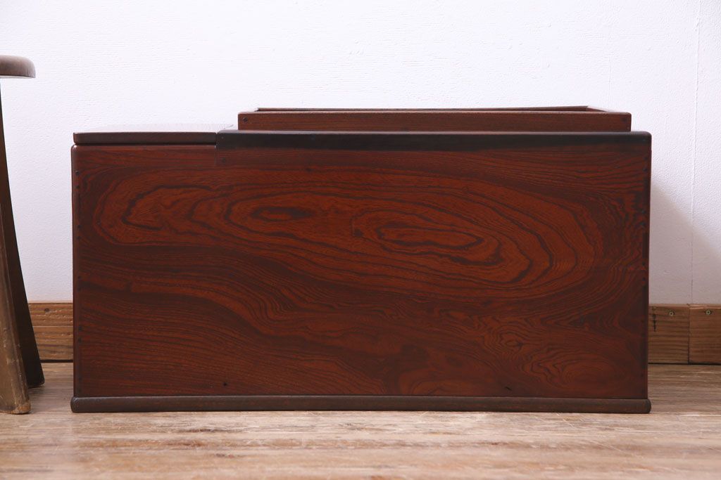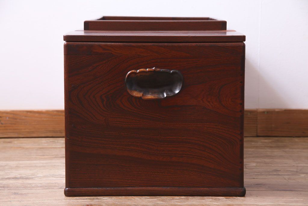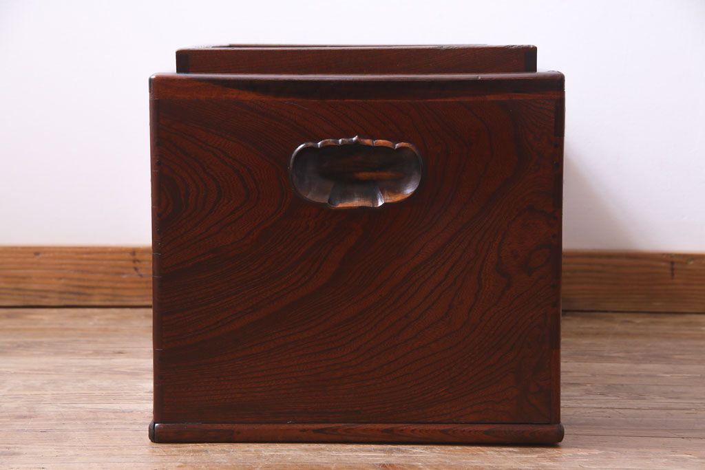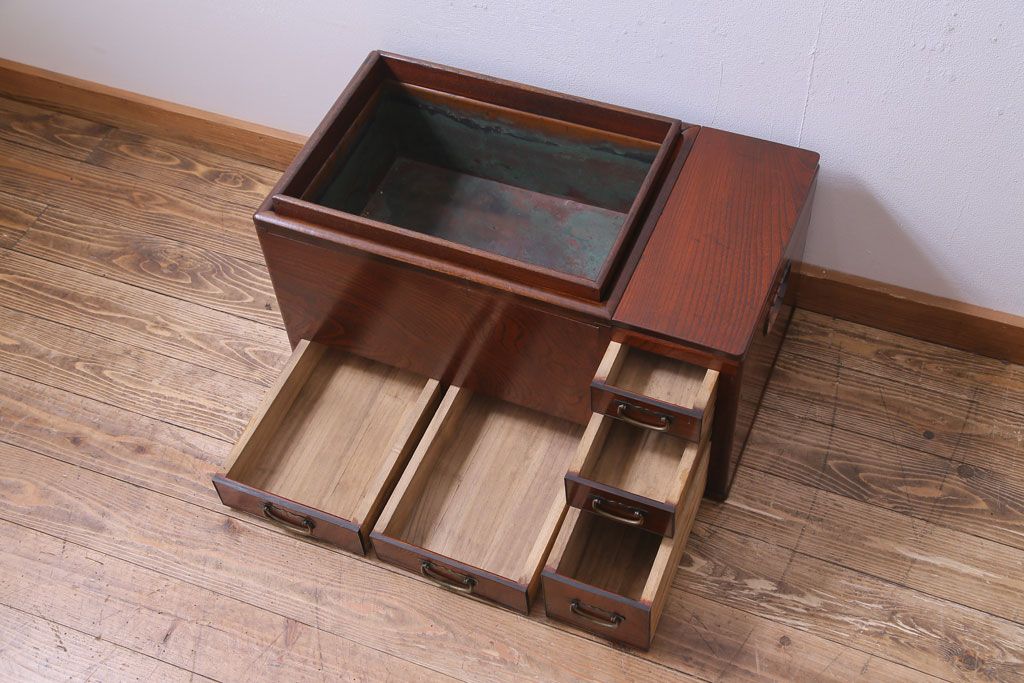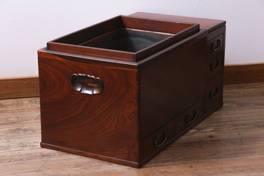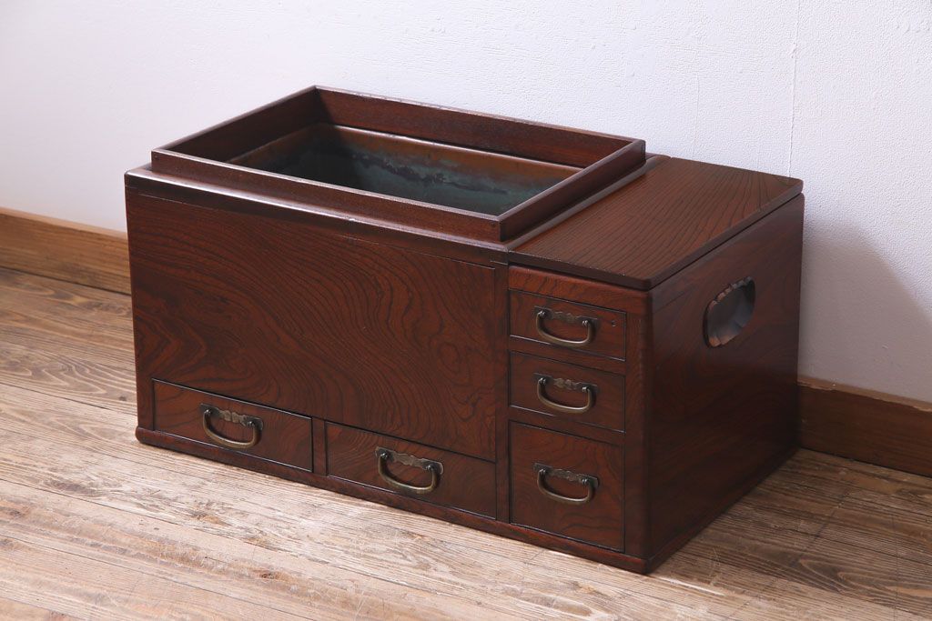 火鉢> 木製火鉢 > アンティーク雑貨 和製アンティーク 猫板付き 漆塗り 高級な和の雰囲気が漂うケヤキ材製の長火鉢(木製火鉢)