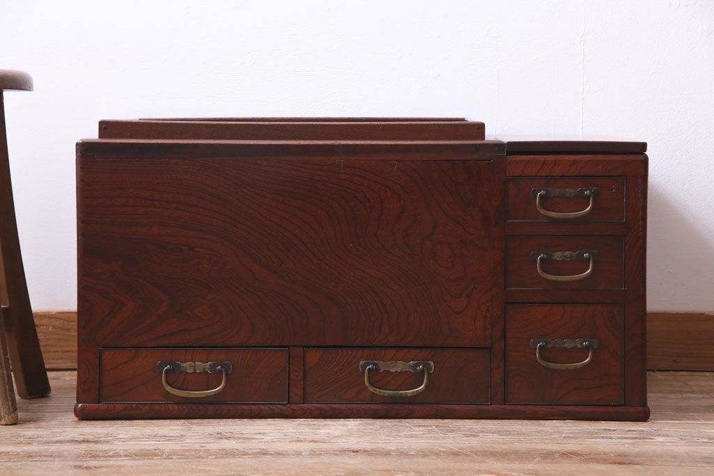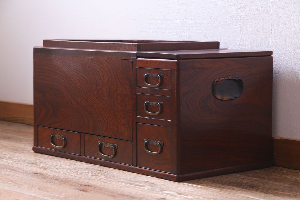 アンティーク雑貨 和製アンティーク 猫板付き 漆塗り 高級な和の雰囲気が漂うケヤキ材製の長火鉢(木製火鉢)