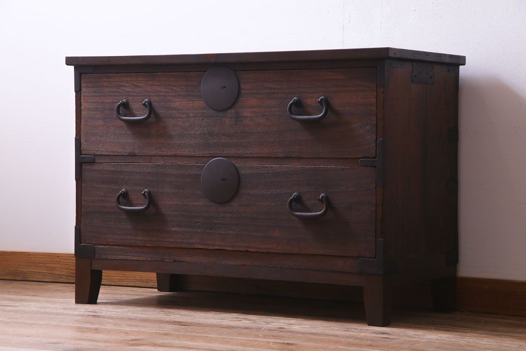 和箪笥 > リメイク家具 桐材 素朴な佇まいの脚付き箪笥ローボード(チェスト、引き出し、桐箪笥、桐たんす)