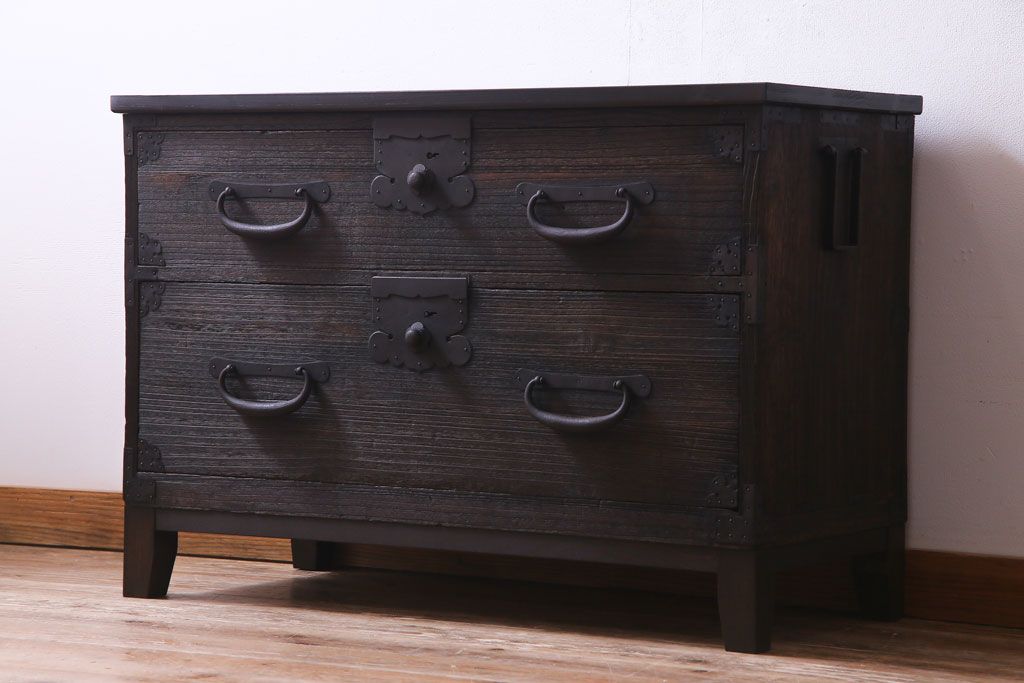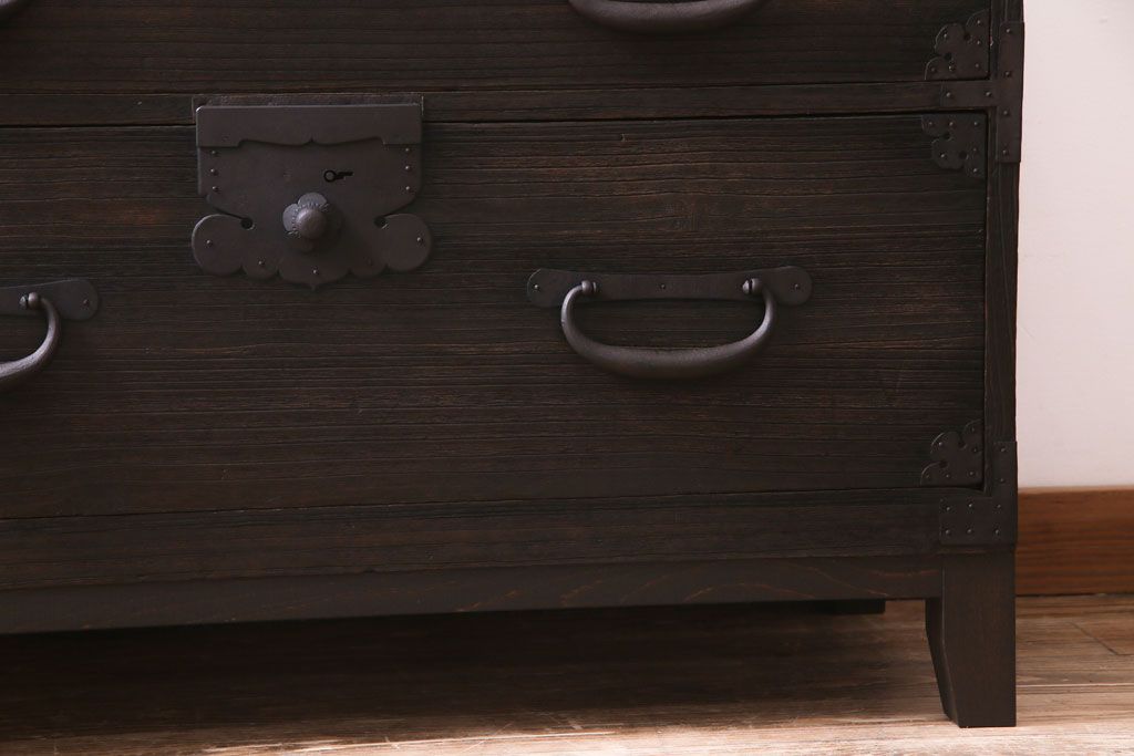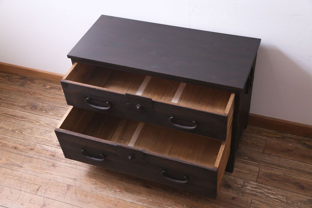 和箪笥> 衣装箪笥 > リメイク家具 明治期 渋い色味が魅力的な桐材製の箪笥ローボード(チェスト、引き出し、桐箪笥、桐たんす)
