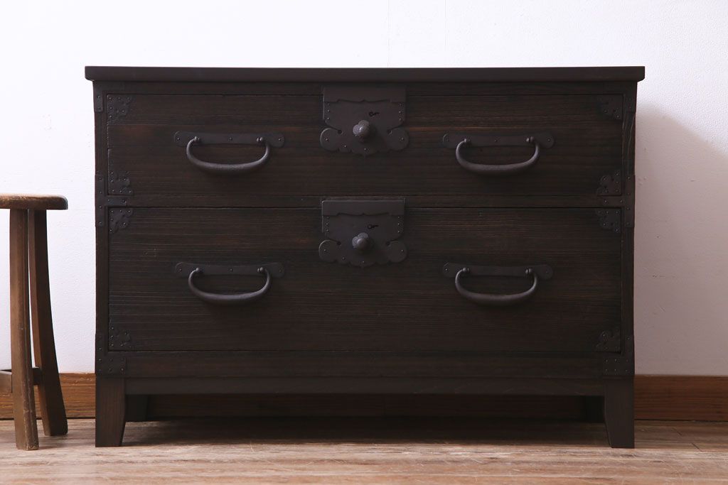 和箪笥 > リメイク家具 明治期 渋い色味が魅力的な桐材製の箪笥ローボード(チェスト、引き出し、桐箪笥、桐たんす)