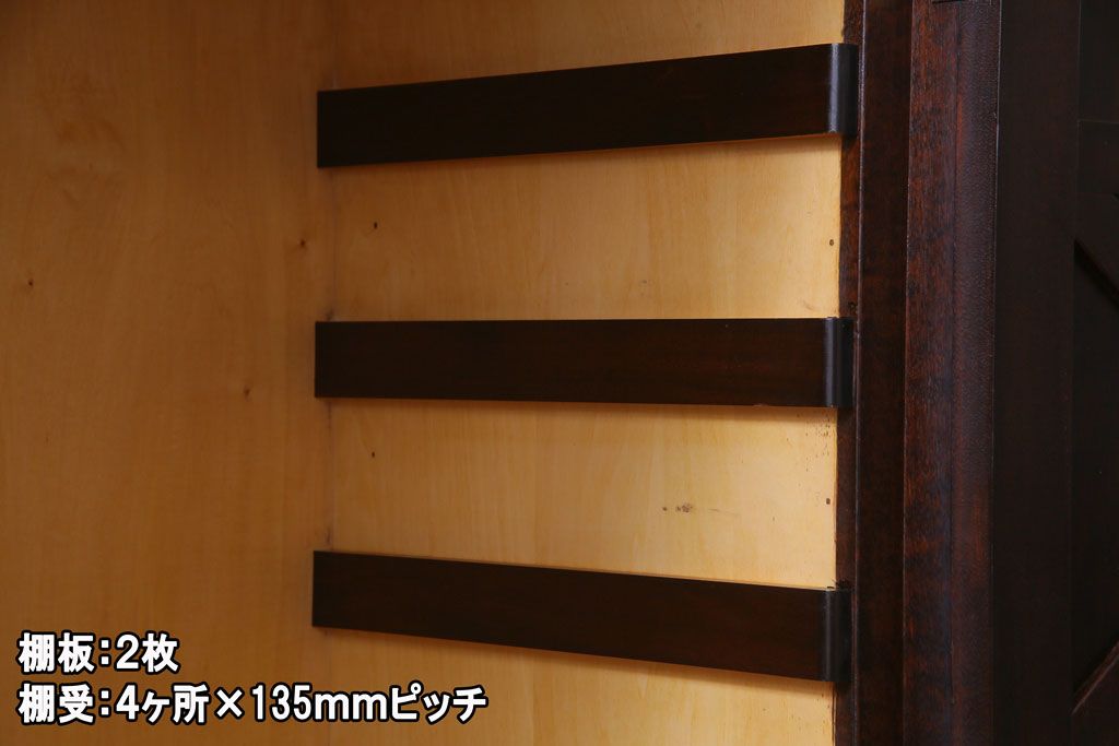 本来は戸棚内に衣装盆のみ付属するお品ですが、当店にて取り替え可能な棚板を2枚お付けします。