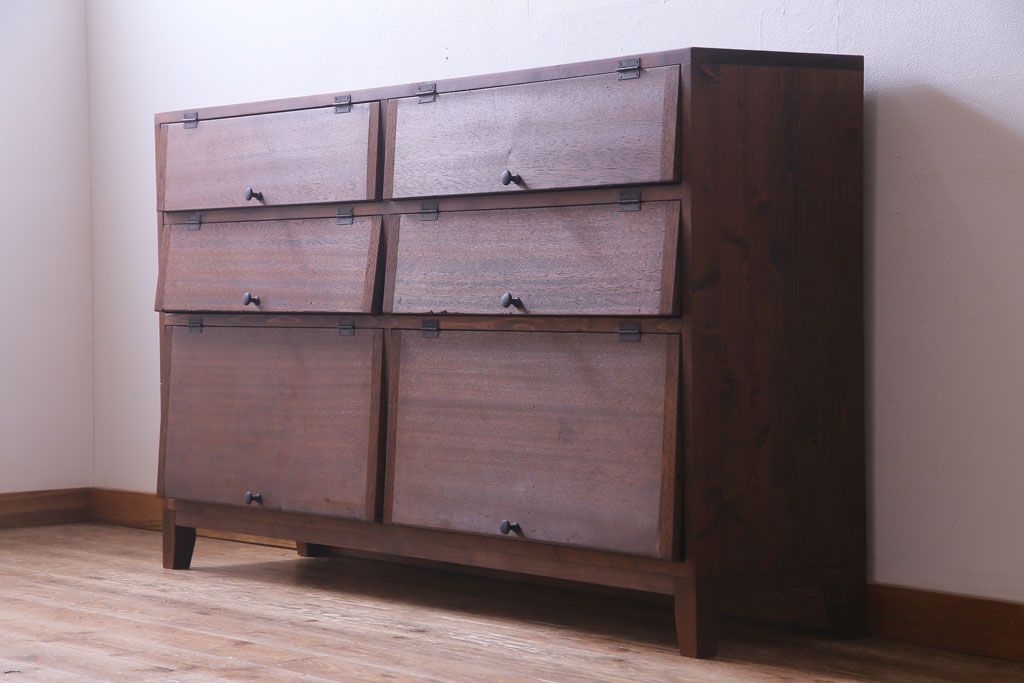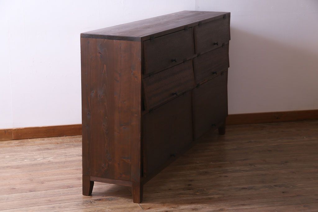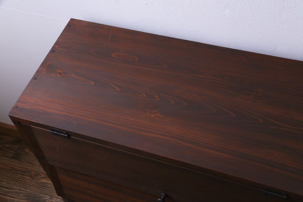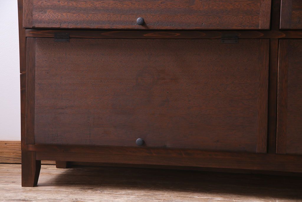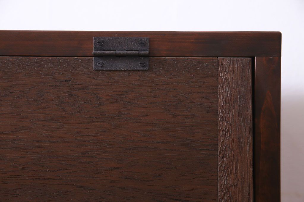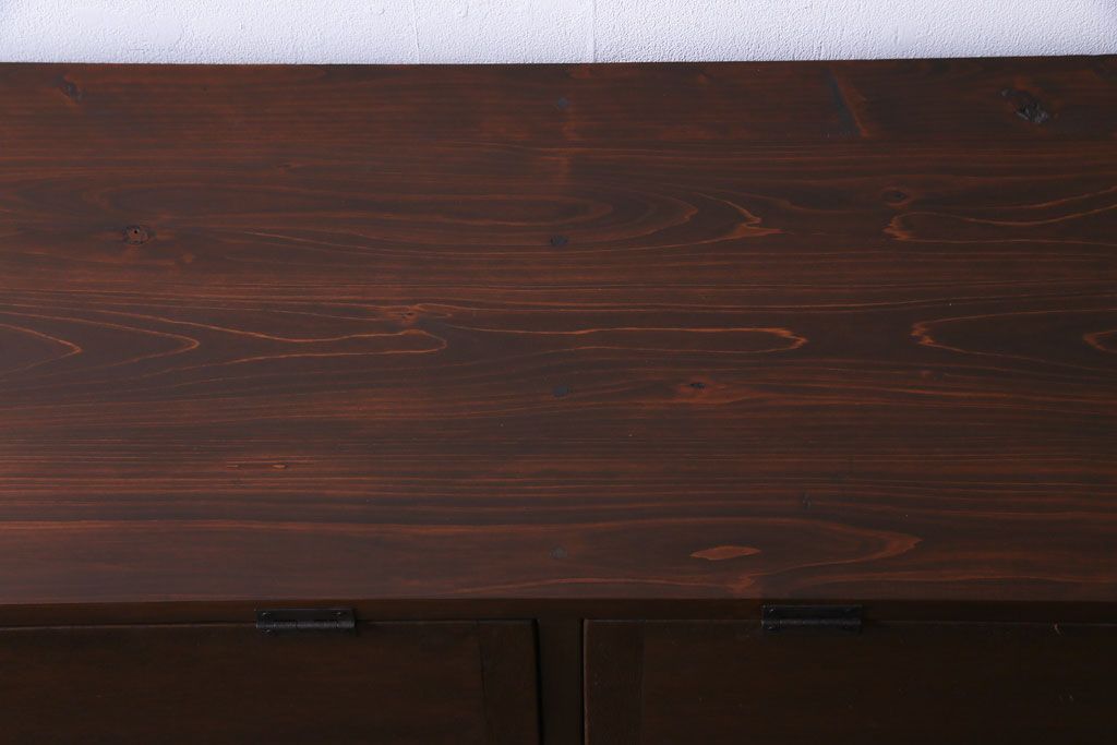 ラフジュ工房オリジナル ラワンの古材をリメイクしたパタパタ扉の脚付き収納棚(サイドボード)