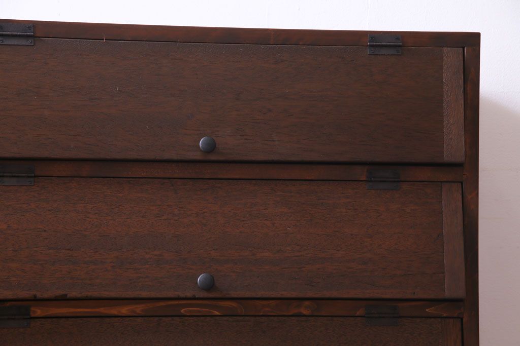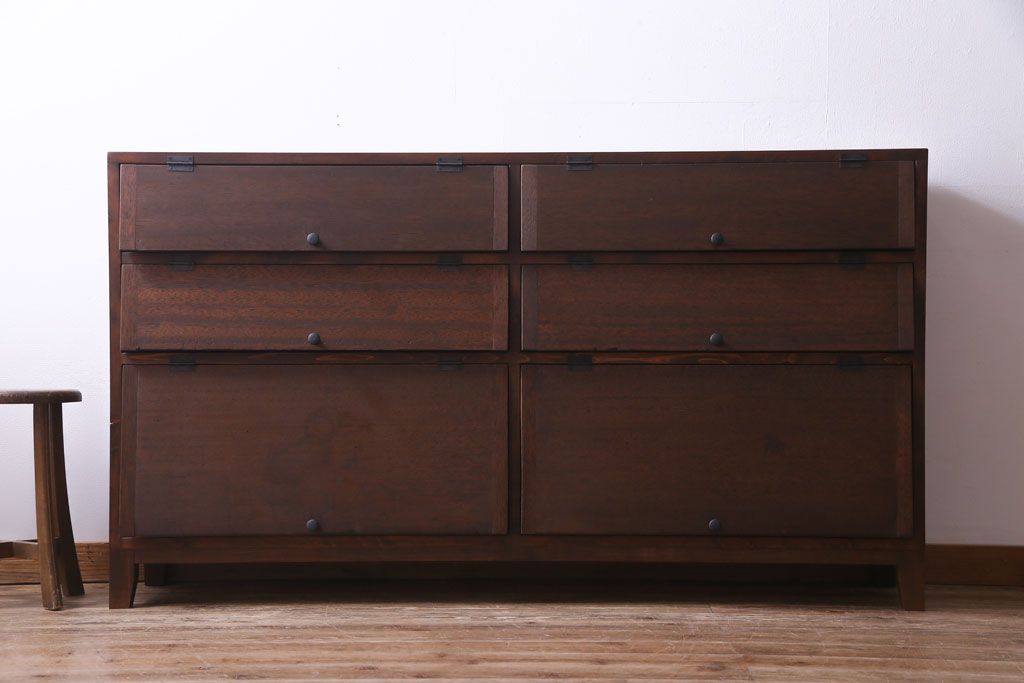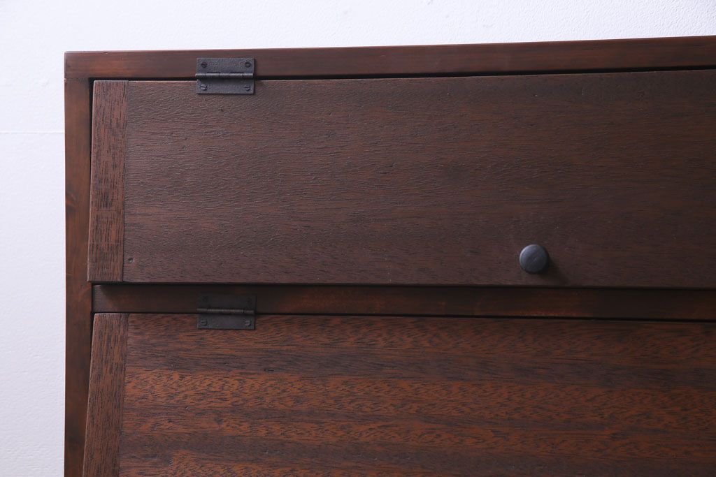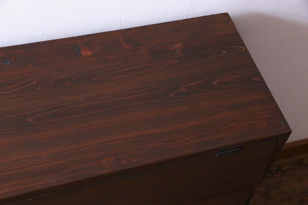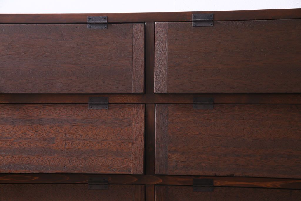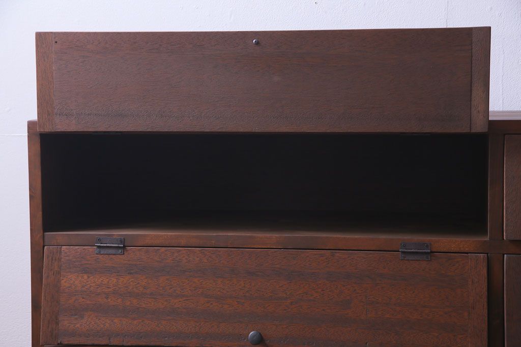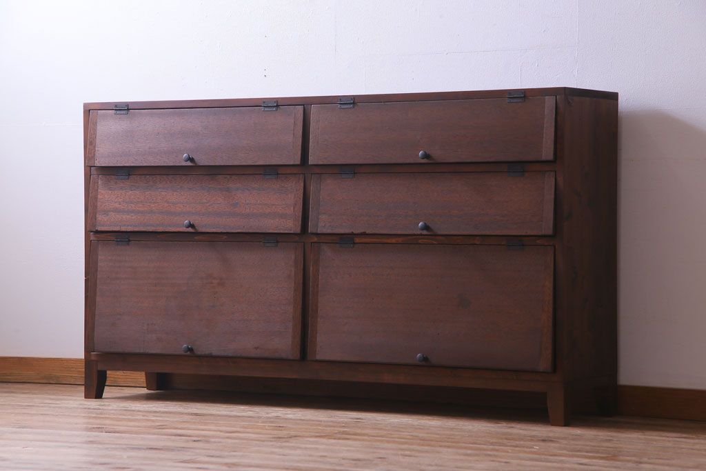ラフジュ工房オリジナル ラワンの古材をリメイクしたパタパタ扉の脚付き収納棚(サイドボード)