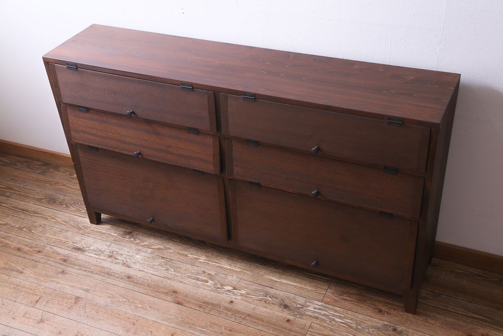 ラフジュ工房オリジナル ラワンの古材をリメイクしたパタパタ扉の脚付き収納棚(サイドボード)です。