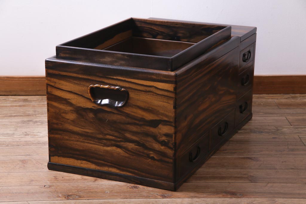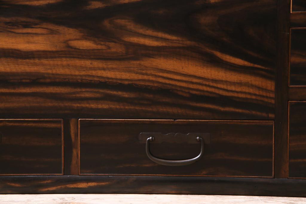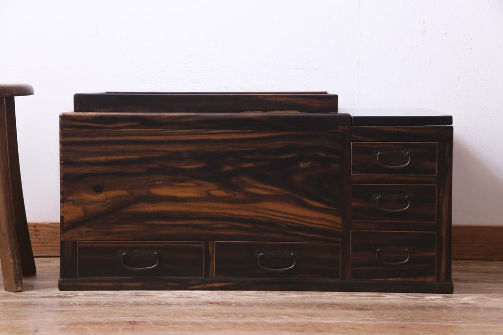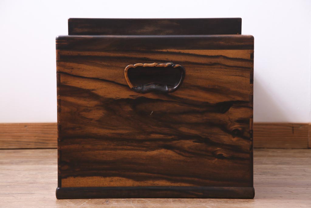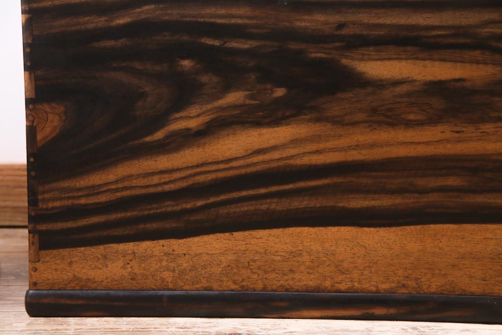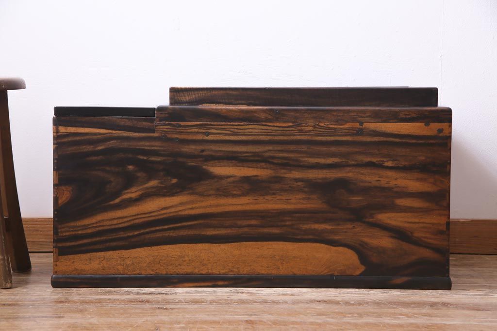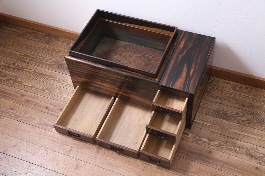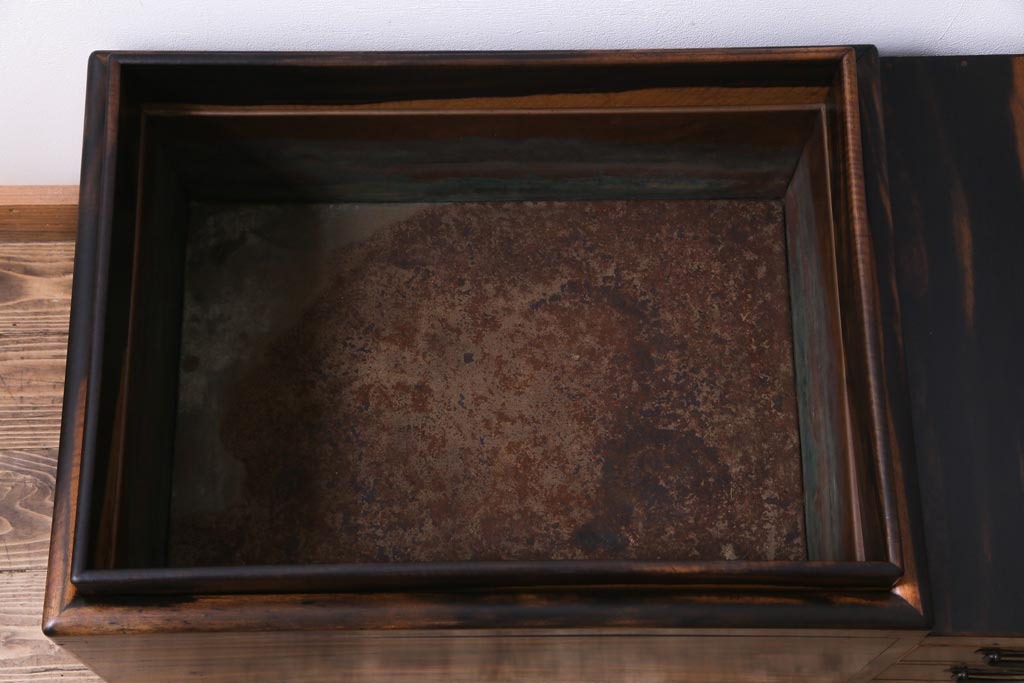 アンティーク雑貨 和製アンティーク 黒柿の無垢材を贅沢に使用した高級感漂う長火鉢(木製火鉢)