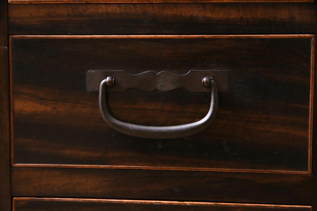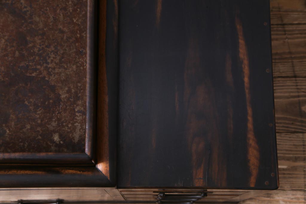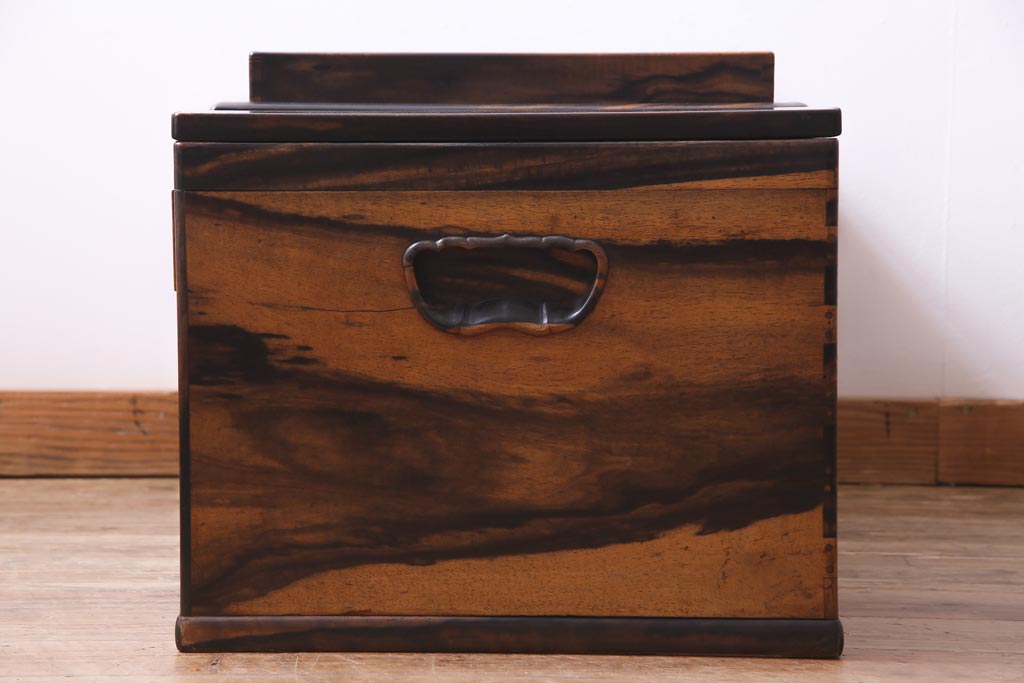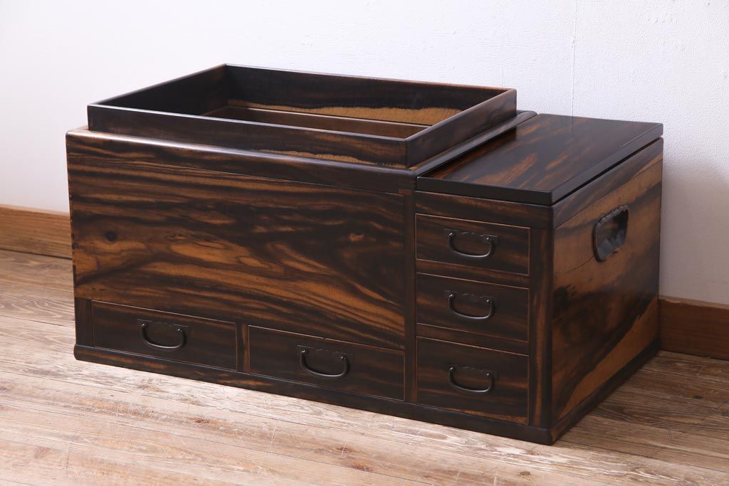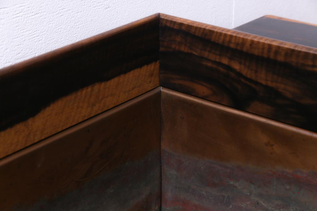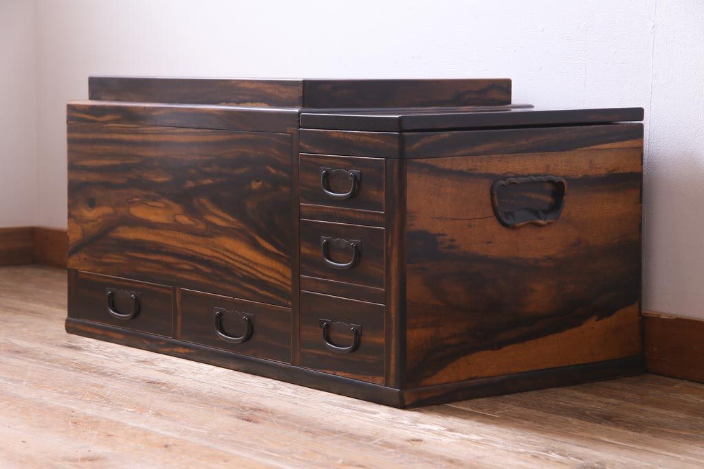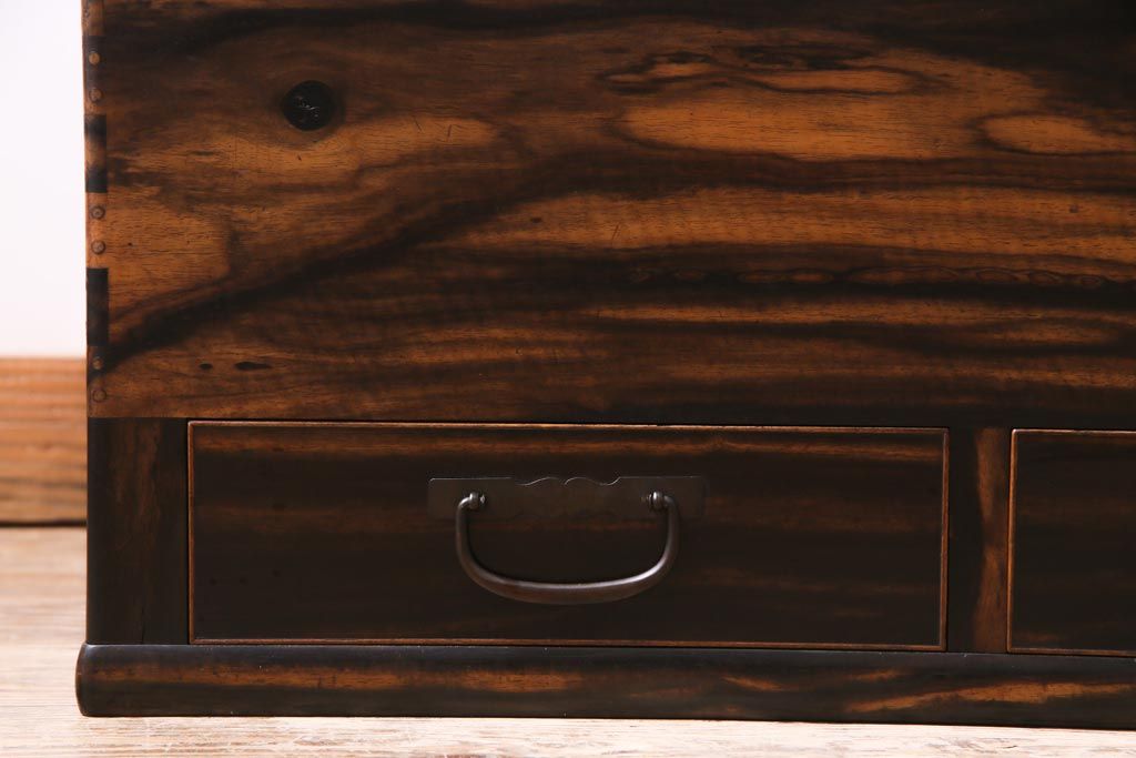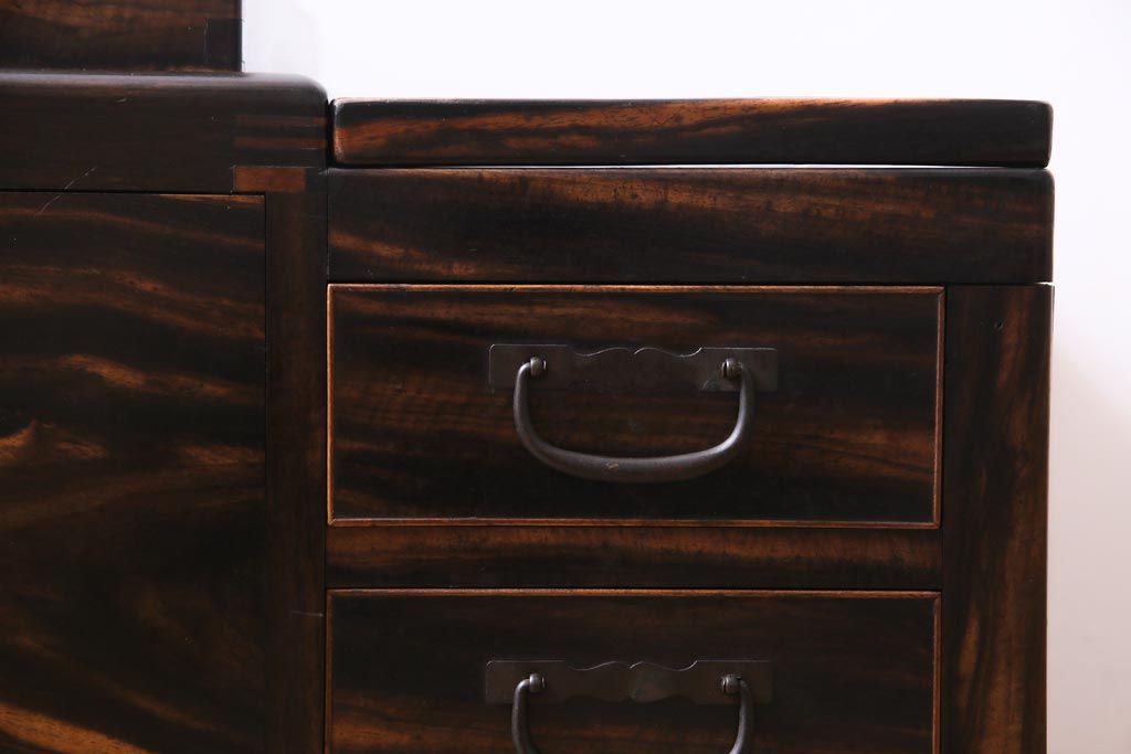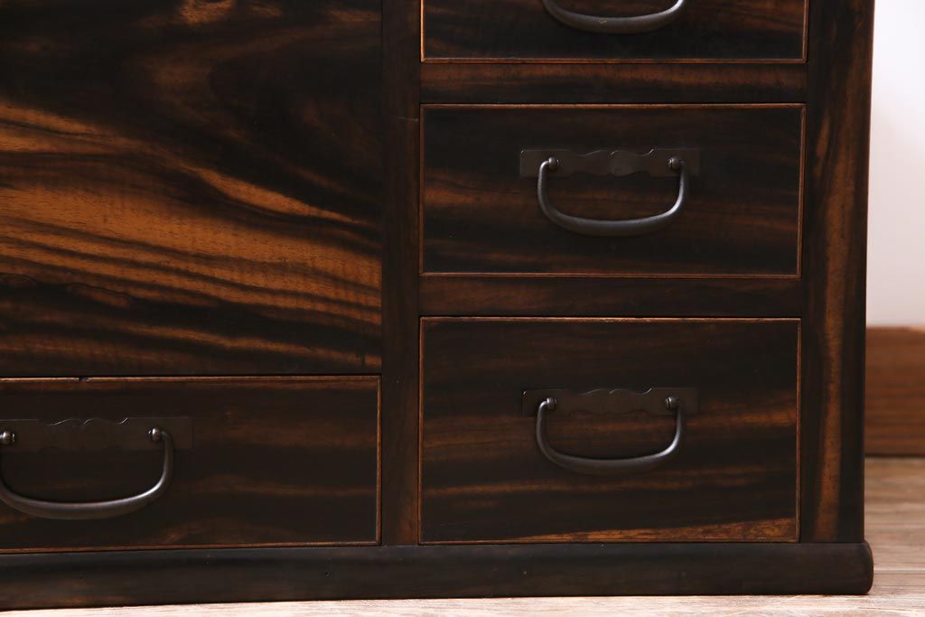 アンティーク雑貨 和製アンティーク 黒柿の無垢材を贅沢に使用した高級感漂う長火鉢(木製火鉢)