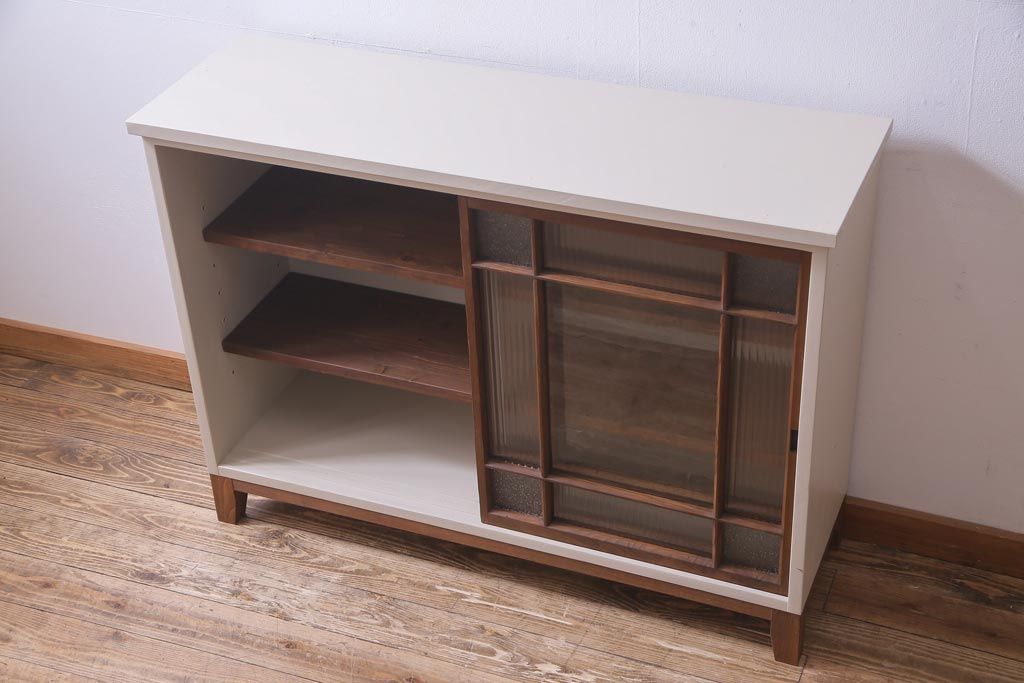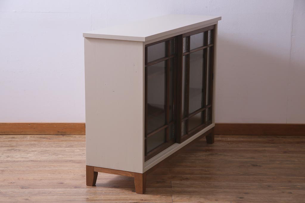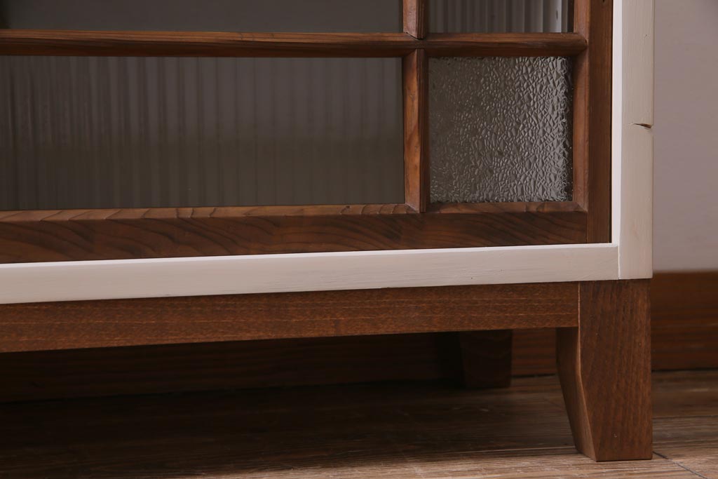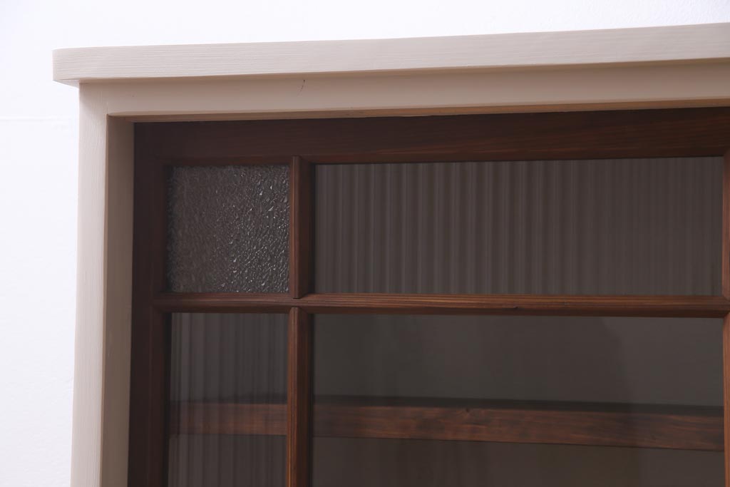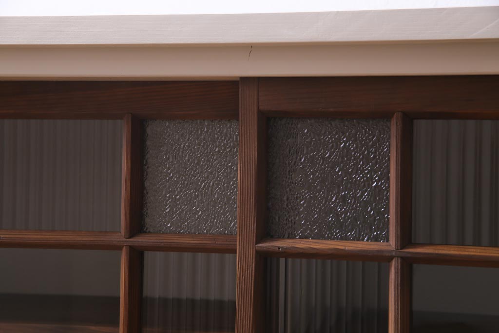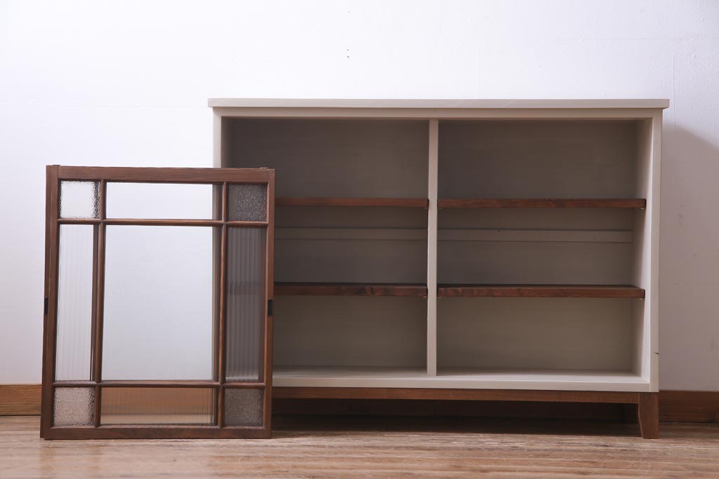 ペイント家具 古建具リメイク モールガラス・ダイヤガラス 優しげであたたかみ感じる収納棚(ガラス戸棚、サイドボード)