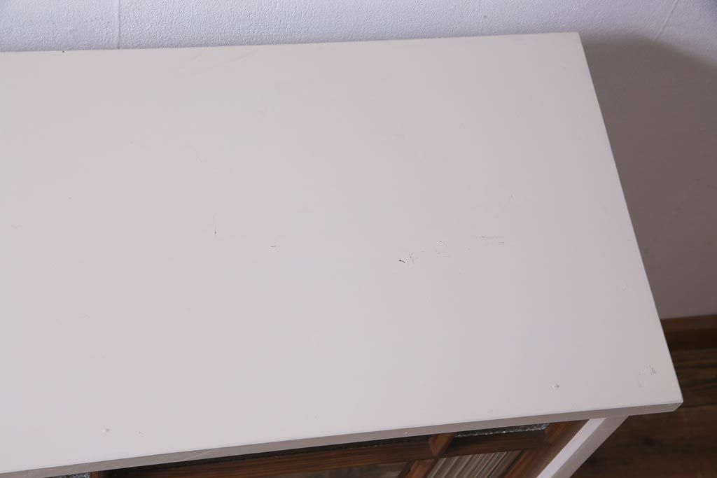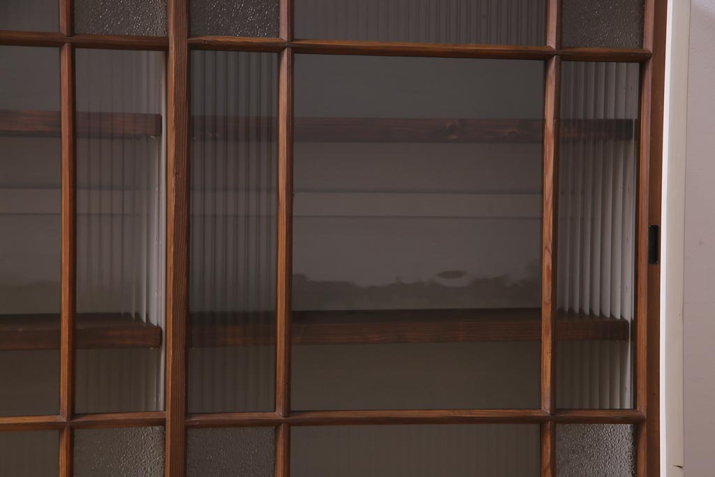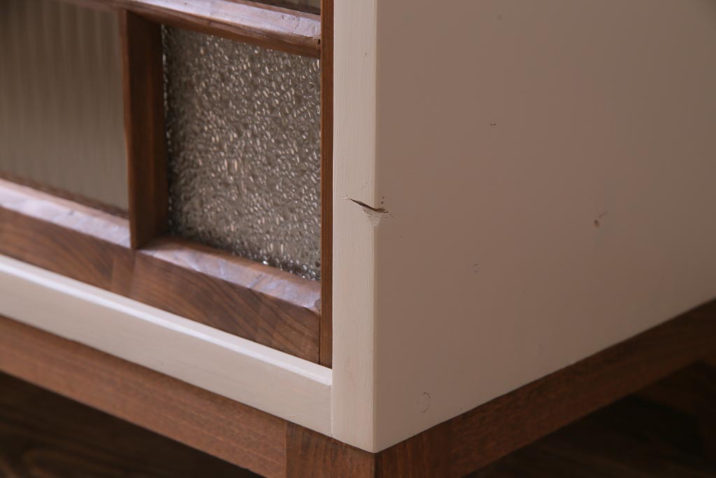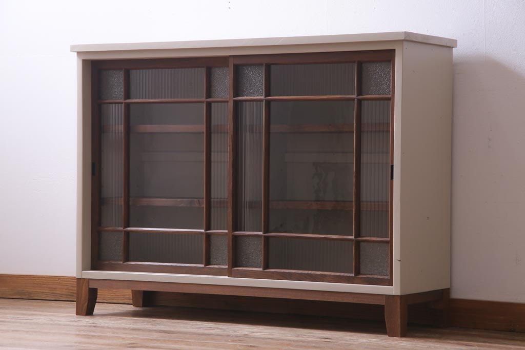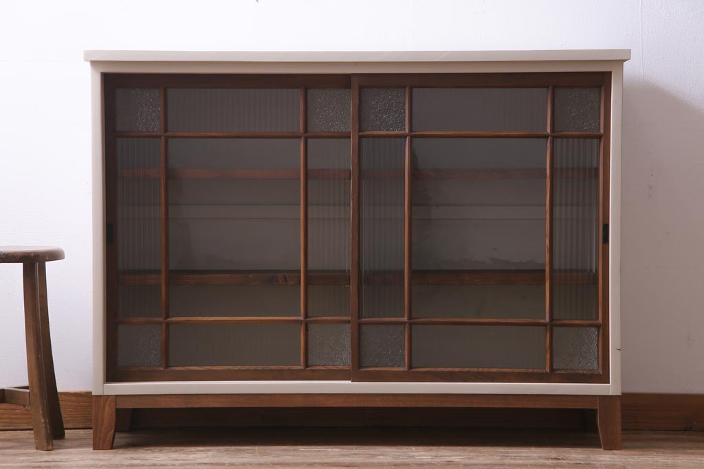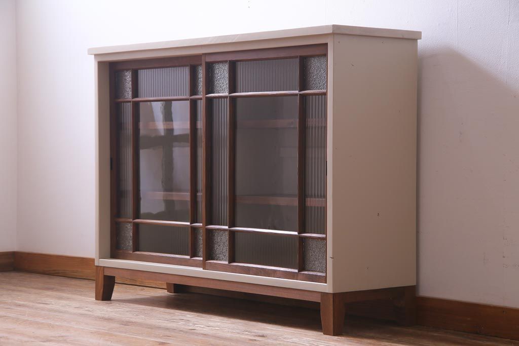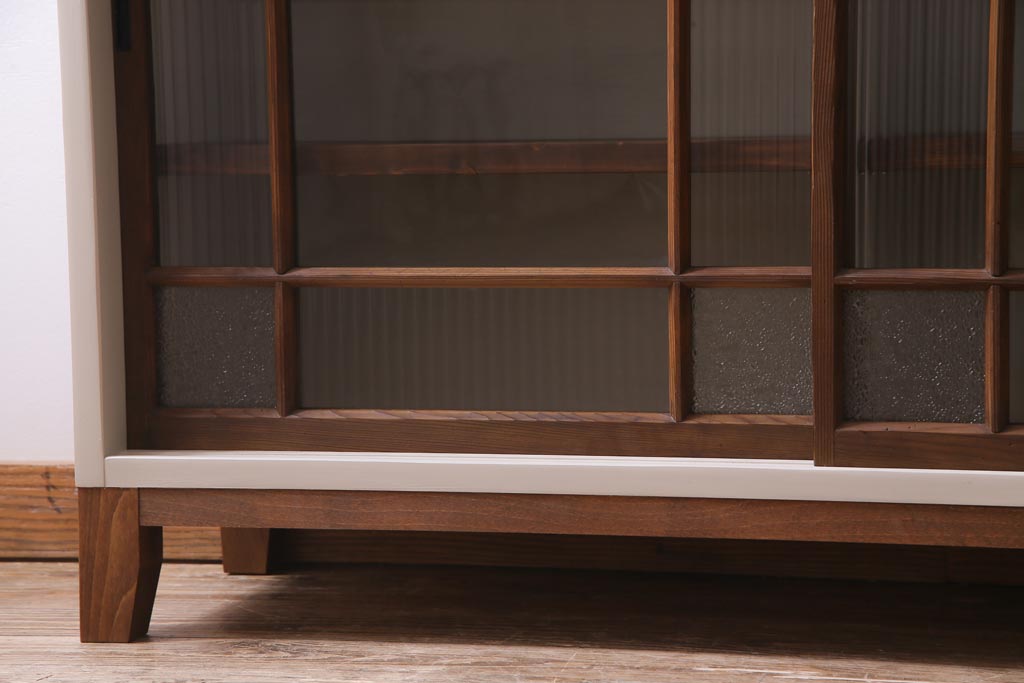 ペイント家具 古建具リメイク モールガラス・ダイヤガラス 優しげであたたかみ感じる収納棚(ガラス戸棚、サイドボード)