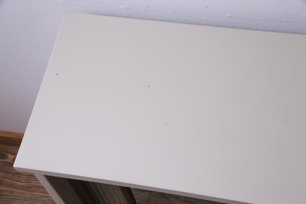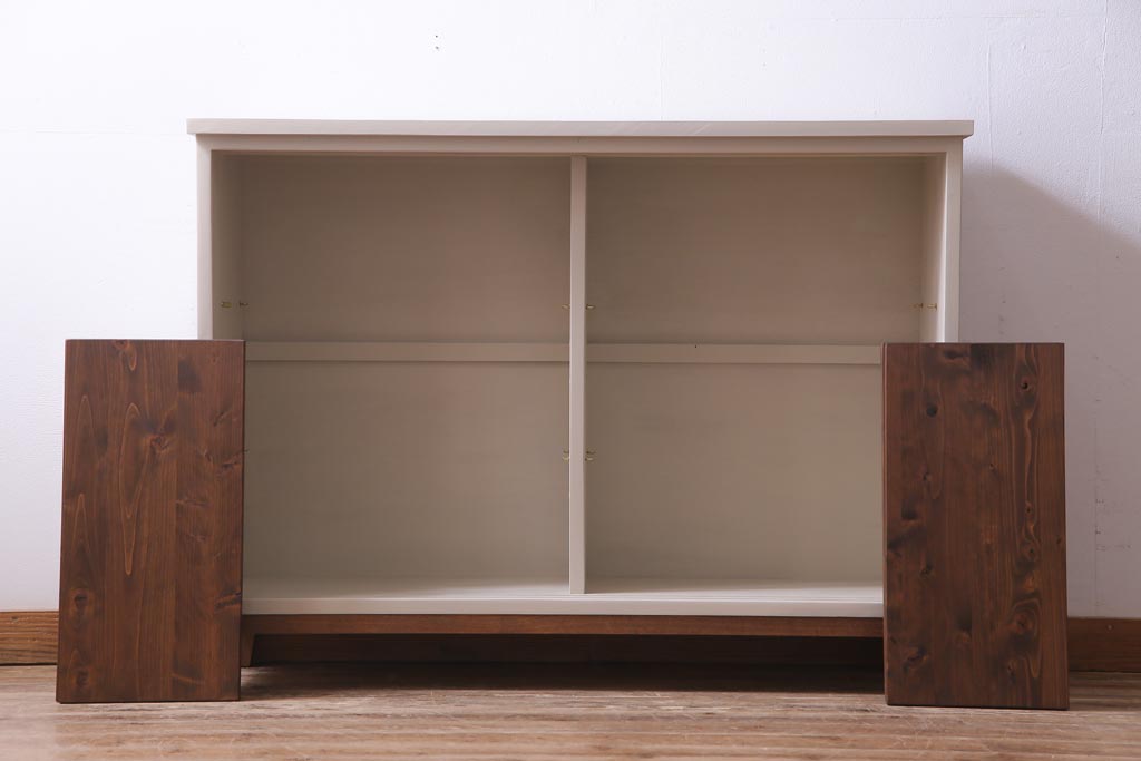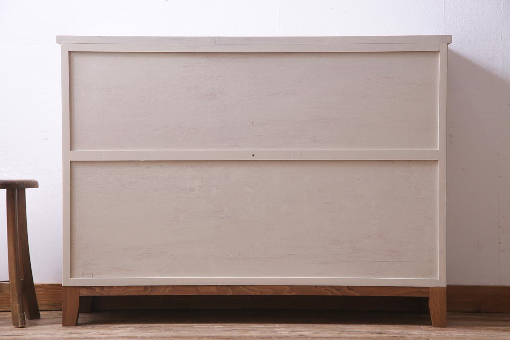 ペイント家具 古建具リメイク モールガラス・ダイヤガラス 優しげであたたかみ感じる収納棚(ガラス戸棚、サイドボード)です。