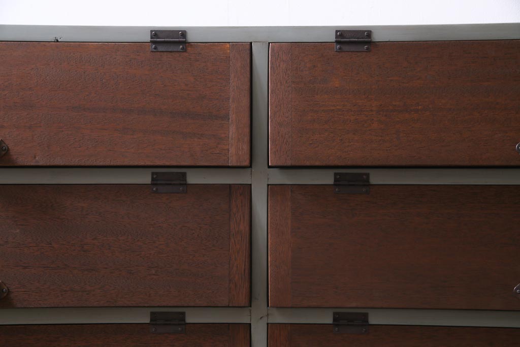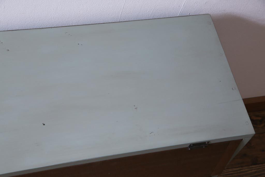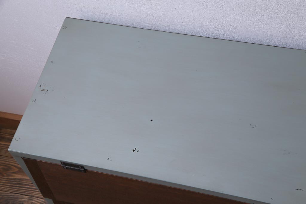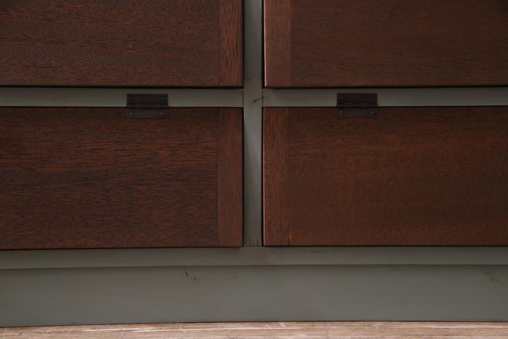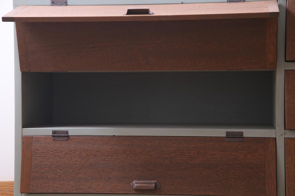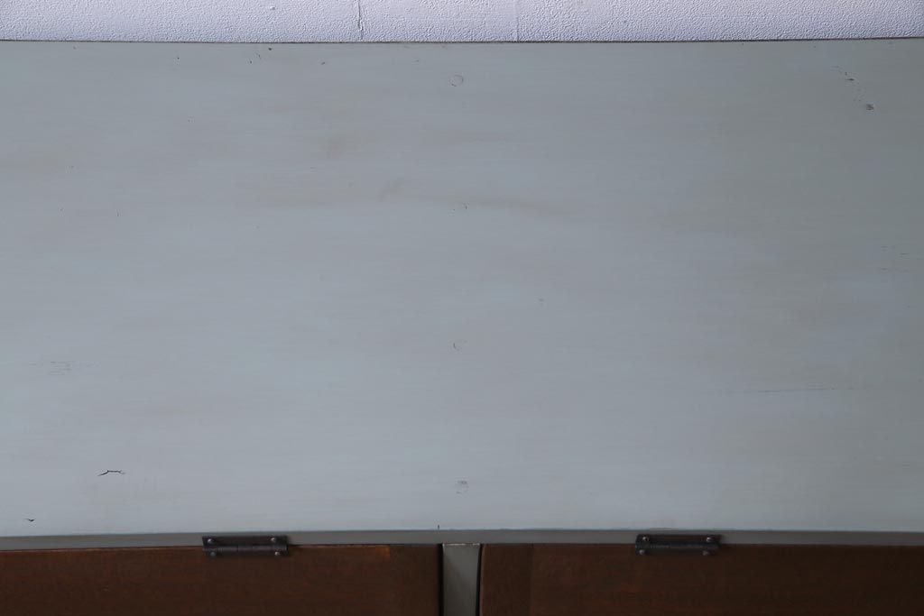 リメイク家具 ペイント レトロスタイルのアクセントにおすすめなパタパタ扉の収納棚(戸棚、リビングボード)です。