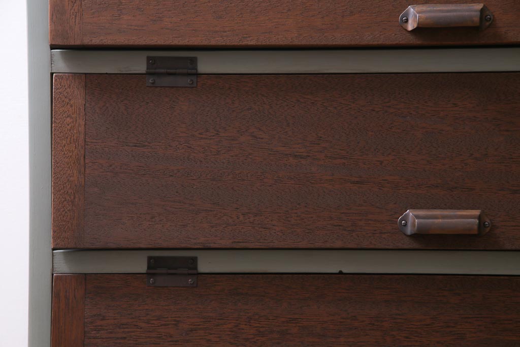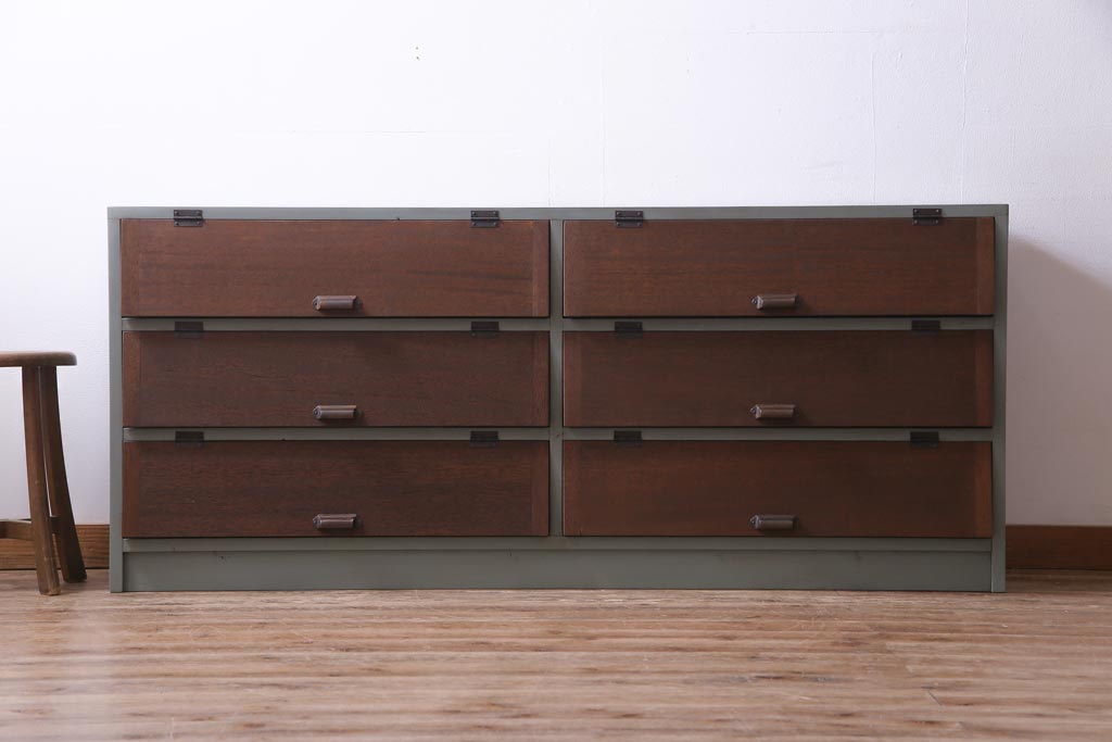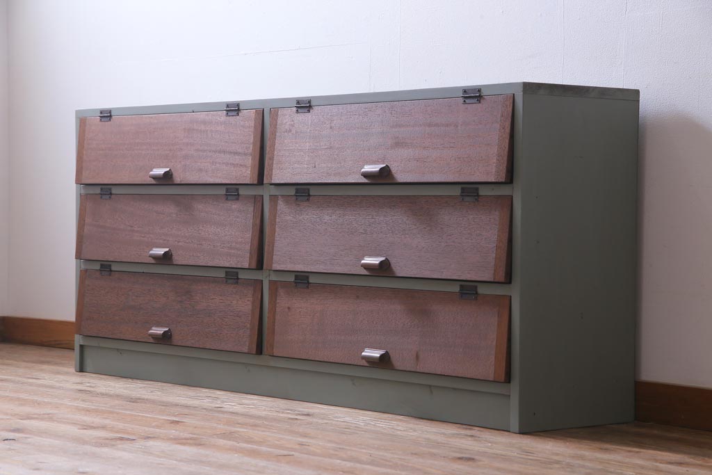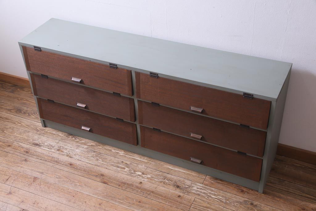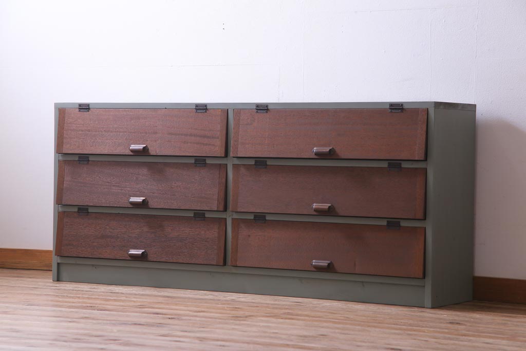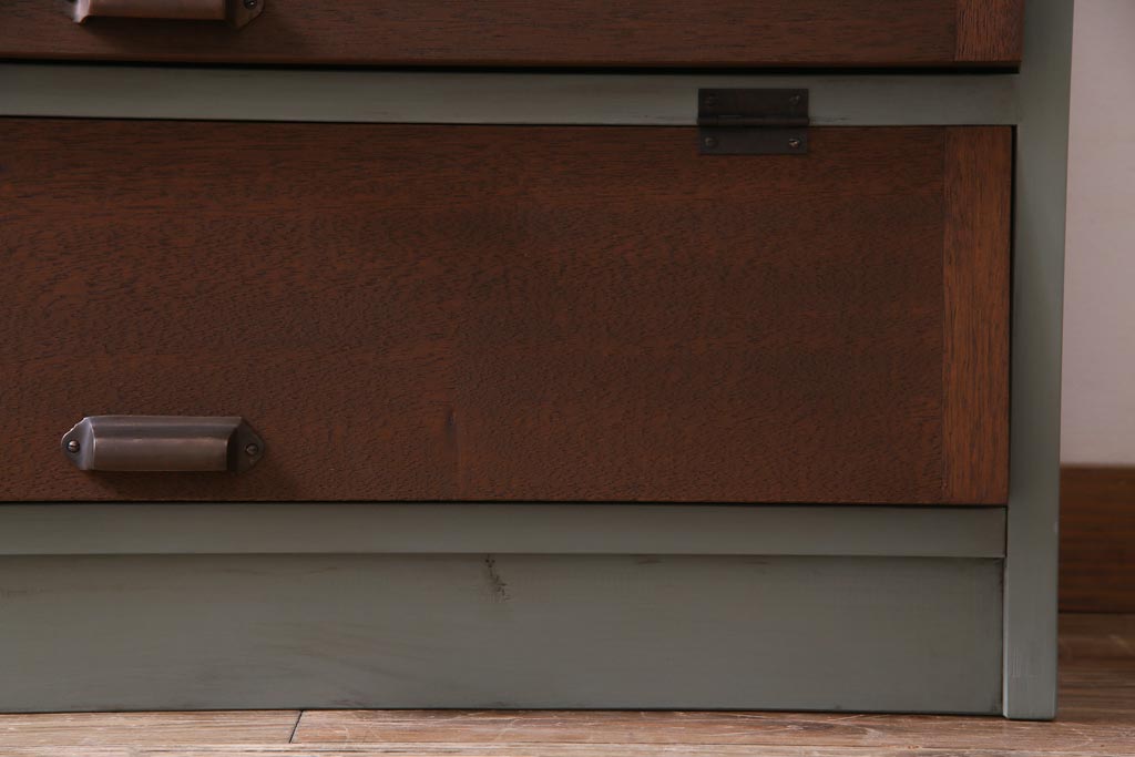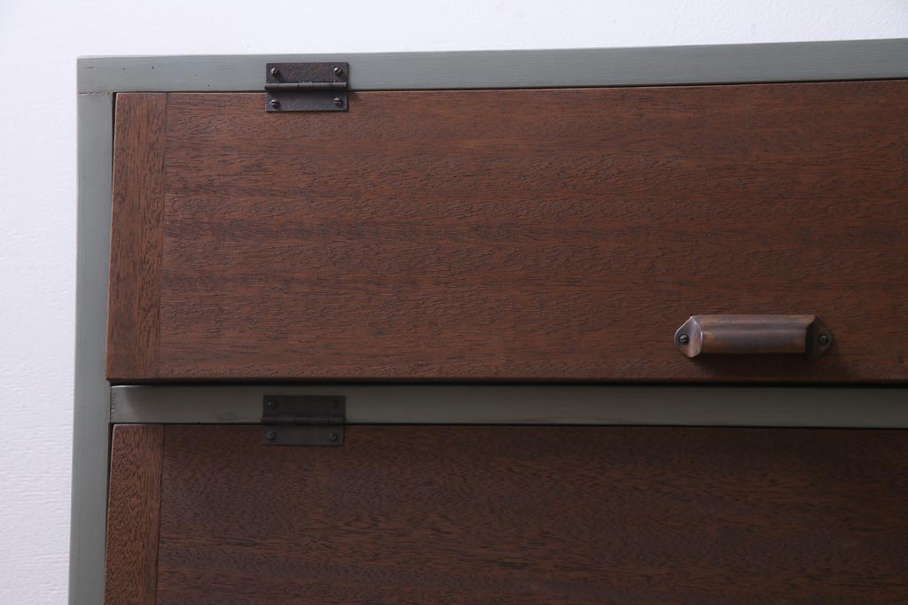 リメイク家具 ペイント レトロスタイルのアクセントにおすすめなパタパタ扉の収納棚(戸棚、リビングボード)です。